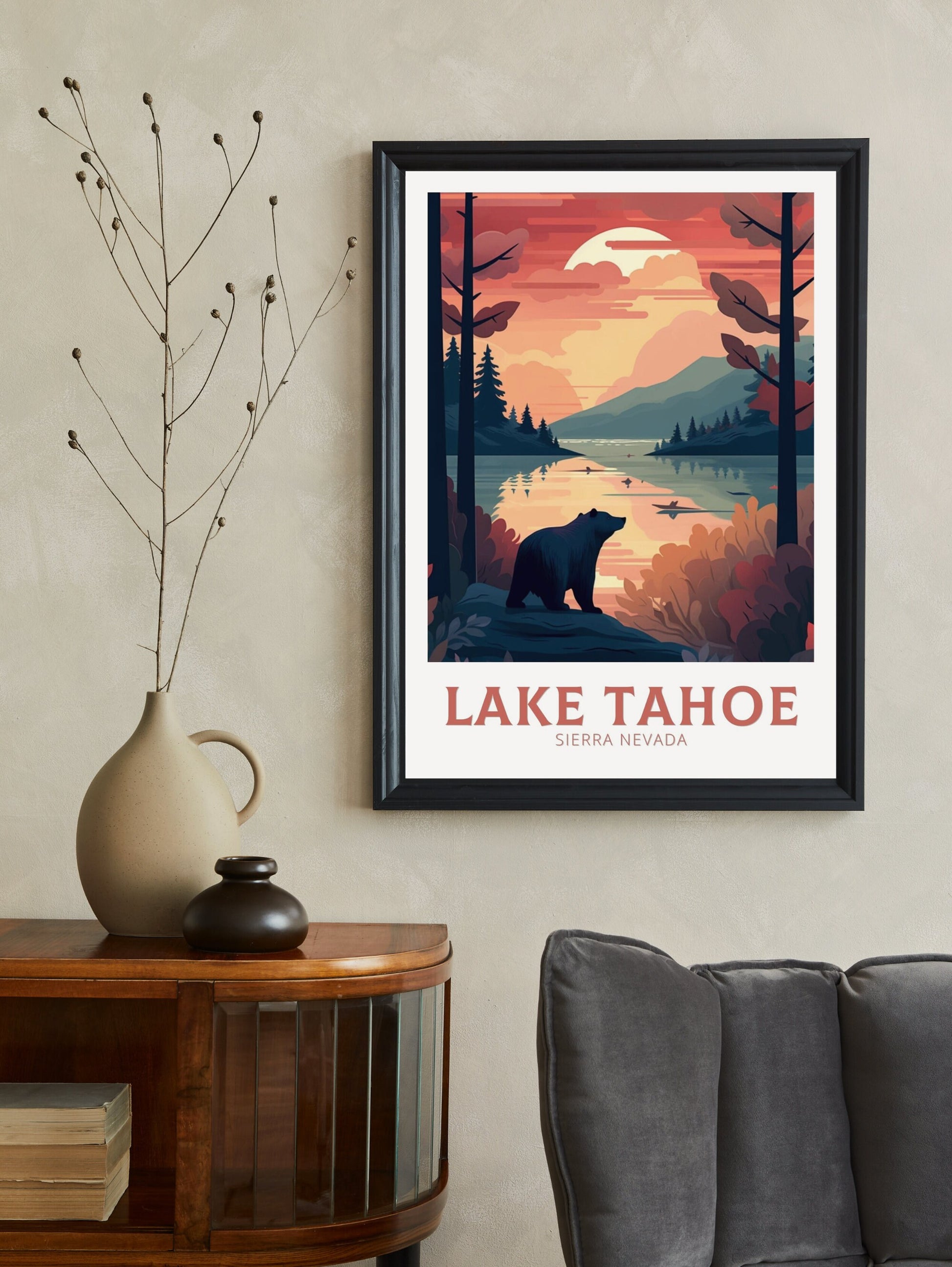 Issu de notre collection d'affiches de voyage en Amérique du Nord , ce modèle s'harmonise parfaitement avec d'autres œuvres d'art représentant des parcs nationaux et des lacs. Que ce soit pour décorer une galerie murale de souvenirs de voyage ou pour embellir votre espace avec des paysages alpins, cette affiche de voyage du lac Tahoe – Sierra Nevada est un hommage intemporel à l'une des plus belles destinations des États-Unis.