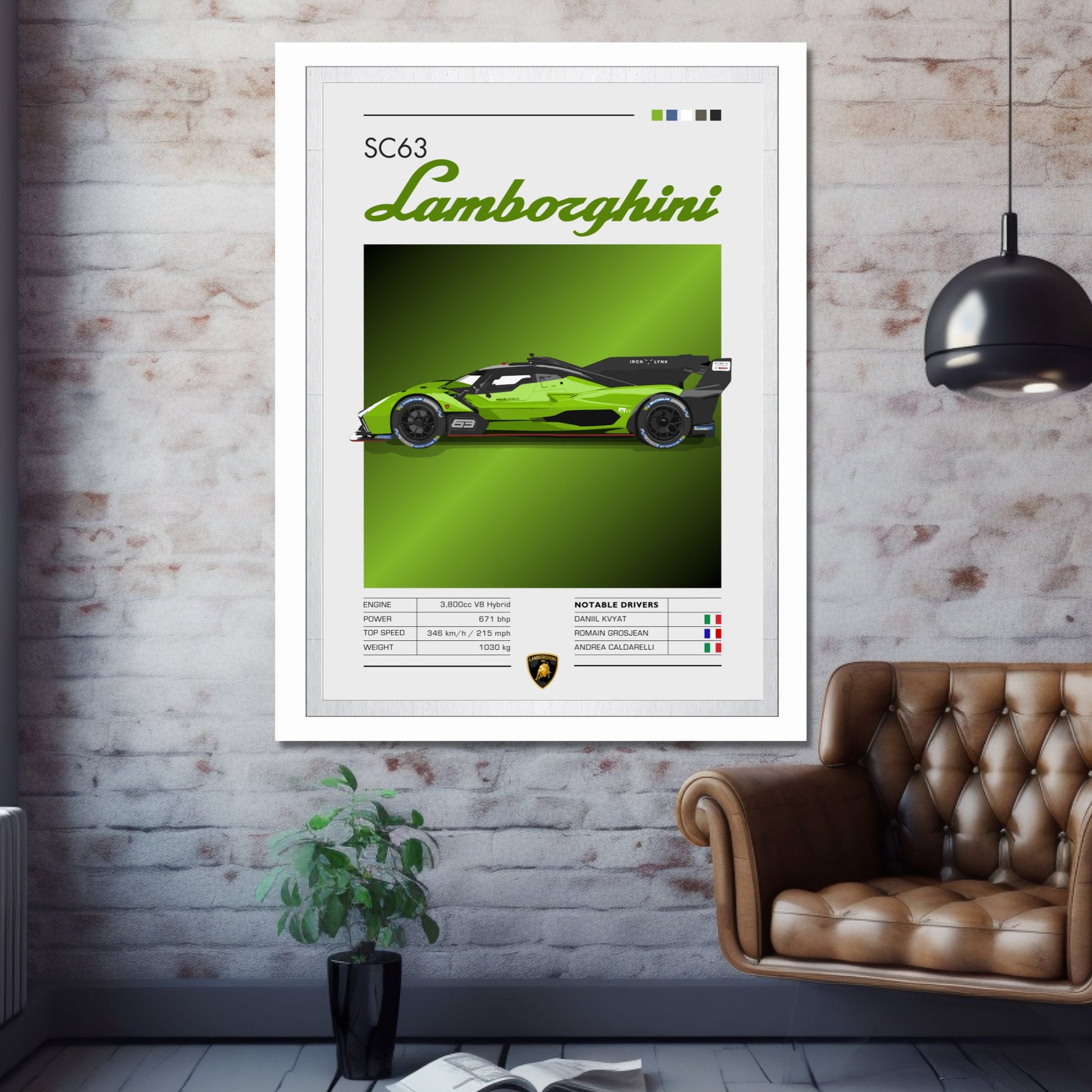 Affiche Lamborghini SC63 – Décoration murale Hypercar du Mans pour les fans de course