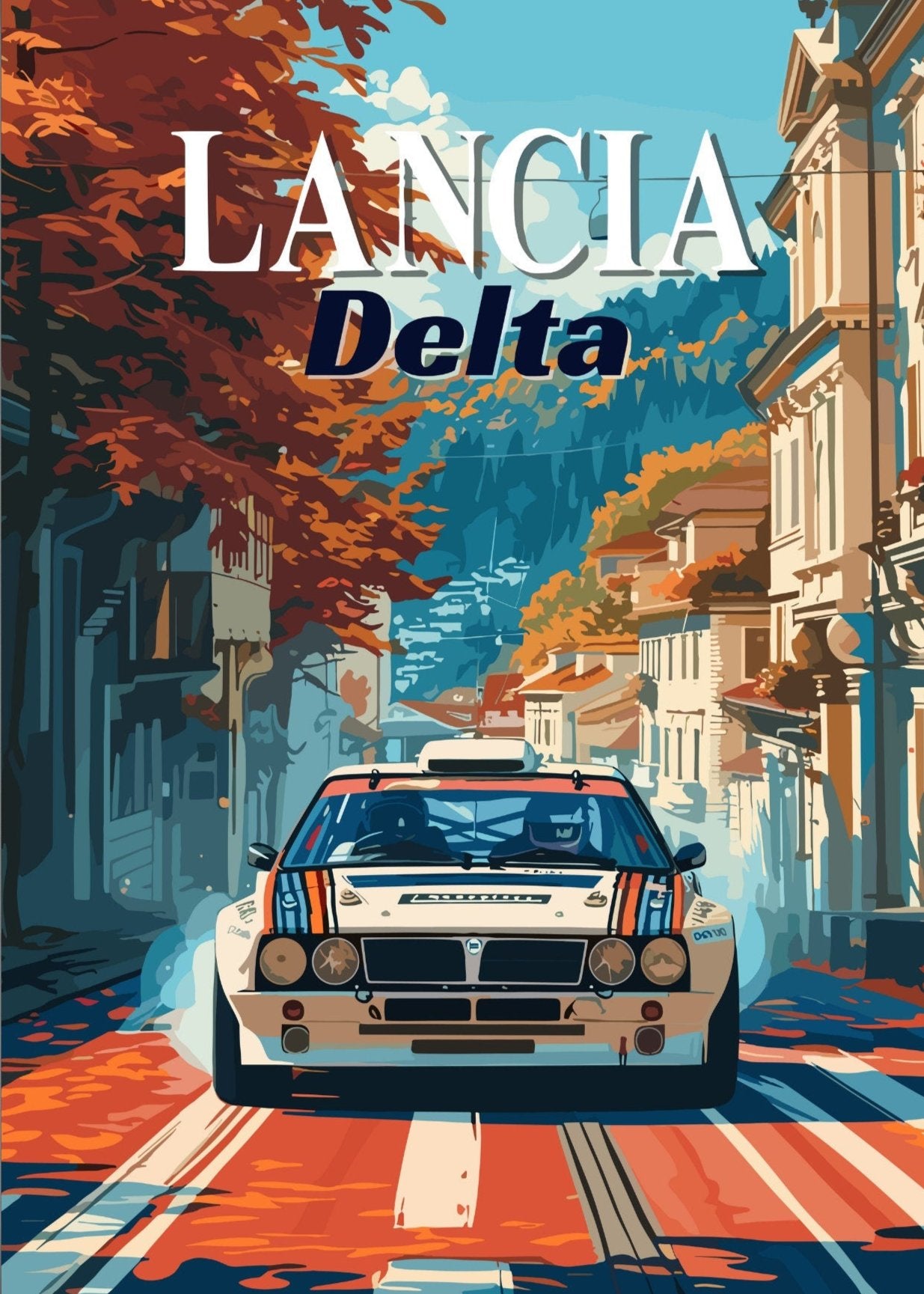 Ce tirage haute qualité de la Lancia Delta Integrale capture chaque détail de cette voiture de rallye classique : de sa carrosserie agressive à sa livrée distinctive, en passant par l'excellence technique qui en a fait une légende du WRC. Idéal pour les amateurs de voitures de rallye classiques , d'affiches de sport automobile des années 1990 , de reproductions de voitures WRC et de décorations murales automobiles , il est parfait pour les collectionneurs et les passionnés qui souhaitent célébrer l'une des voitures de rallye les plus titrées de l'histoire.