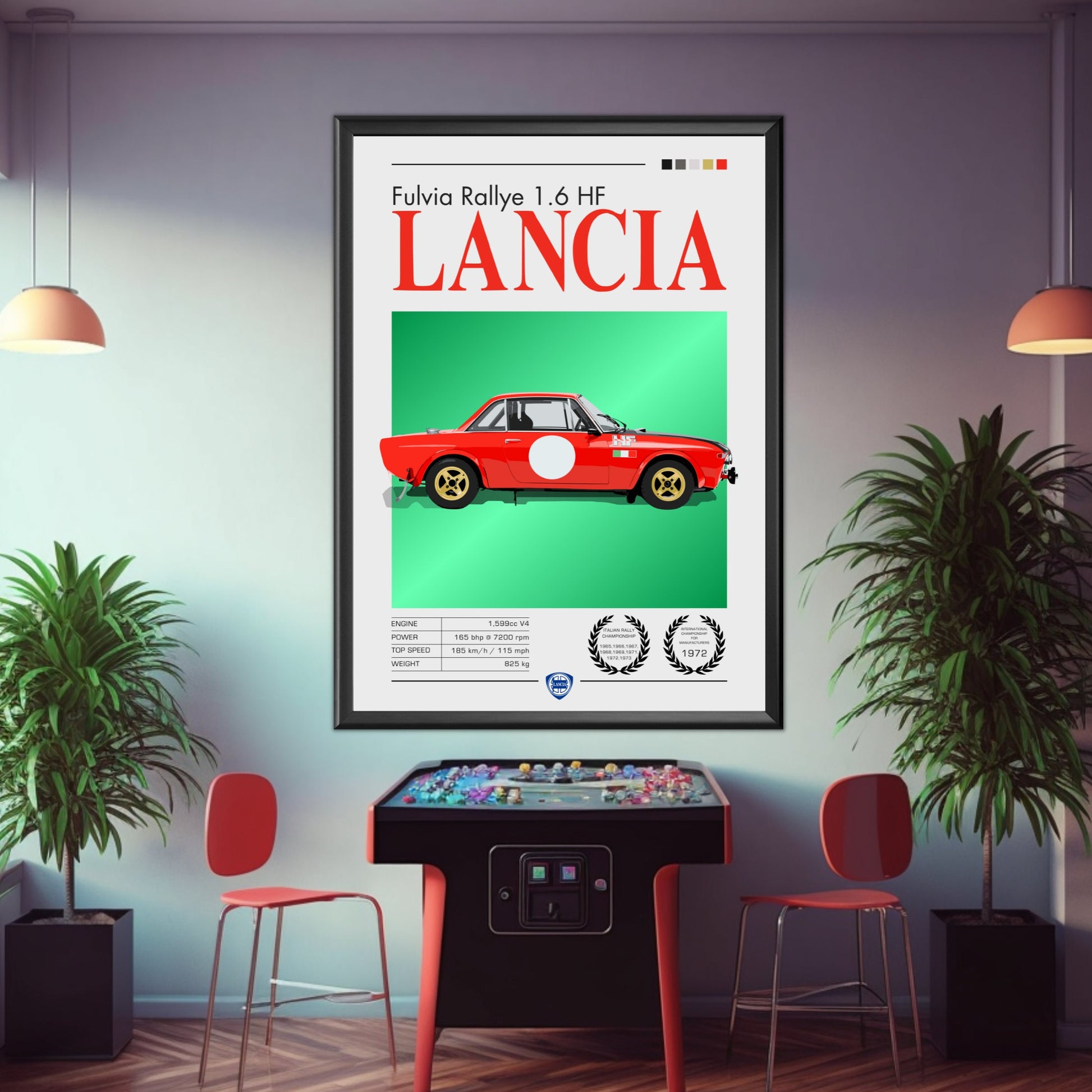 Affiche Lancia Fulvia – Impression de voiture de rallye classique de l'âge d'or