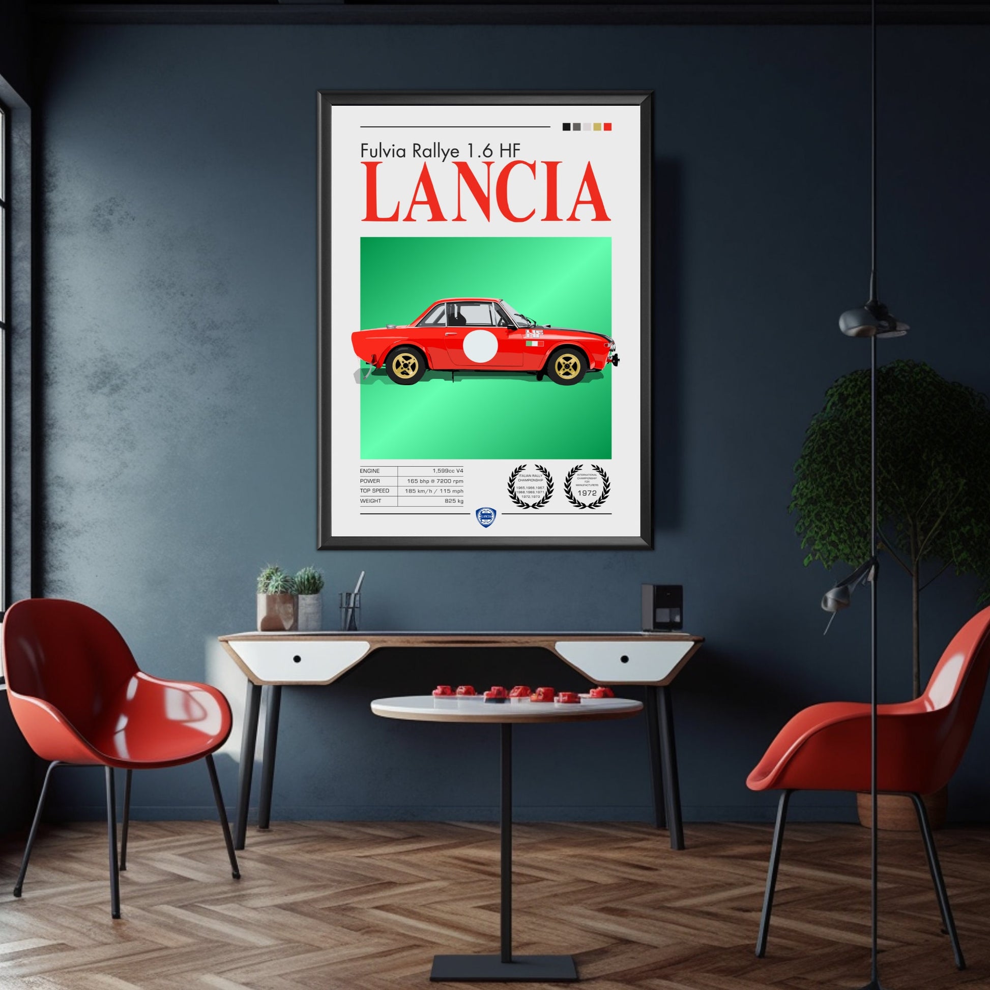 Célébrez l'âge d'or du rallye avec cette affiche Lancia Fulvia , mettant en vedette l'une des voitures de rallye classiques les plus emblématiques de l'histoire du sport automobile. Idéale pour les passionnés d'automobile, les fans de rallye et les collectionneurs, cette décoration murale met en scène la légendaire Lancia Fulvia , réputée pour son agilité, sa légèreté et ses performances de champion. Apportez la nostalgie et l'excitation des rallyes vintage chez vous, dans votre garage, votre bureau ou votre caverne d'Ali Baba grâce à cette saisissante affiche automobile.