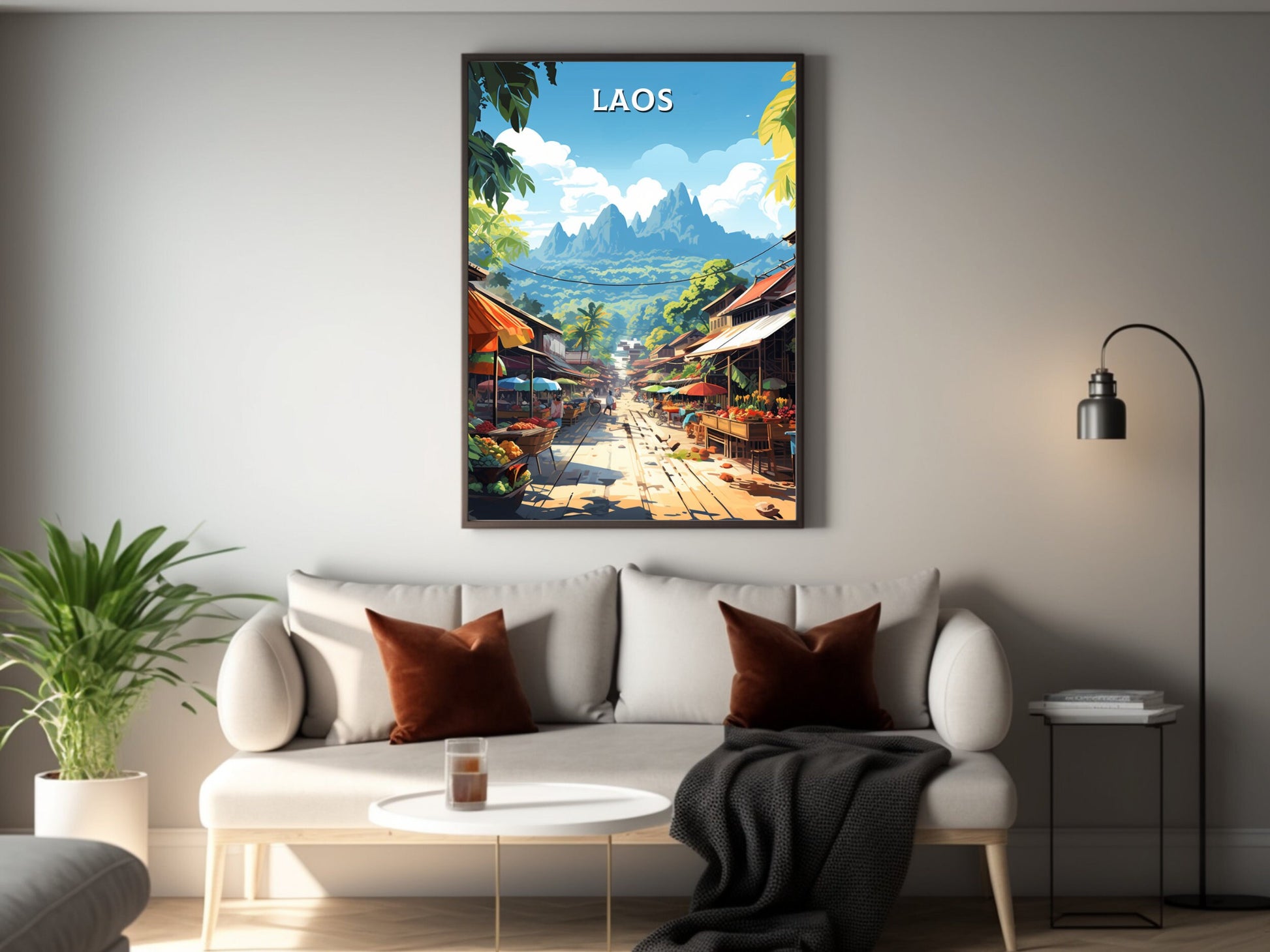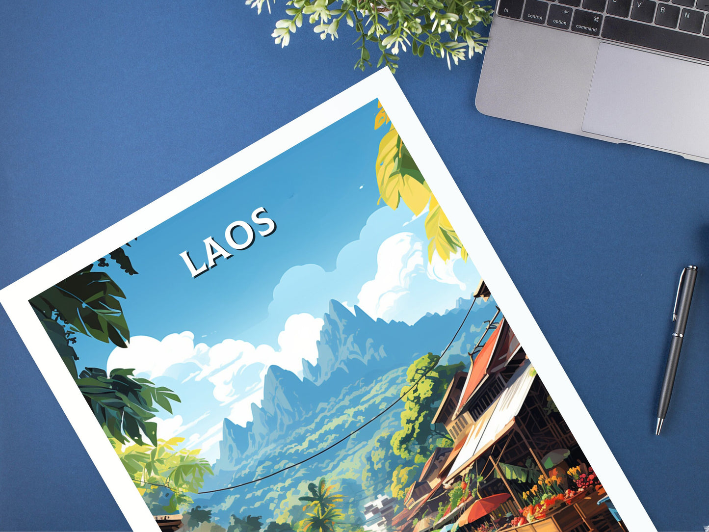 Notre affiche de voyage du Laos – Impression d'art rétro – transporte votre intérieur dans la beauté paisible du Laos grâce à son design captivant. Idéale pour les passionnés de voyages et les amateurs d'art, elle capture avec force détails la jungle luxuriante, les temples dorés et le Mékong du pays. Que vous ayez exploré son calme ou rêvé de sa sérénité, cette affiche rétro du Laos sera un atout déco exceptionnel.