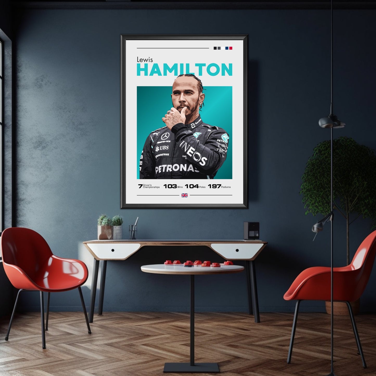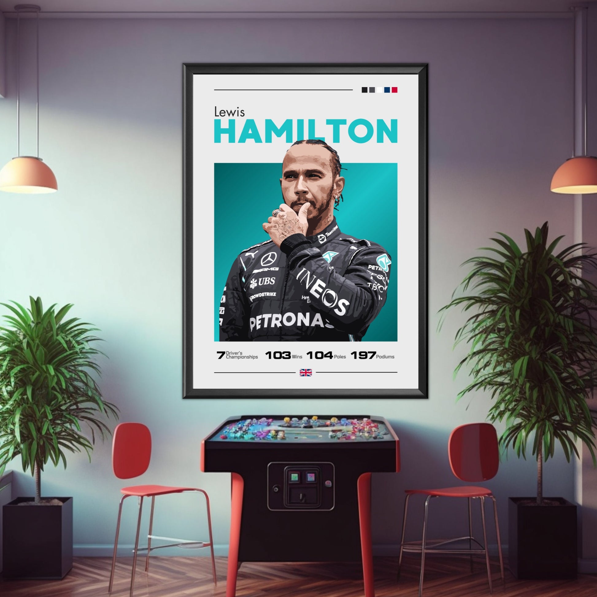 Célébrez la carrière légendaire de Lewis Hamilton en Formule 1 avec l' affiche Lewis Hamilton Mercedes F1 – Décoration murale pour chambre . Idéale pour les fans de F1, les passionnés de Mercedes et les collectionneurs de sport automobile, cette affiche de haute qualité capture Hamilton en action, mettant en valeur sa vitesse record, sa précision et son talent sur la piste. Apportez l'excitation, le frisson et le prestige de la Formule 1 moderne dans votre chambre, votre bureau ou tout autre espace dédié à la course automobile grâce à cette superbe décoration murale.