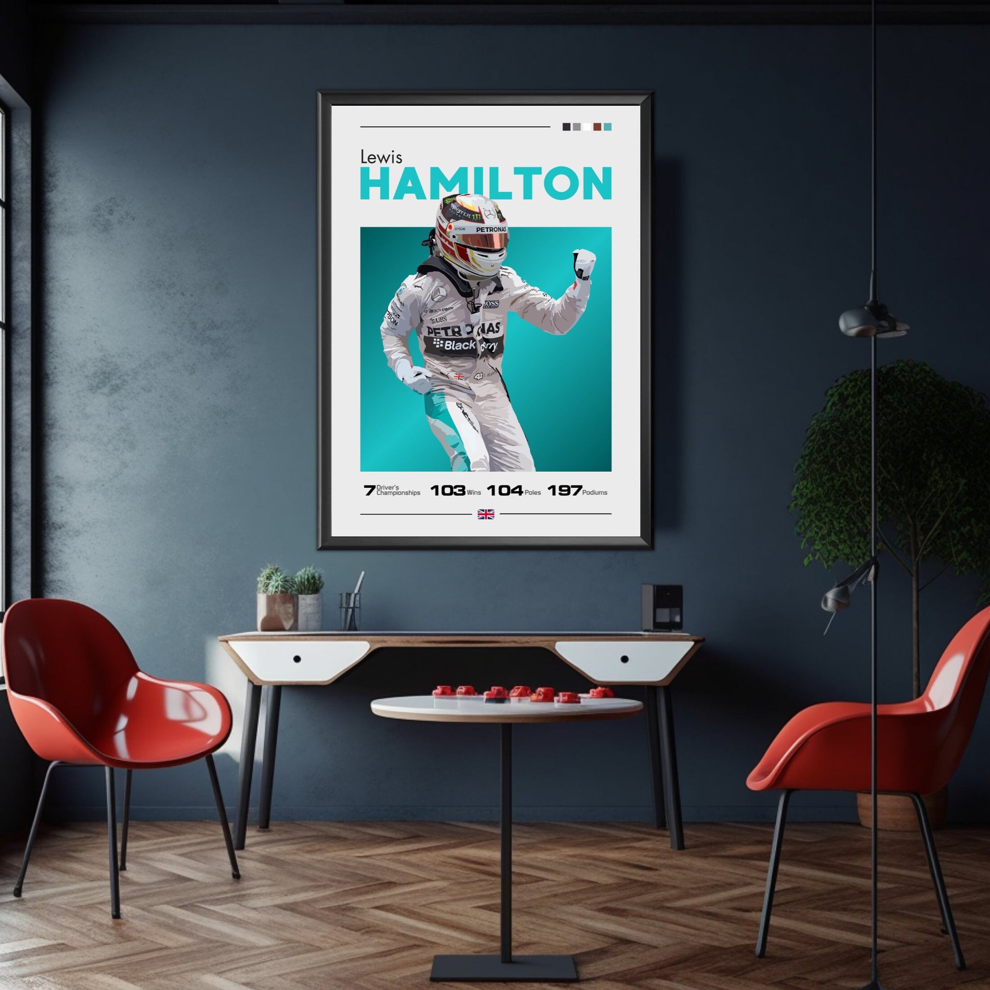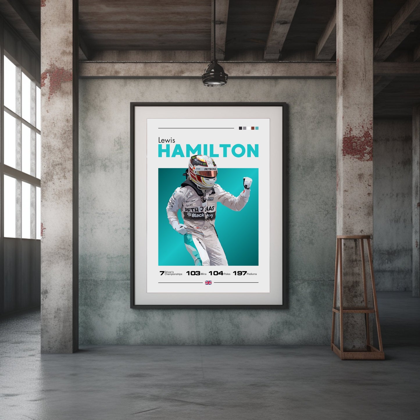 Célébrez la carrière inégalée de la superstar de la Formule 1 Lewis Hamilton avec l' affiche Lewis Hamilton Mercedes F1 – Septuple Champion . Idéale pour les fans de F1, les passionnés de Mercedes et les collectionneurs de sport automobile, cette affiche de haute qualité immortalise Hamilton en action, mettant en valeur sa vitesse record, son habileté et sa domination qui lui ont valu sept titres de champion du monde. Insufflez le frisson, la précision et le prestige de la Formule 1 moderne chez vous, au bureau ou dans un espace dédié à la course automobile grâce à cette superbe décoration murale.