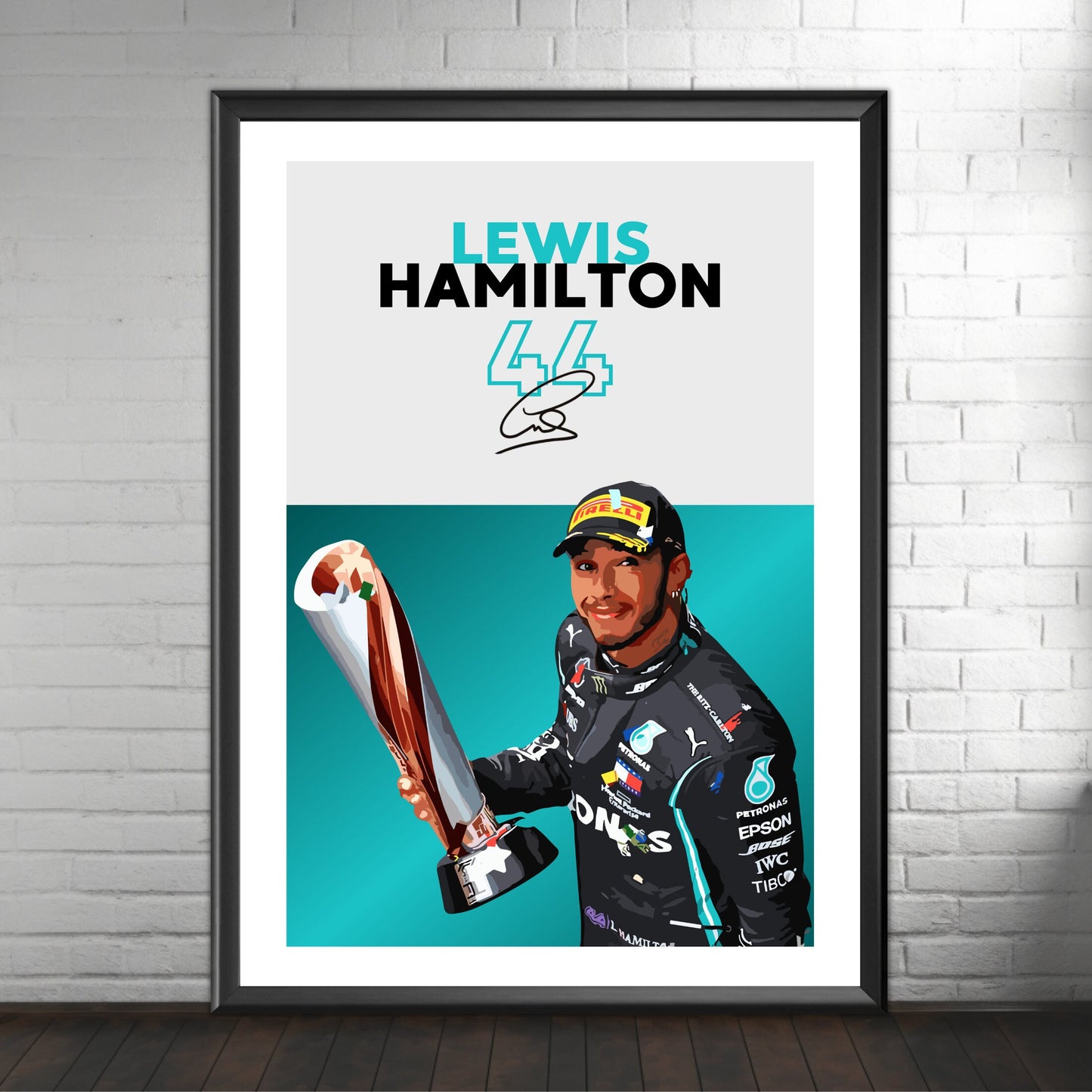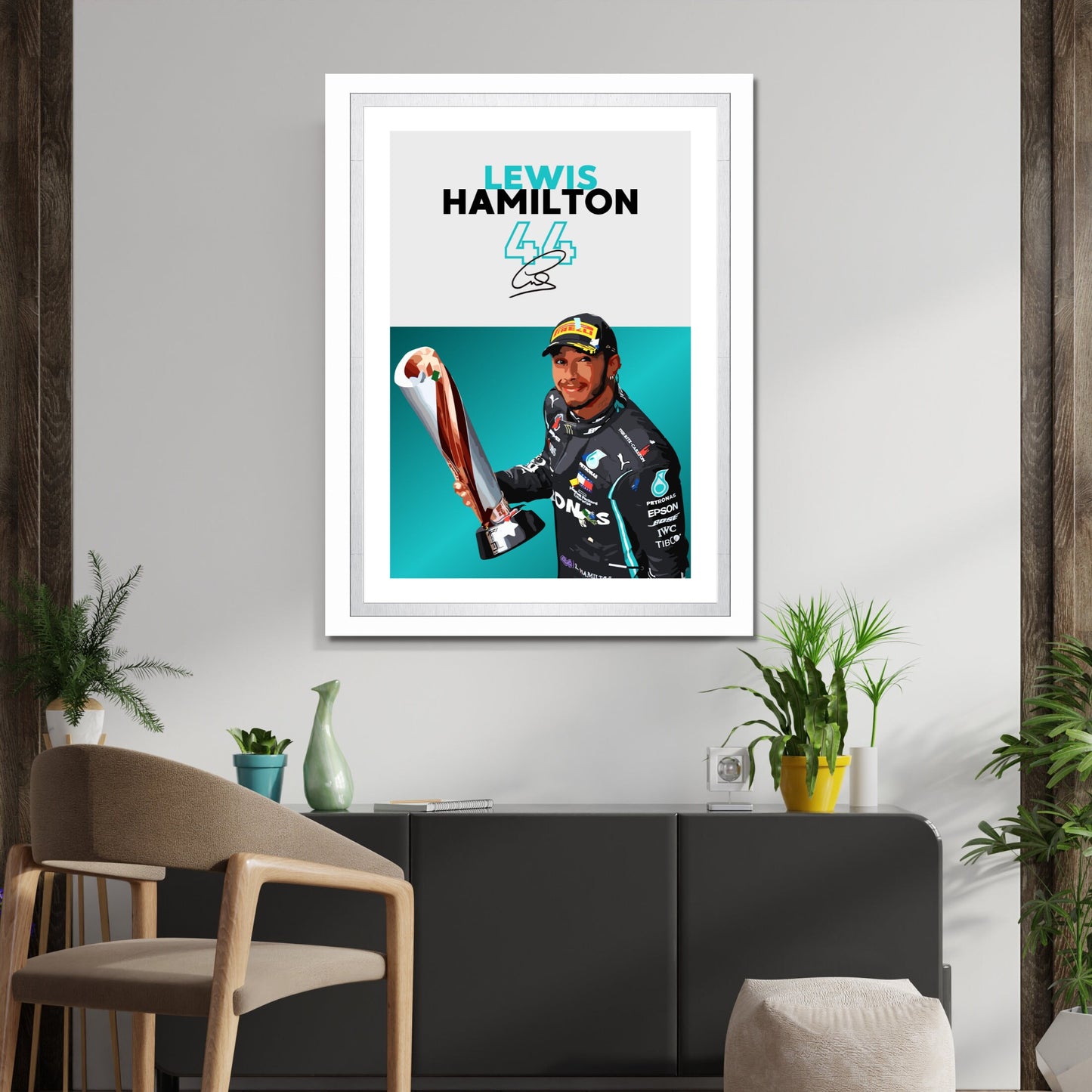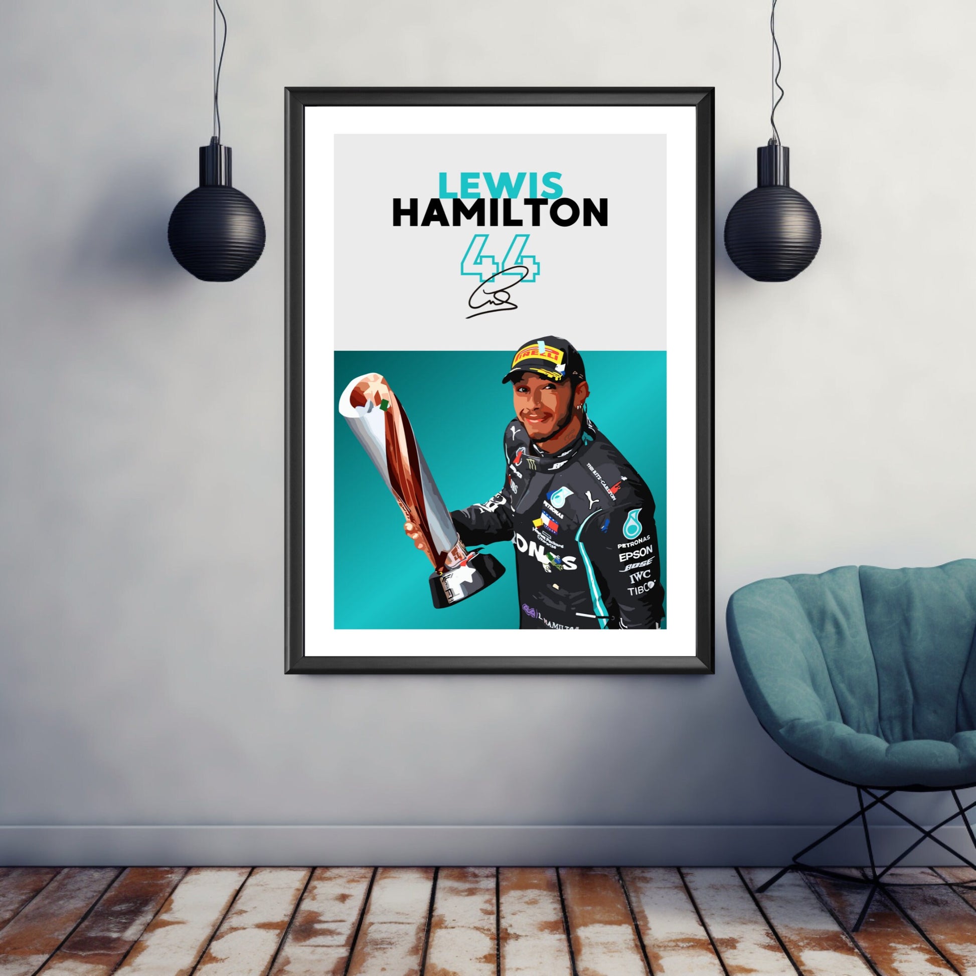 Célébrez la carrière légendaire de Lewis Hamilton en Formule 1 avec l' affiche Lewis Hamilton Mercedes – Pilote de F1 superstar britannique . Idéale pour les fans de F1, les passionnés de Mercedes et les collectionneurs de sport automobile, cette affiche de haute qualité immortalise Hamilton en pleine action, mettant en valeur sa vitesse, sa précision et ses records sur la piste. Insufflez l'excitation, le talent et le prestige de la Formule 1 moderne chez vous, au bureau ou dans un espace dédié à la course automobile grâce à cette superbe décoration murale.