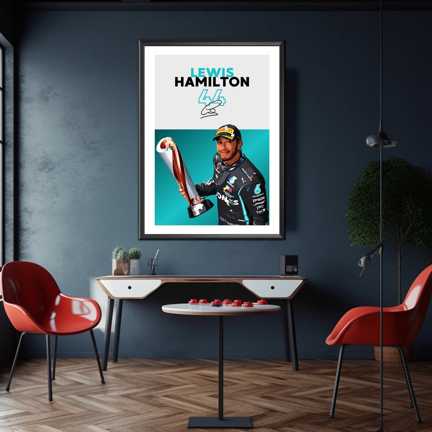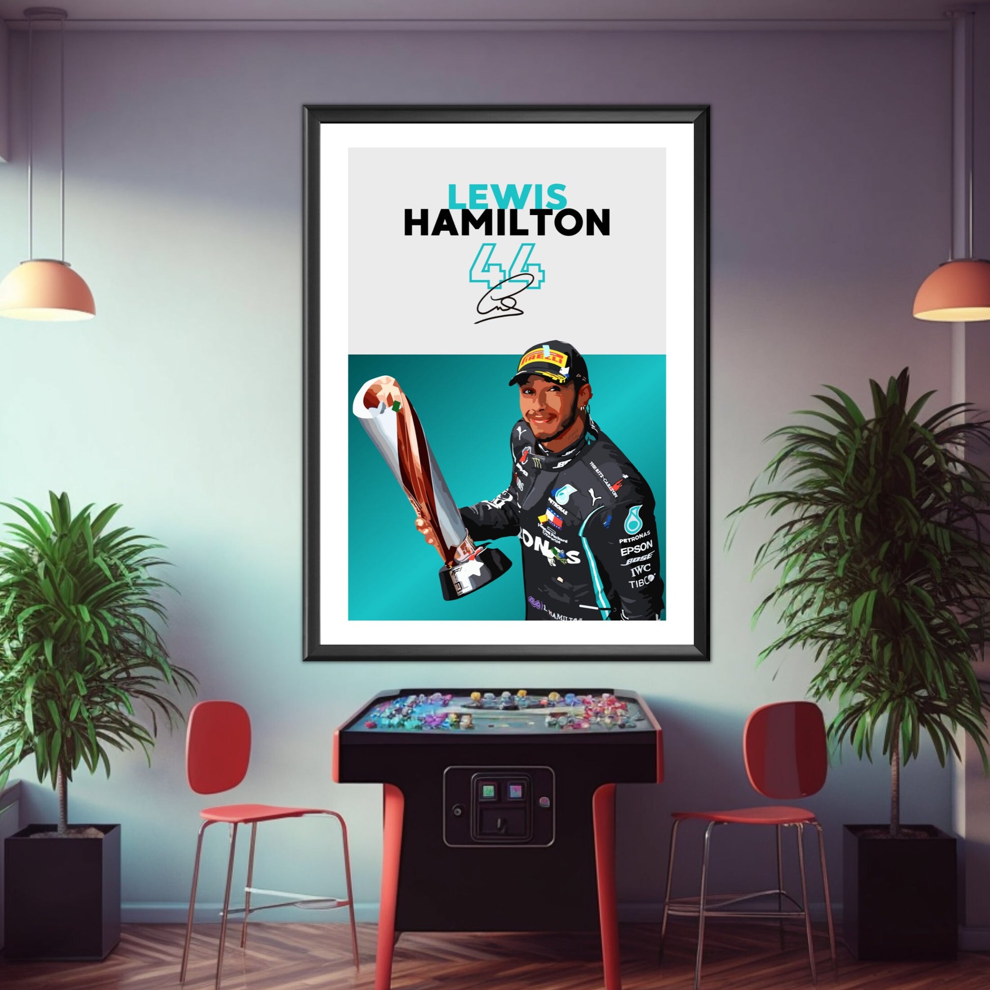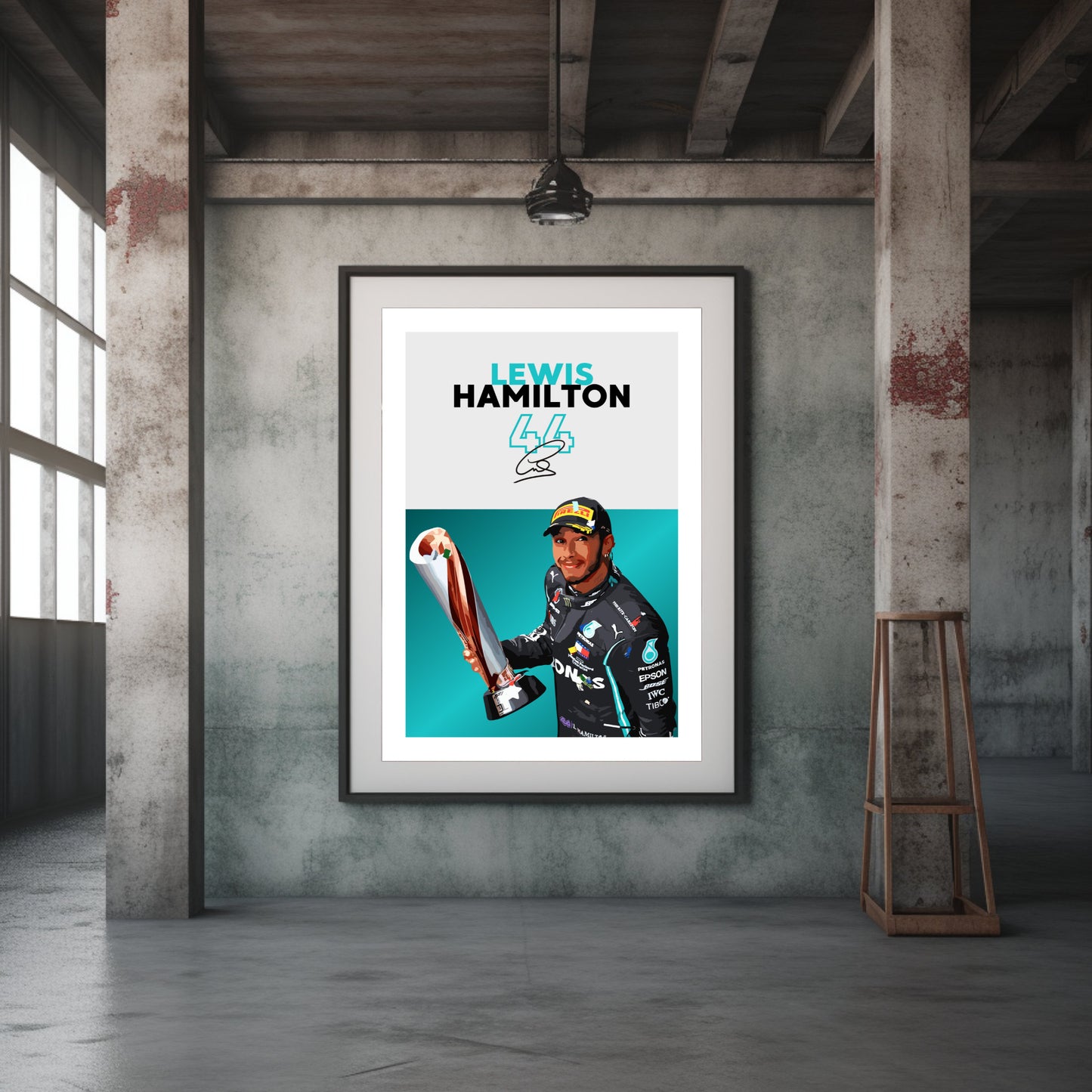 Célébrez la carrière légendaire de Lewis Hamilton en Formule 1 avec l' affiche Lewis Hamilton Mercedes – Pilote de F1 superstar britannique . Idéale pour les fans de F1, les passionnés de Mercedes et les collectionneurs de sport automobile, cette affiche de haute qualité immortalise Hamilton en pleine action, mettant en valeur sa vitesse, sa précision et ses records sur la piste. Insufflez l'excitation, le talent et le prestige de la Formule 1 moderne chez vous, au bureau ou dans un espace dédié à la course automobile grâce à cette superbe décoration murale.