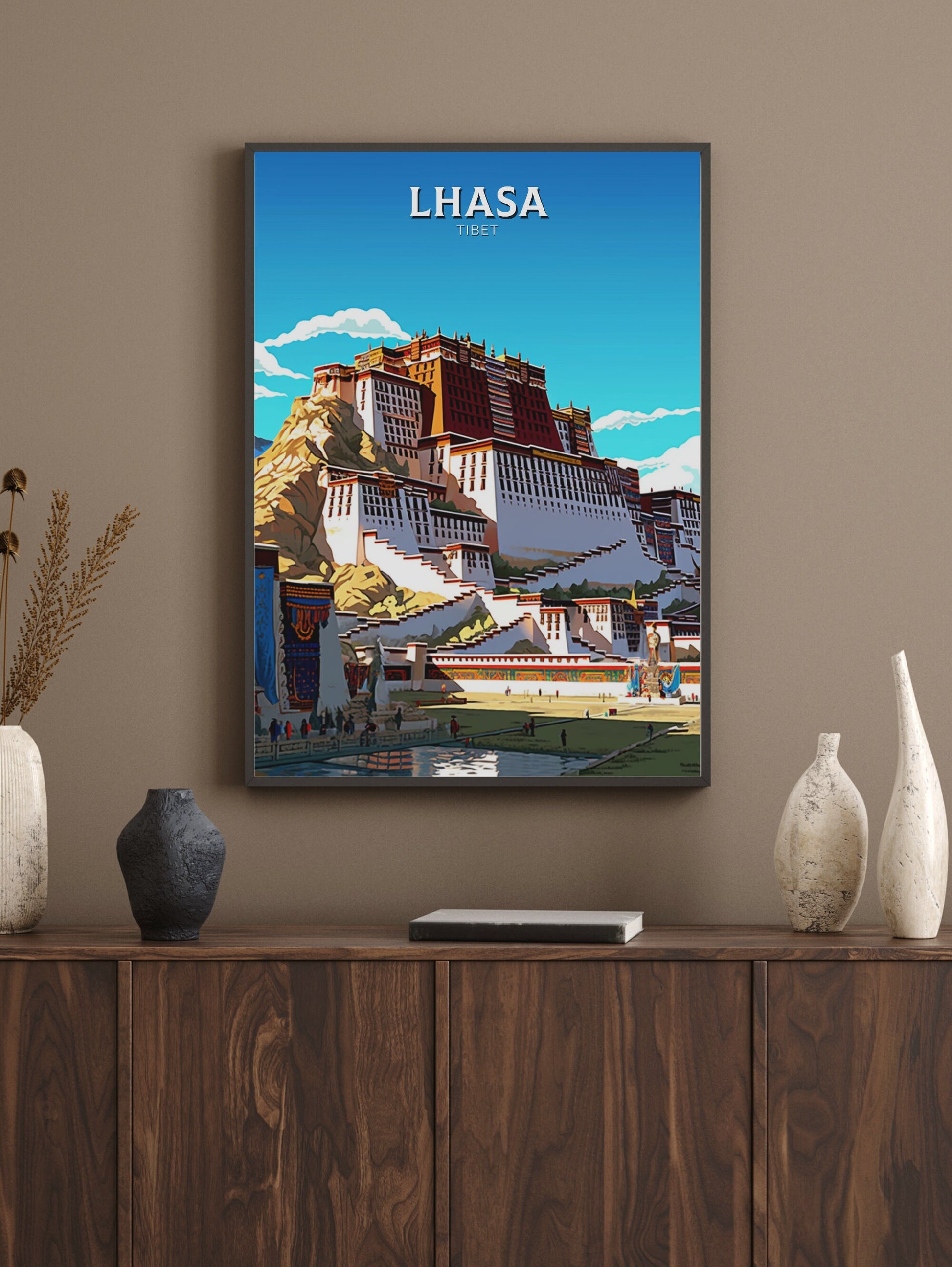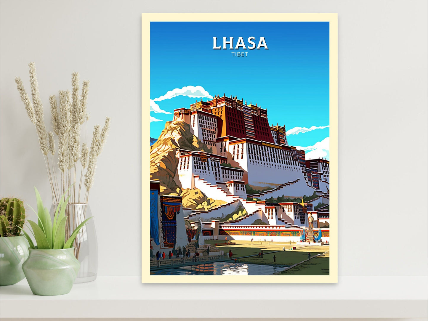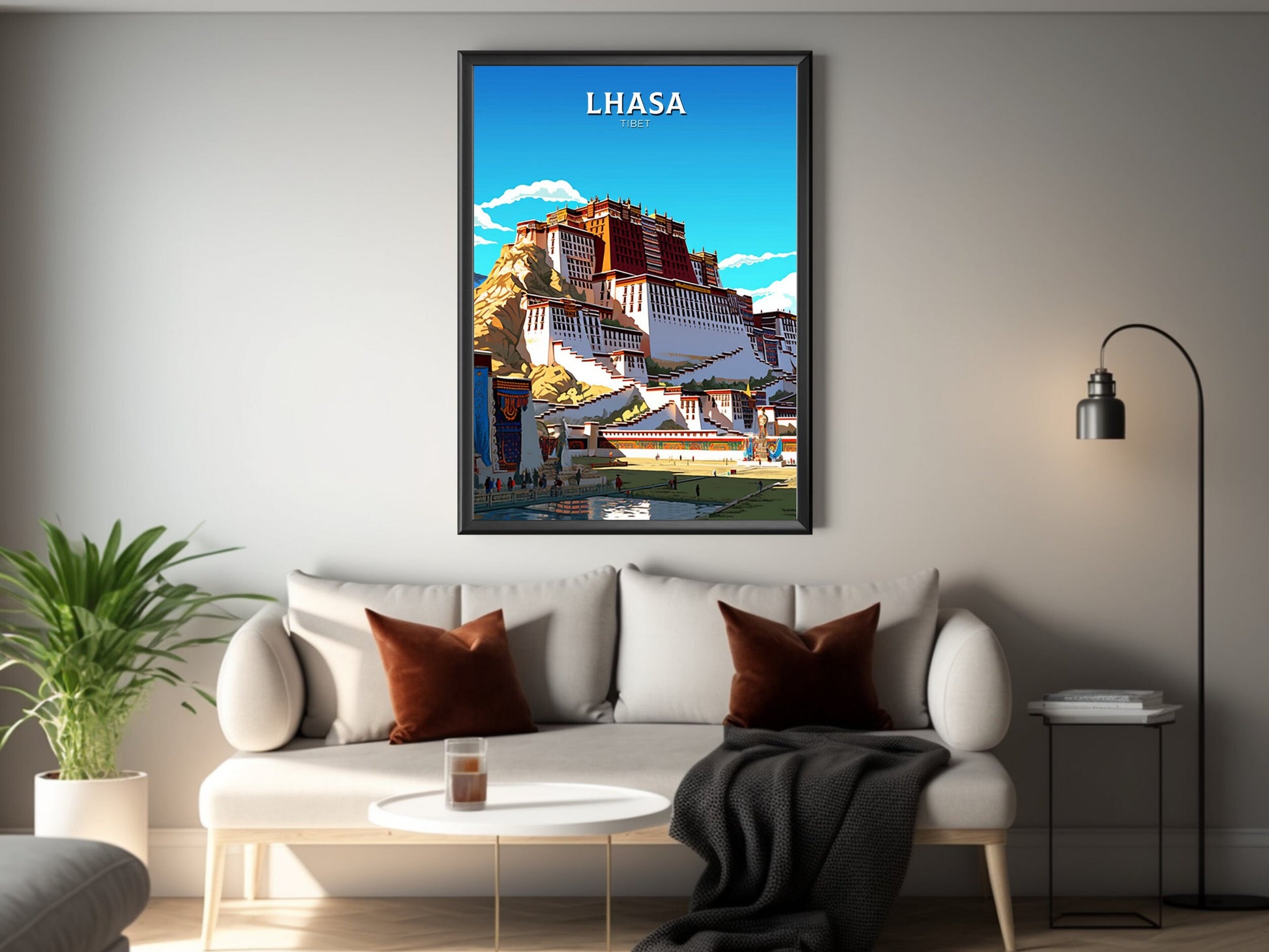 Cette œuvre mêle des rouges profonds et des blancs immaculés à l'essence sacrée de Lhassa, évoquant un charme de voyage vintage avec une touche de modernité. Imprimée sur un papier de qualité supérieure, elle offre un éclat durable et un fini lisse, ce qui en fait un cadeau idéal pour les aventuriers ou les collectionneurs d'art. Cette affiche de Lhassa apporte une touche de nostalgie himalayenne à tous vos murs.