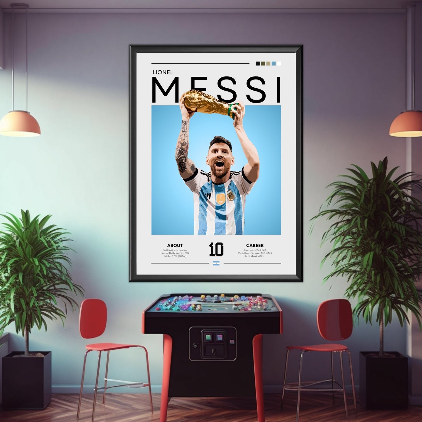 Affiche de Lionel Messi soulevant la Coupe du monde - Impression de football de haute qualité pour les fans