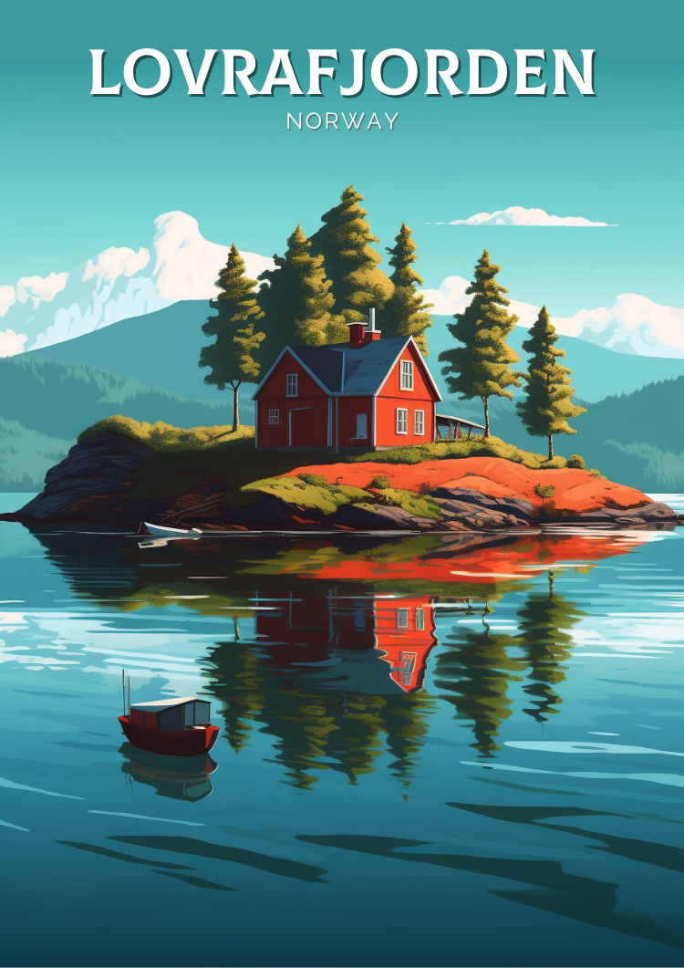 Que vous ayez exploré les majestueux fjords ou rêvé de visiter les côtes pittoresques de Norvège, cette affiche de voyage du Lovrafjorden vous plongera dans l'atmosphère paisible et grandiose du Lovrafjorden. Imprimée sur des matériaux de qualité supérieure avec des encres résistantes à la décoloration, elle complétera à merveille toute collection d' art de voyage norvégien .