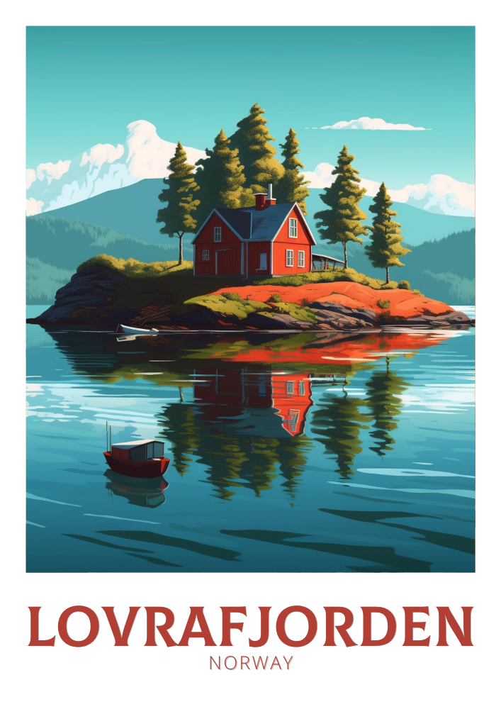 Célébrez les paysages époustouflants des fjords norvégiens avec cette affiche de voyage Lovrafjorden , mettant en scène les eaux paisibles et les falaises imposantes qui font de Lovrafjorden une merveille naturelle. Cette magnifique œuvre d'art norvégienne capture l'essence même du voyage norvégien, parfaite pour les amateurs d'art mural inspiré par la nature.