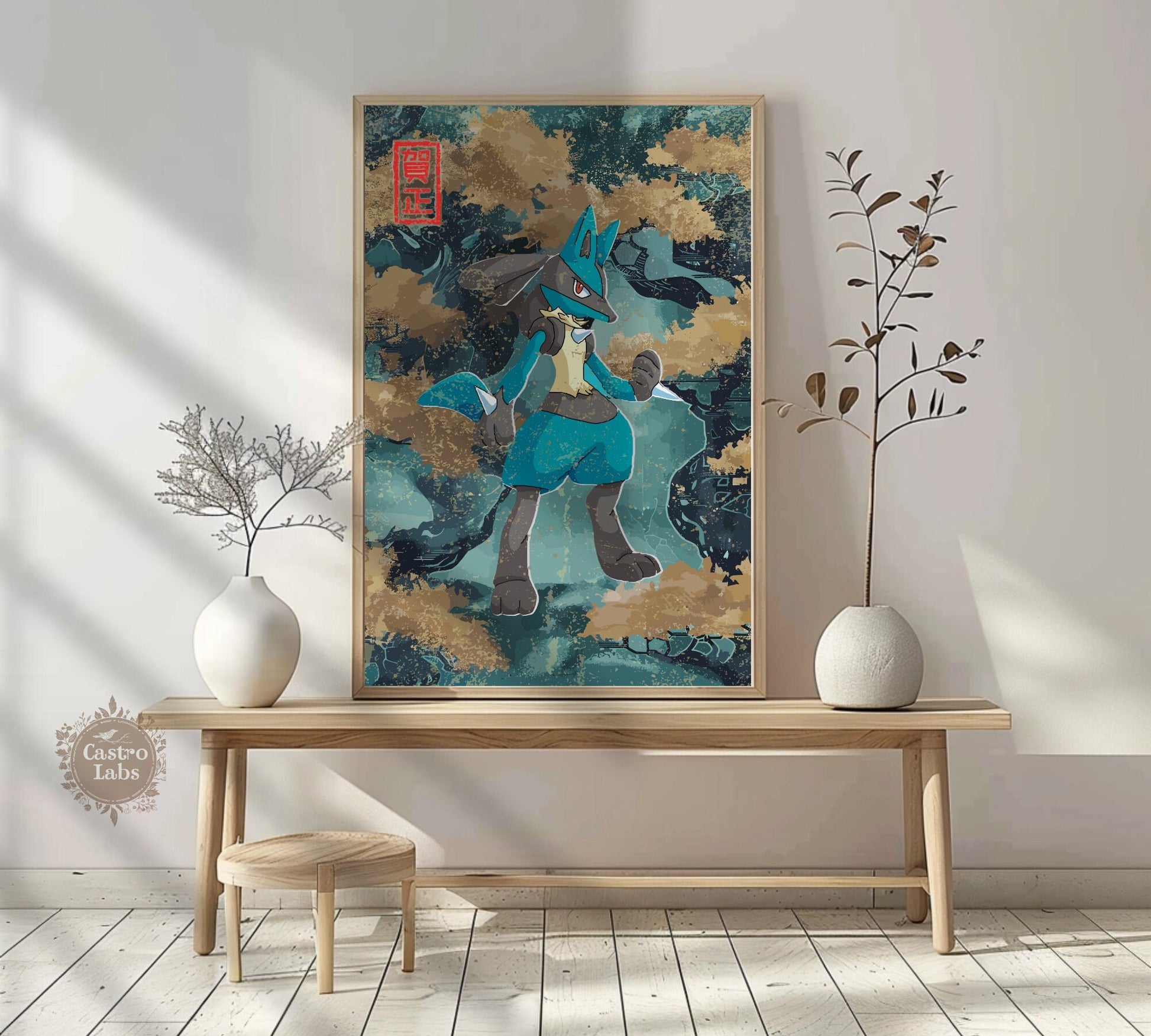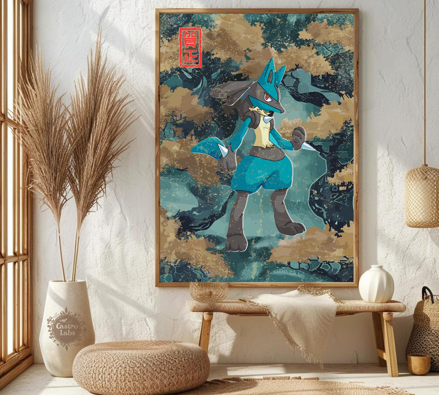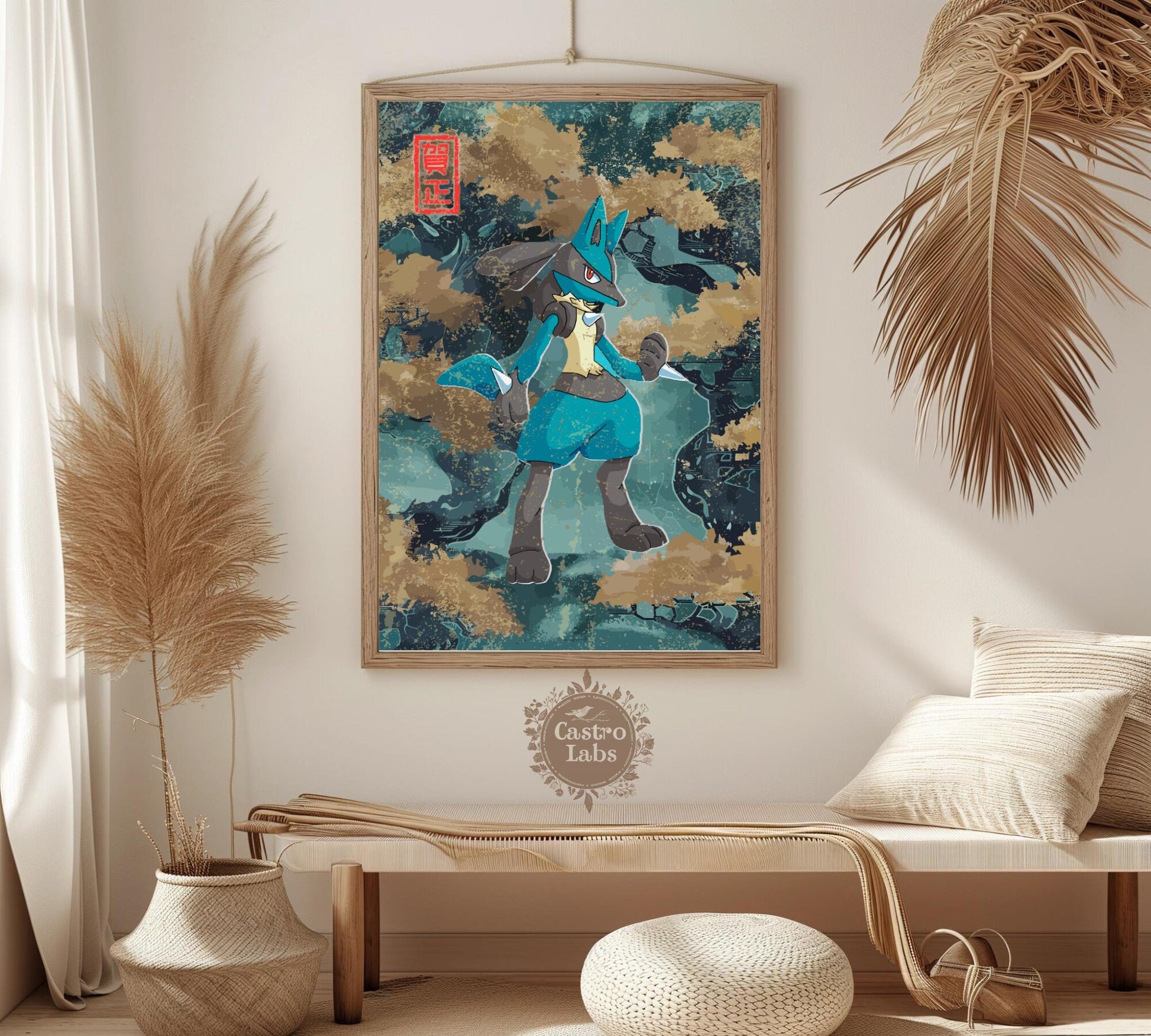 Affiche Lucario : œuvre d'art Pokémon de style tapisserie japonaise