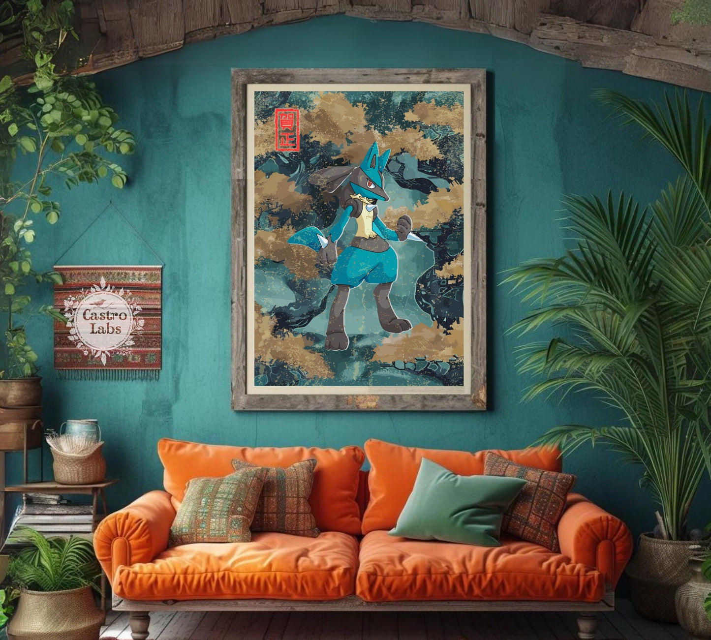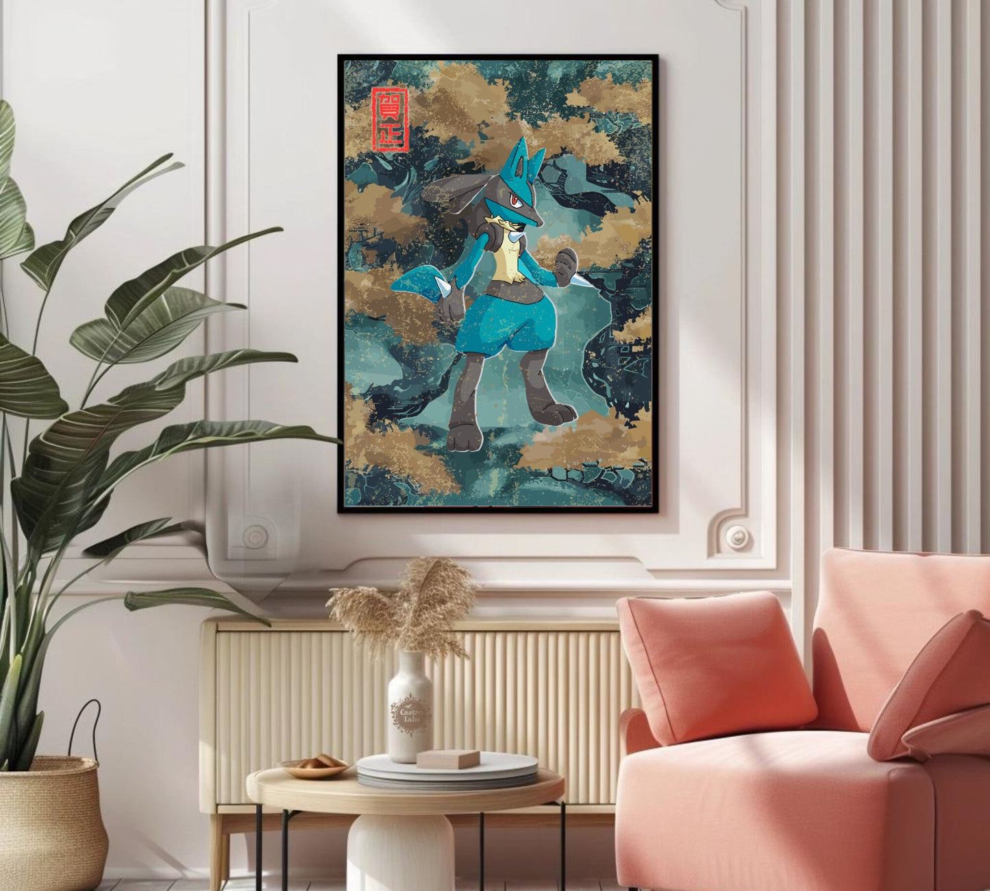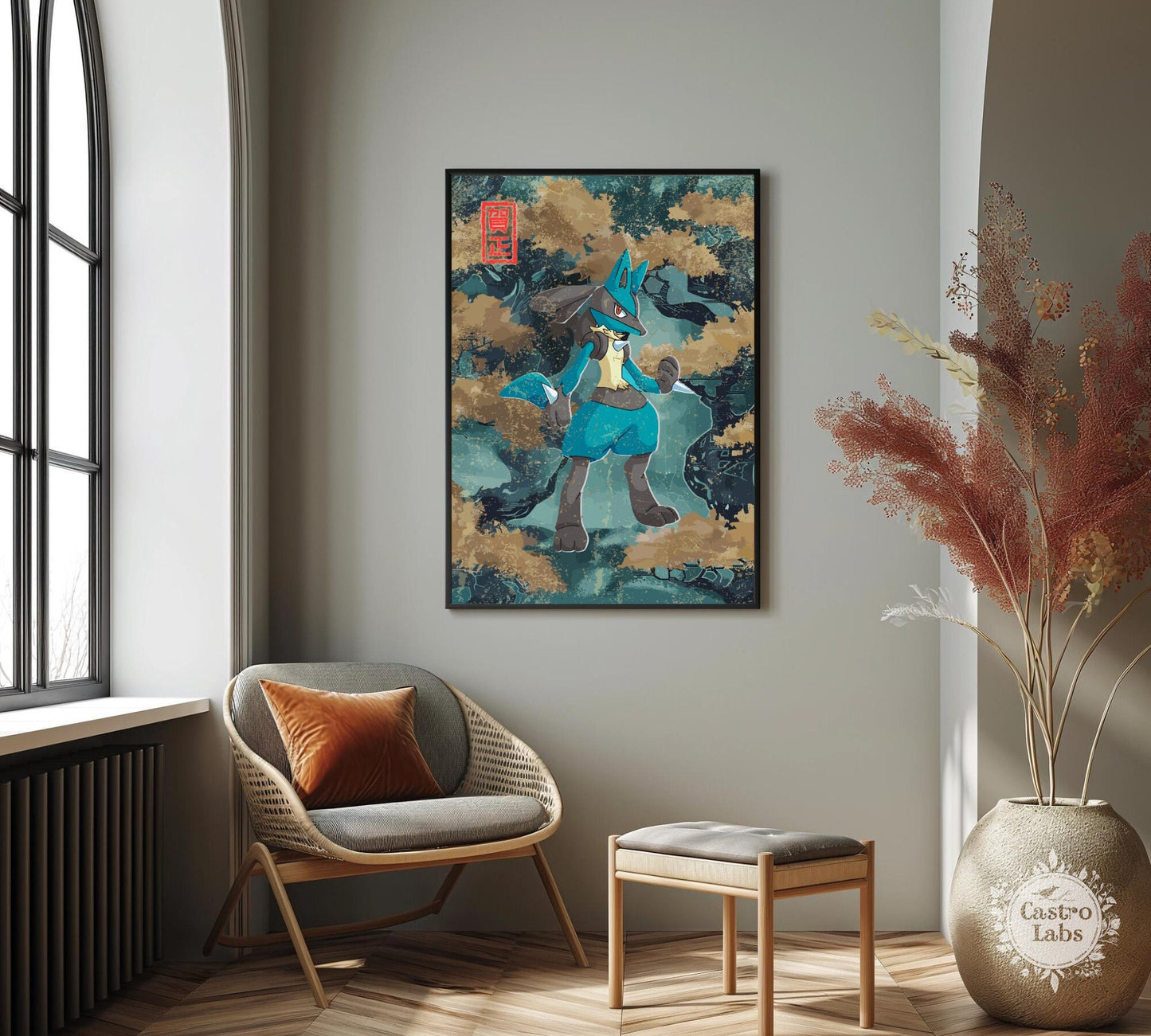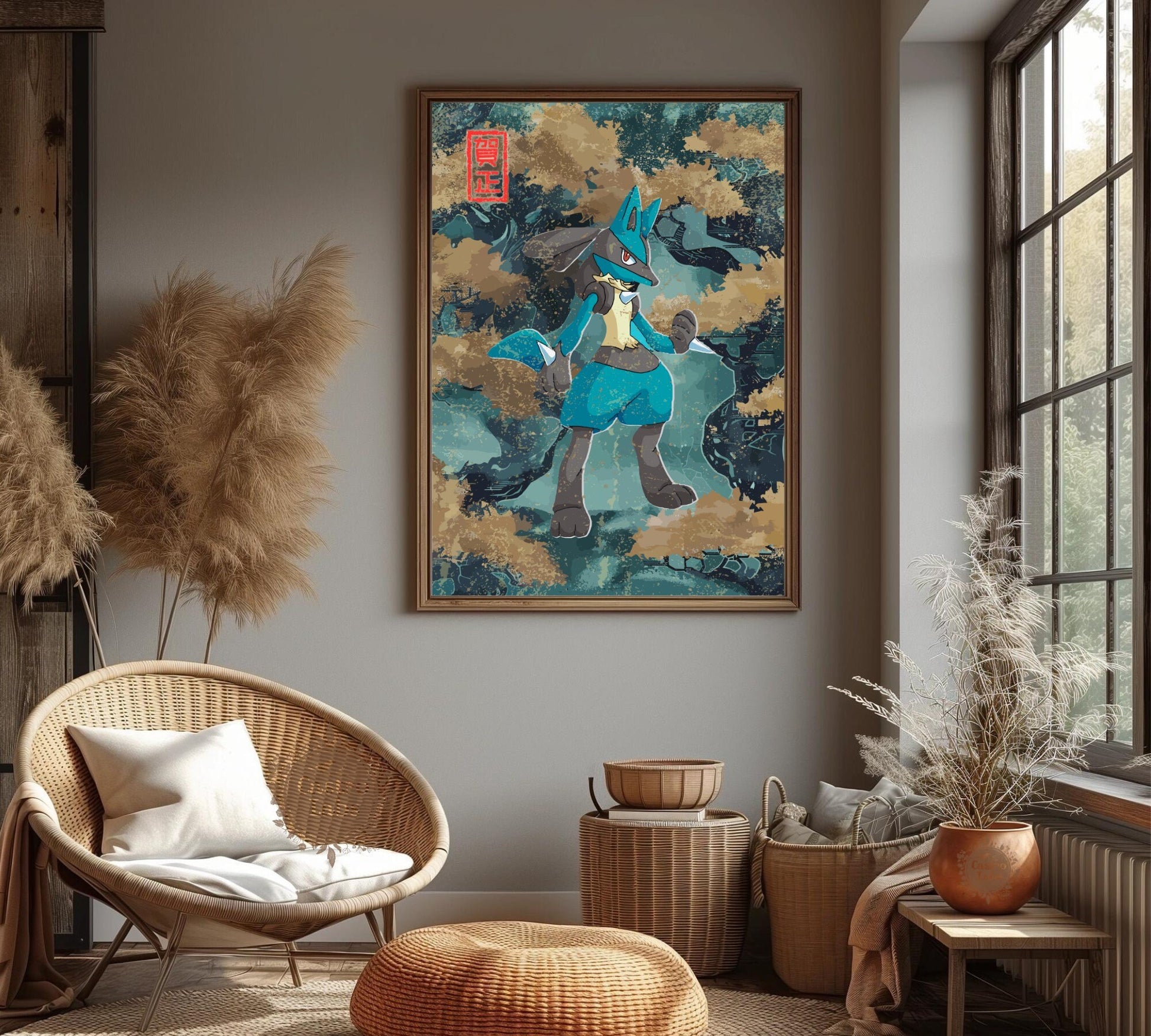 Affiche Lucario : œuvre d'art Pokémon de style tapisserie japonaise