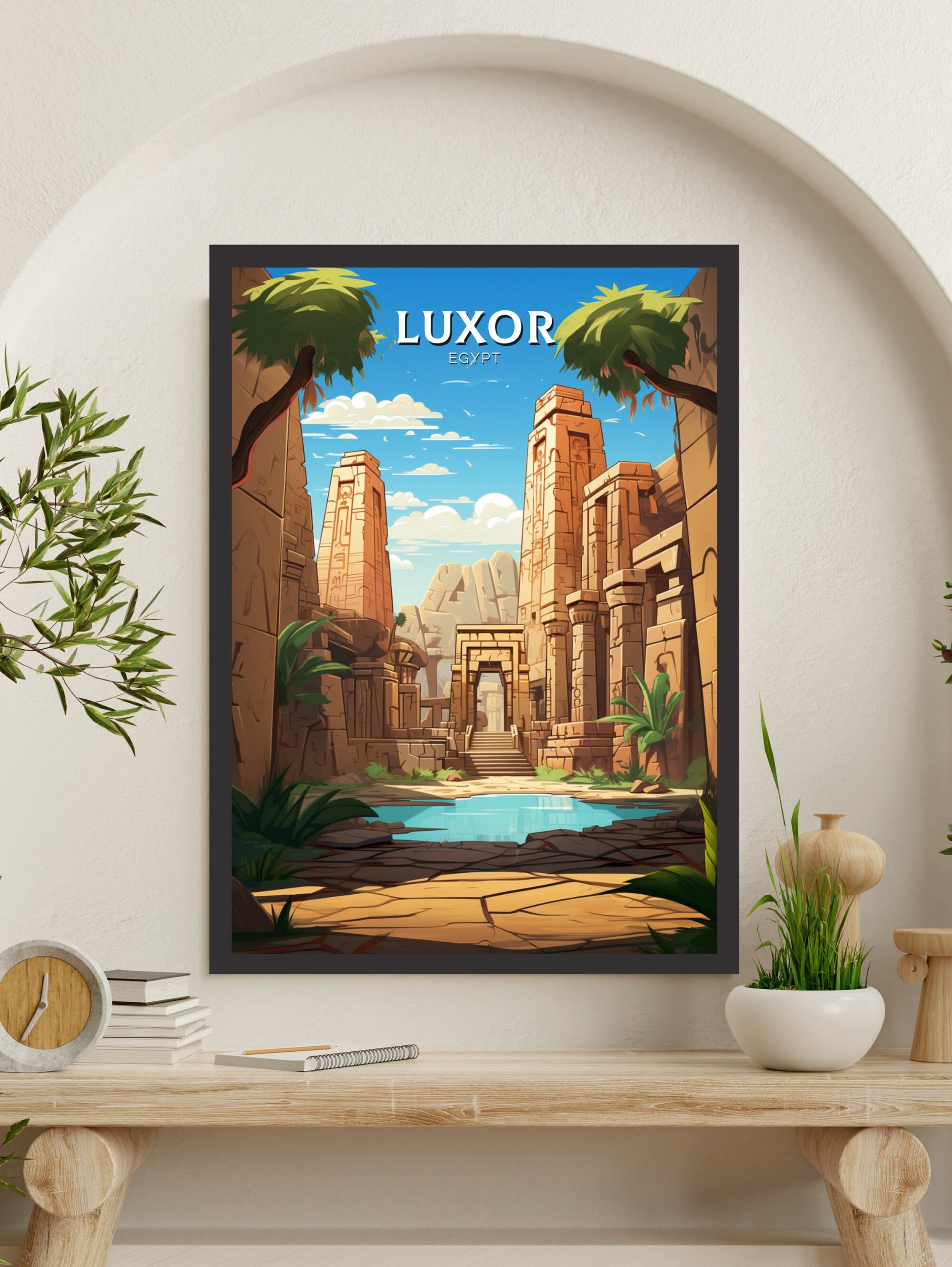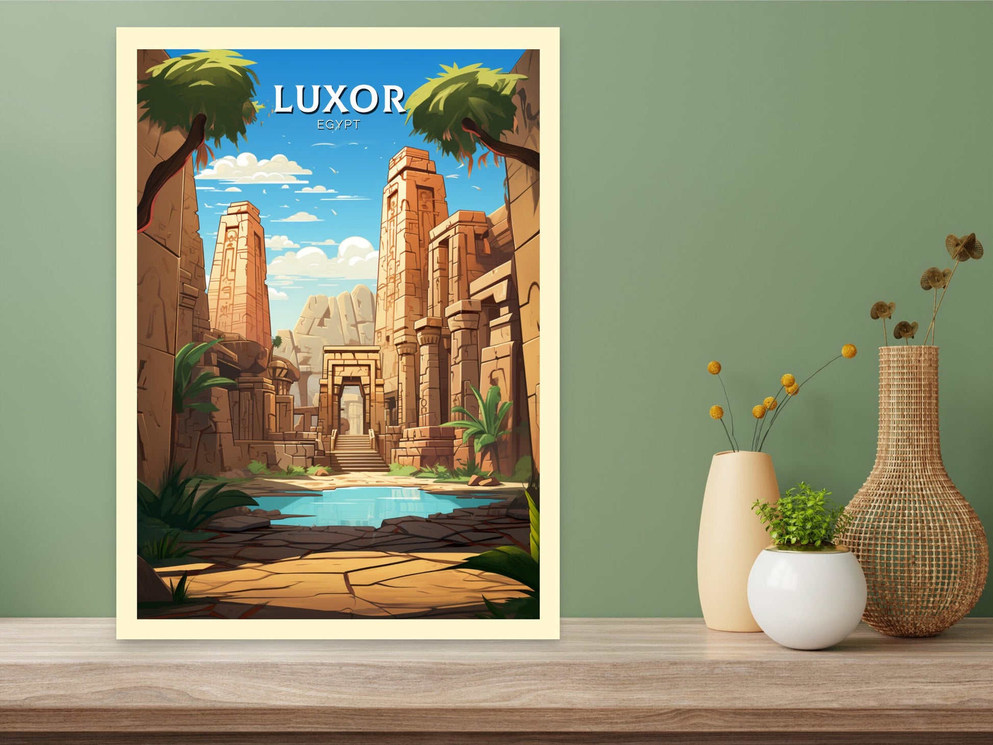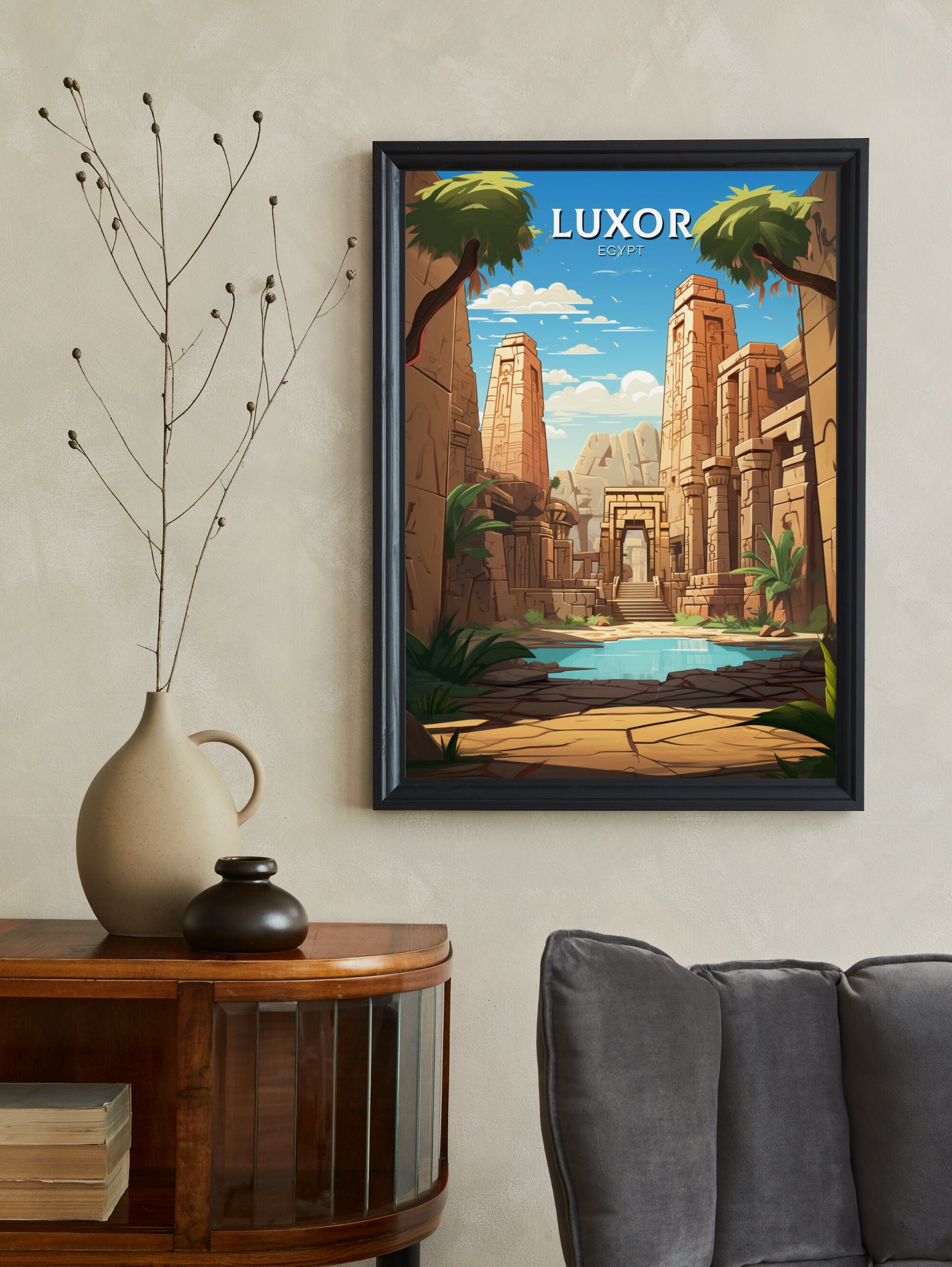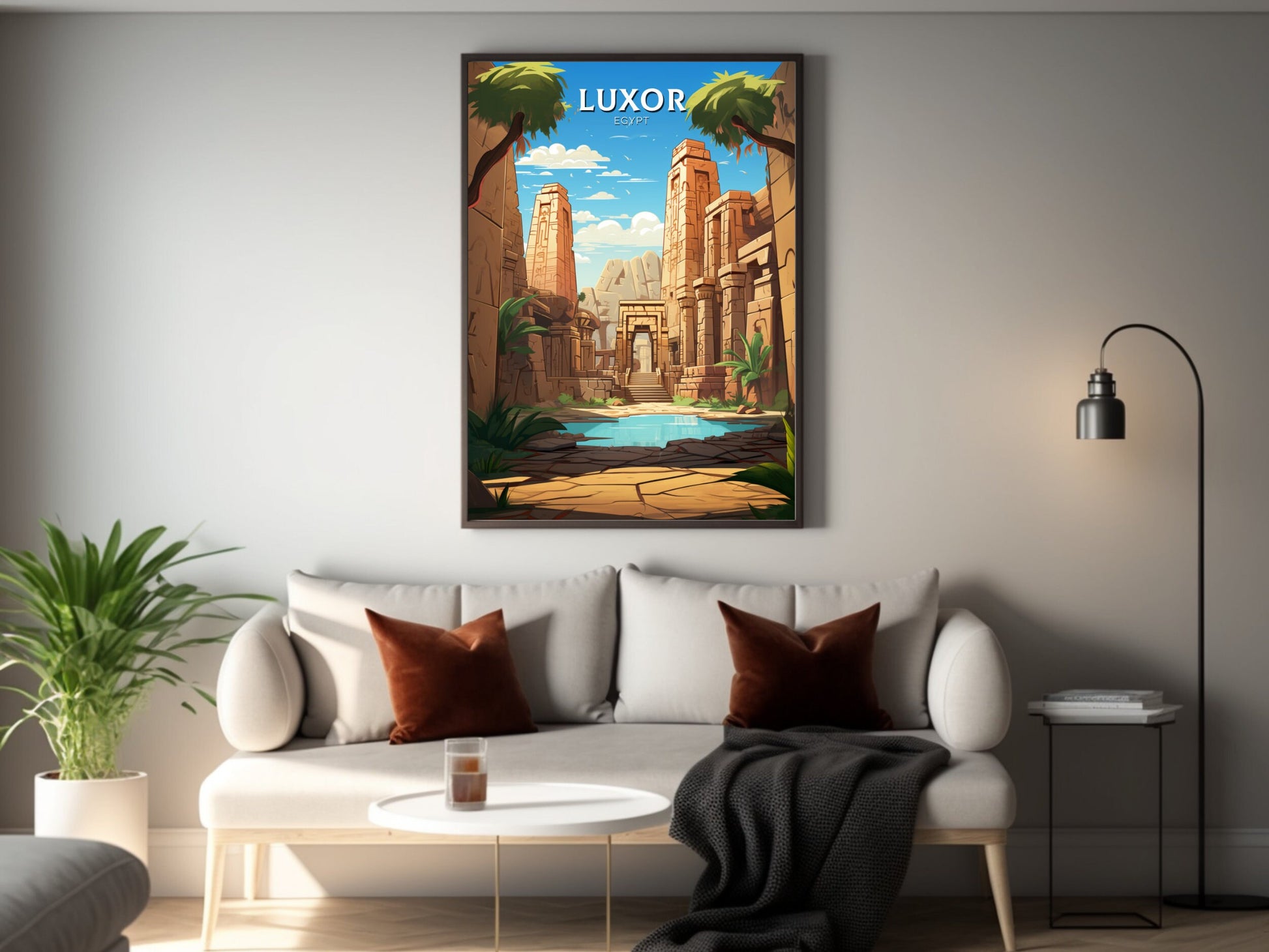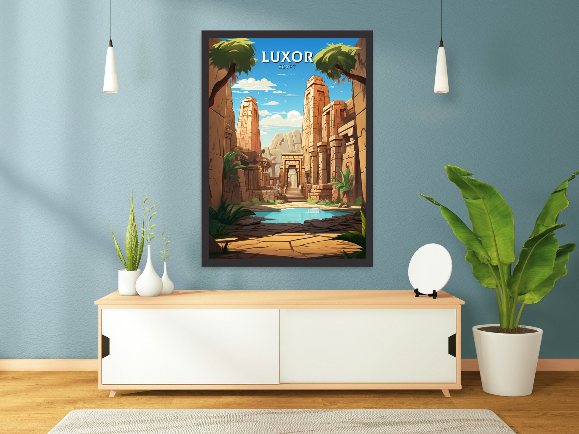 Notre affiche de voyage Louxor – Art rétro égyptien – transporte votre intérieur vers les merveilles antiques de Louxor, en Égypte, grâce à son design nostalgique. Idéale pour les passionnés de voyages et d'art rétro, elle capture la Vallée des Rois et le temple de Louxor dans un style intemporel. Que vous ayez exploré ses ruines ou rêvé de son histoire, cette affiche rétro Louxor sera un ajout magnifique à votre décoration.