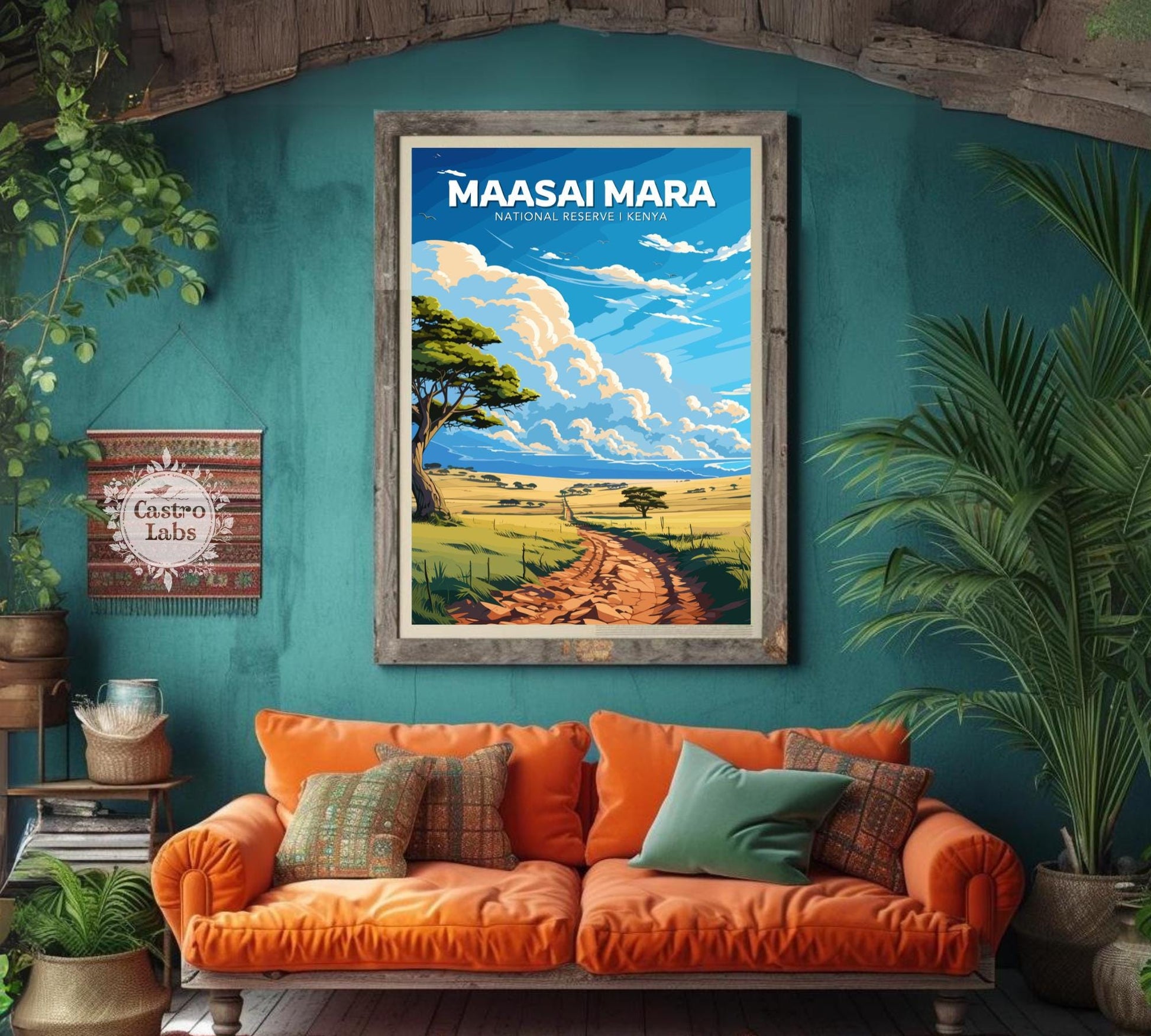 Que vous soyez amateur de safari, globe-trotter ou collectionneur d'art de voyage, l' affiche du parc national du Masai Mara est un incontournable. Son design de qualité muséale et son hommage à la beauté naturelle du Kenya en font une œuvre d'art audacieuse et inoubliable.