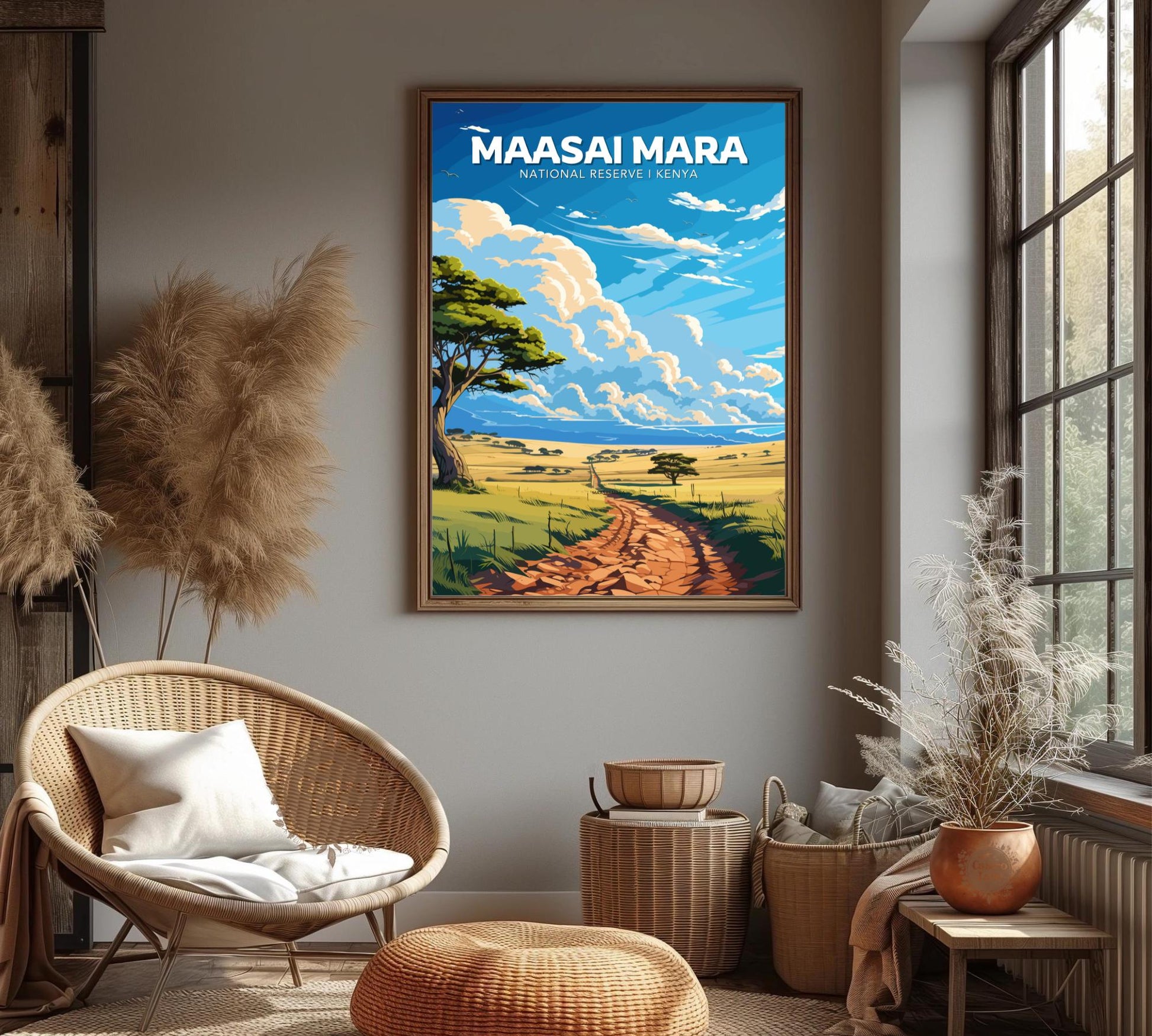Intégrez la magie du paradis animalier du Kenya à votre intérieur avec l' affiche du parc national du Masaï Mara , une œuvre d'art époustouflante inspirée de la destination de safari la plus célèbre d'Afrique. Connue pour ses vastes savanes, ses couchers de soleil spectaculaires et la Grande Migration, la région du Masaï Mara est immortalisée ici avec des détails saisissants et intemporels. Idéale pour les voyageurs, les aventuriers et les amoureux de la nature, cette décoration murale apportera une touche d'élégance et de volupté à n'importe quelle pièce.