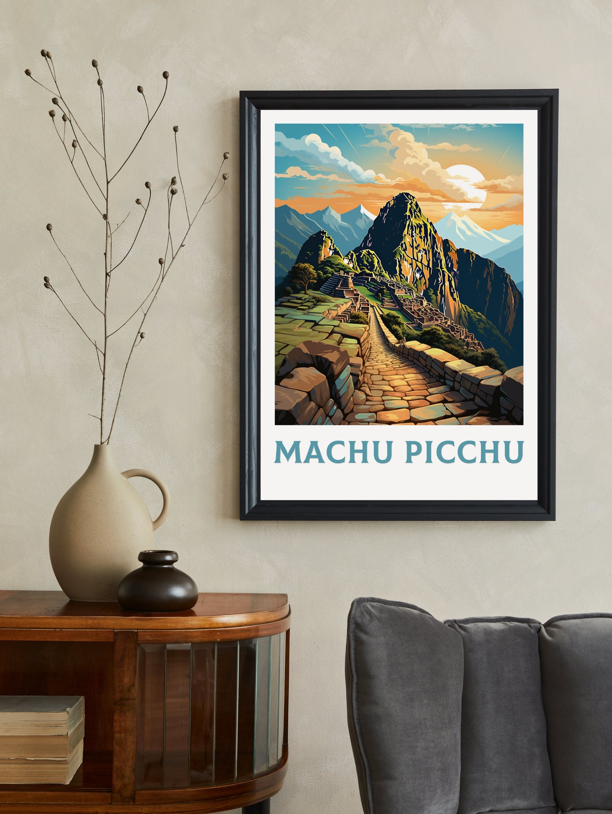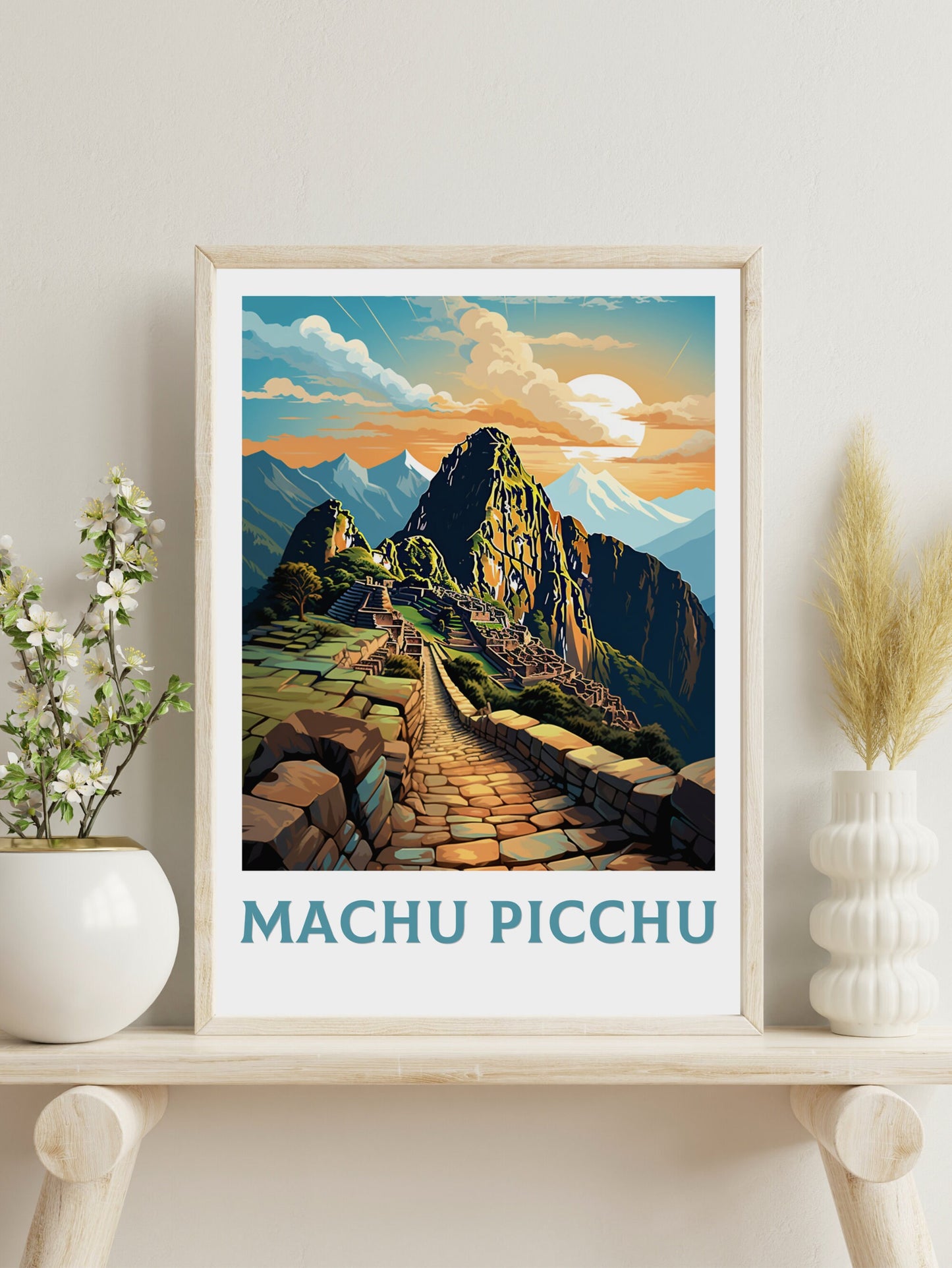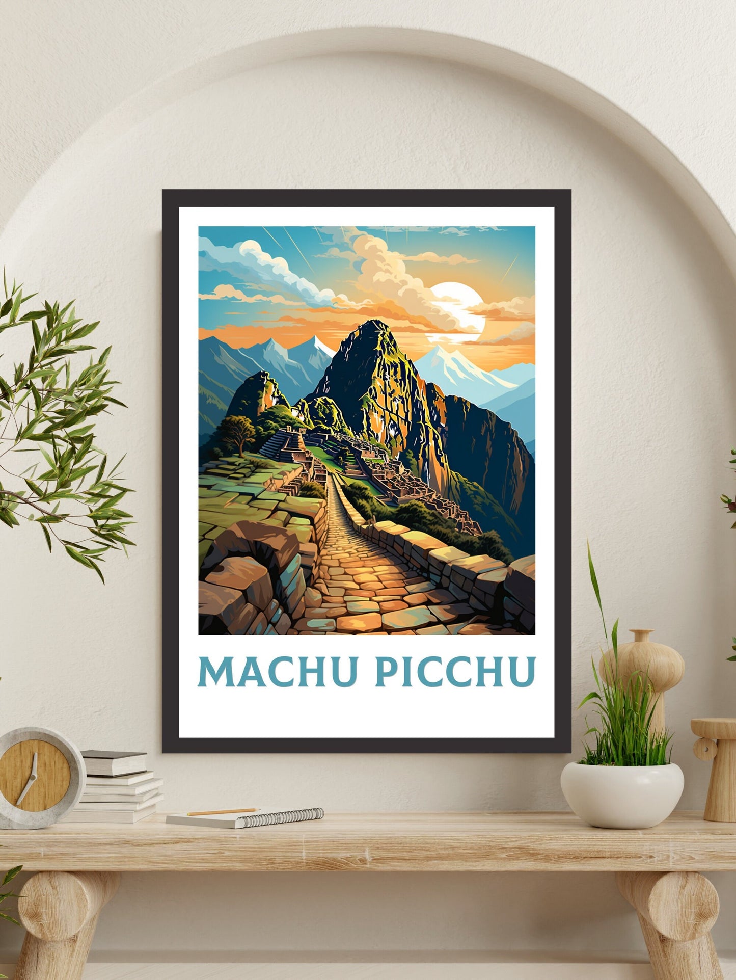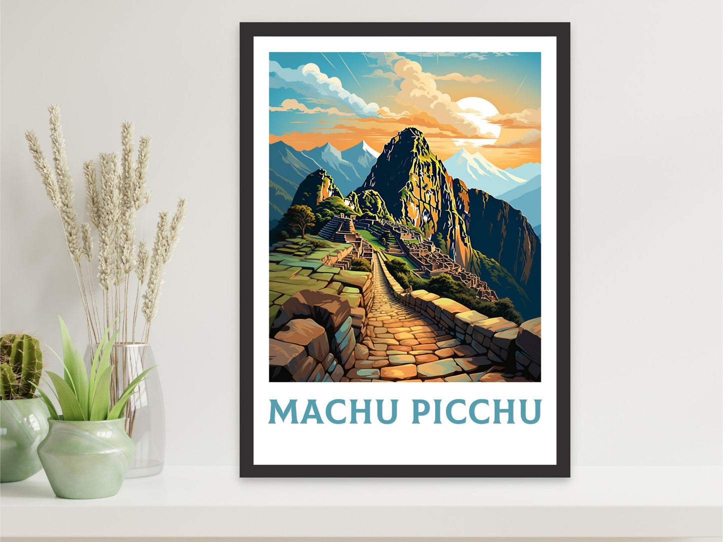 Transformez votre intérieur en un lieu énigmatique du Machu Picchu grâce à cette œuvre captivante. Idéale pour un salon, un bureau ou un espace inspiré du voyage, elle s'associe parfaitement à d'autres œuvres d'art rétro. Cette œuvre d'art des ruines incas est bien plus qu'un simple objet de décoration : c'est un voyage dans la cité perdue du Machu Picchu.