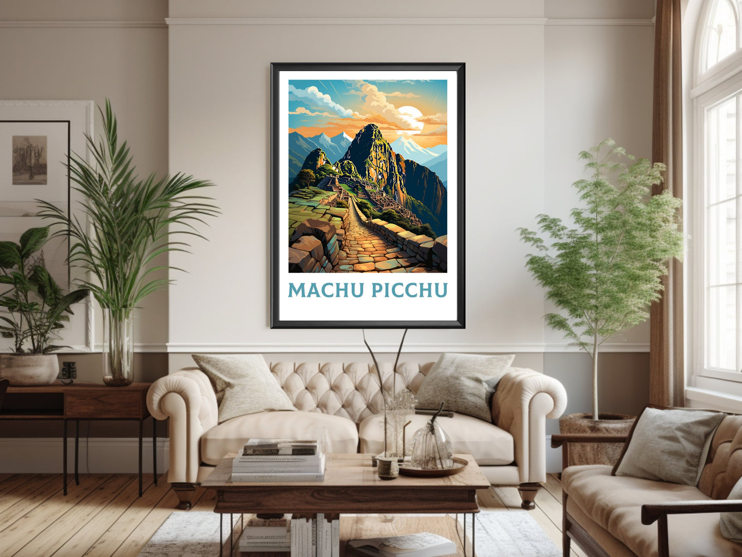 Notre affiche vintage du Machu Picchu – Ruines incas – plonge votre intérieur dans les merveilles antiques du Machu Picchu au Pérou grâce à son design nostalgique. Parfaite pour les passionnés de voyages et d'art rétro, elle capture les ruines brumeuses et les sommets andins dans un style intemporel. Que vous ayez parcouru ses sentiers ou rêvé de son mystère, cette affiche vintage du Machu Picchu sera un ajout magnifique à votre décoration.