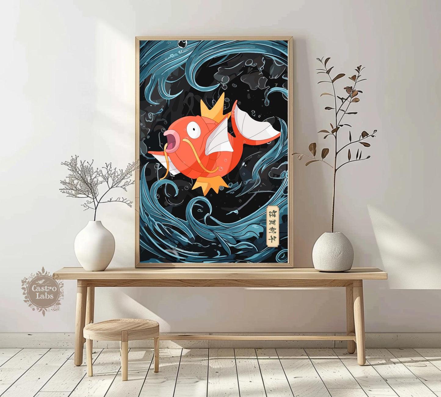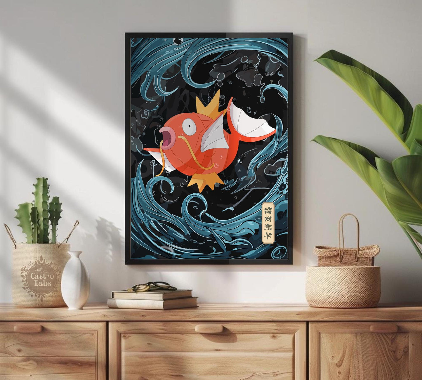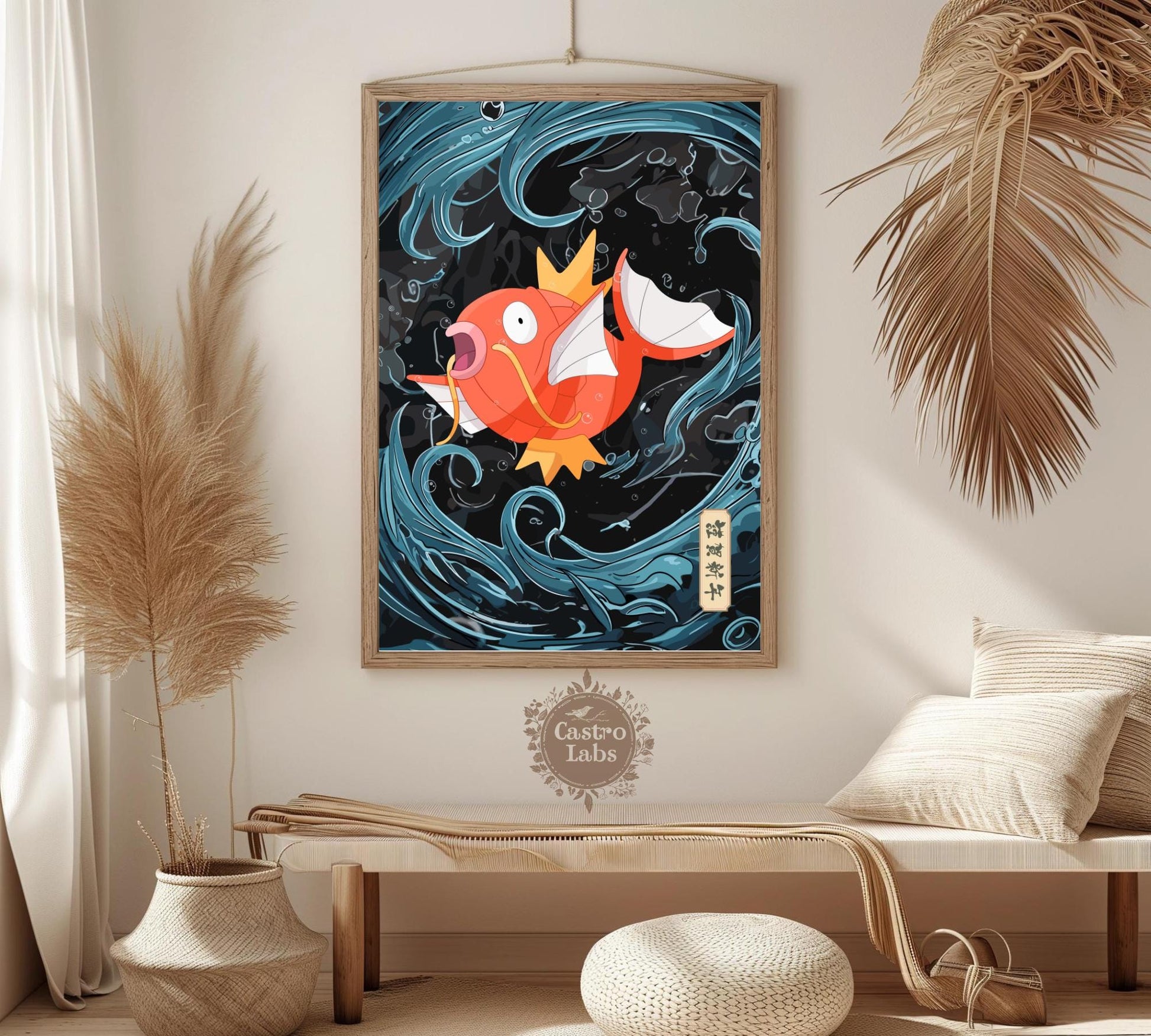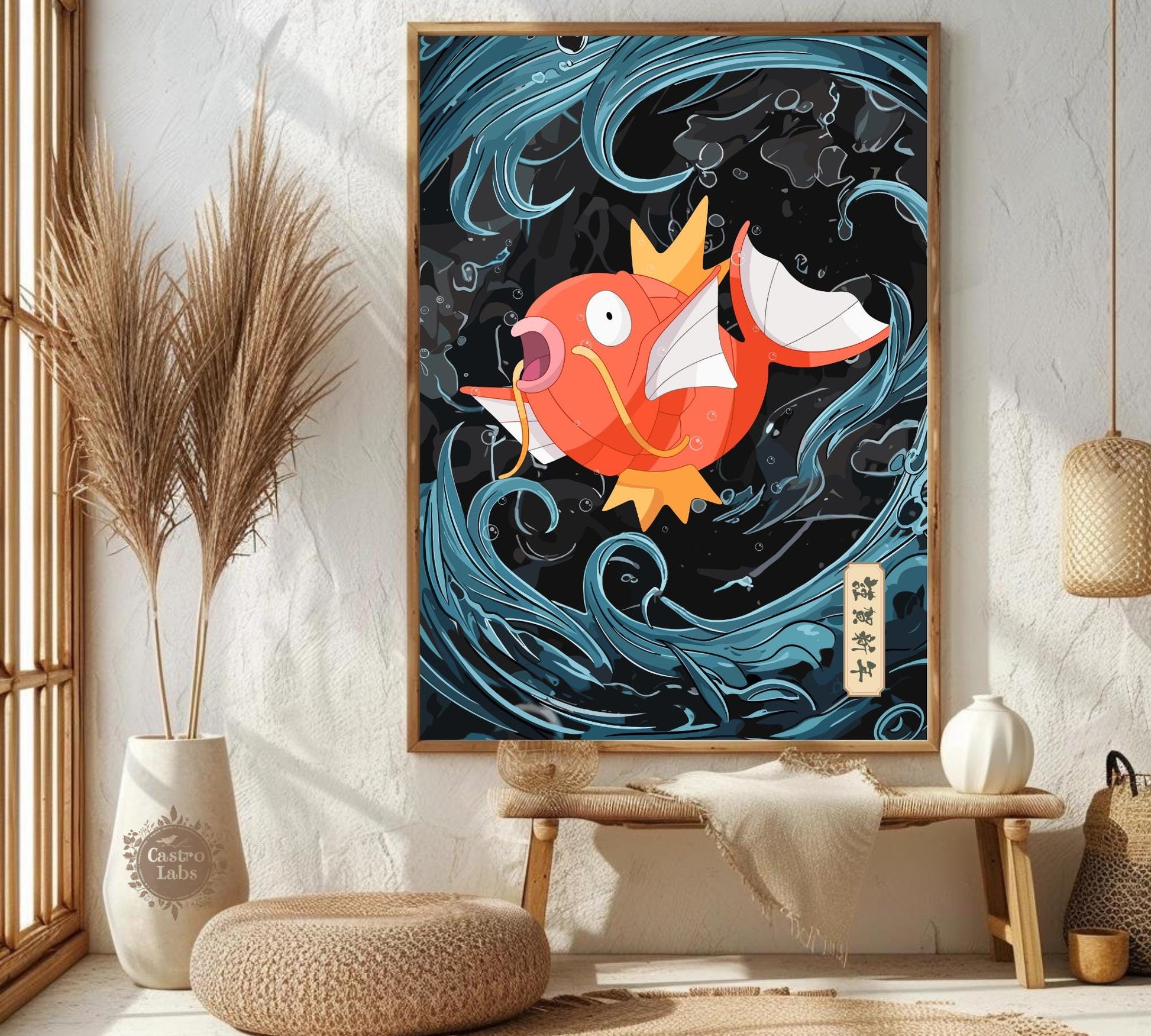 Idéal comme cadeau ou objet de collection, ce poster Pokémon Magikarp, style tapisserie japonaise, apportera charme et personnalité à n'importe quel espace. Mettez en valeur l'esprit ludique de Magikarp et sublimez votre pièce avec ce poster unique inspiré de l'anime.