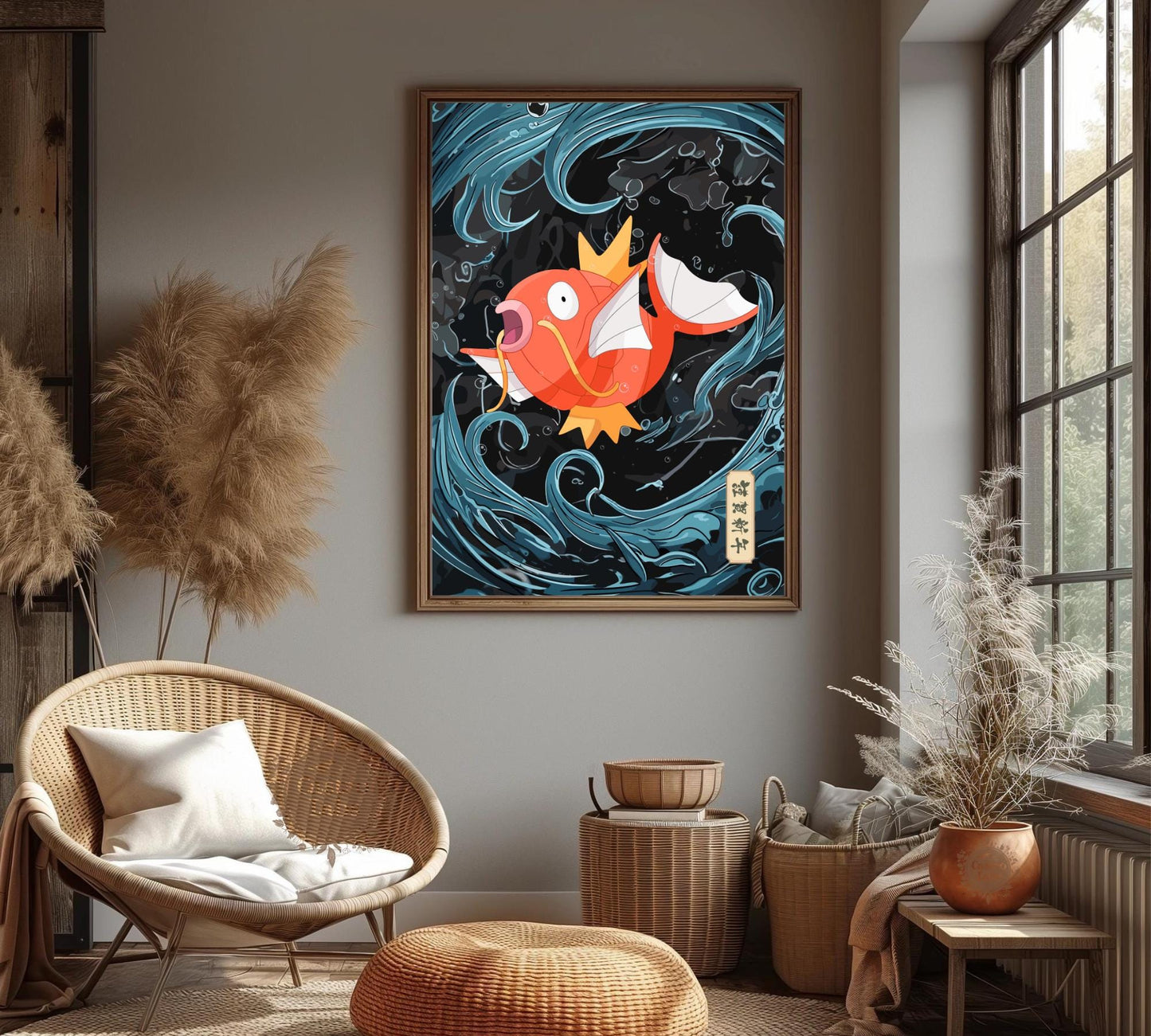 Célébrez le charme emblématique et fantaisiste de Magikarp avec ce poster Pokémon Magikarp, inspiré d'une tapisserie japonaise . Doté d'un superbe motif de tapisserie d'inspiration japonaise, ce poster capture Magikarp avec une précision exquise, mêlant l'esthétique artistique traditionnelle à l'énergie ludique des Pokémon. Idéal pour une chambre, une salle de jeux ou une exposition de collection, il apporte une touche culturelle unique à votre collection Pokémon.