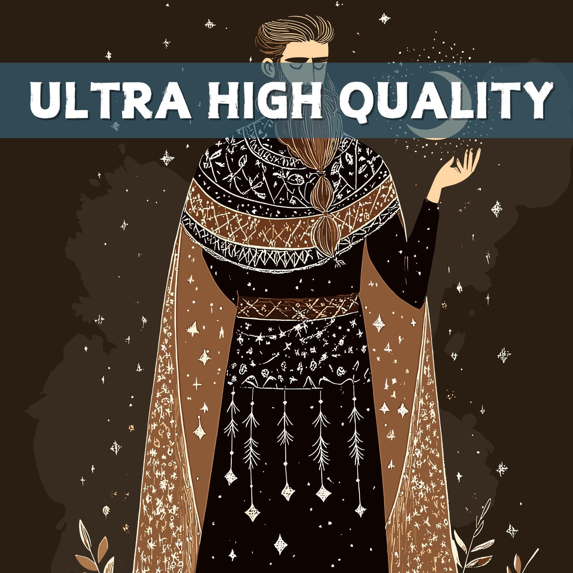 Imprimée sur un papier durable et de haute qualité, cette œuvre d'art sur la mythologie nordique respire sa grâce paisible, parfaite pour les fans de mythologie ou pour tous ceux qui recherchent une touche lunaire sur leur mur. C'est un hommage à son règne sur le ciel nocturne.