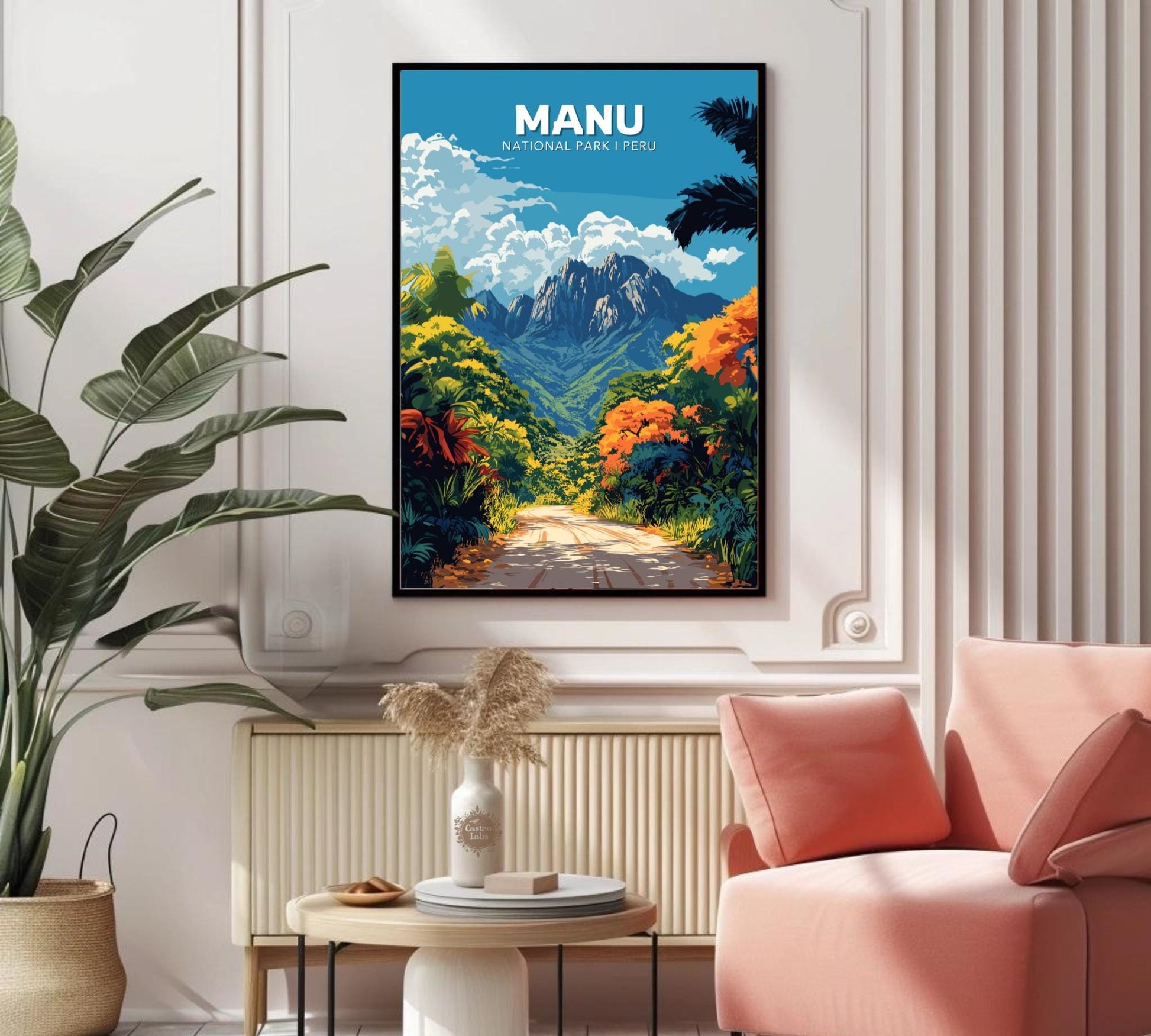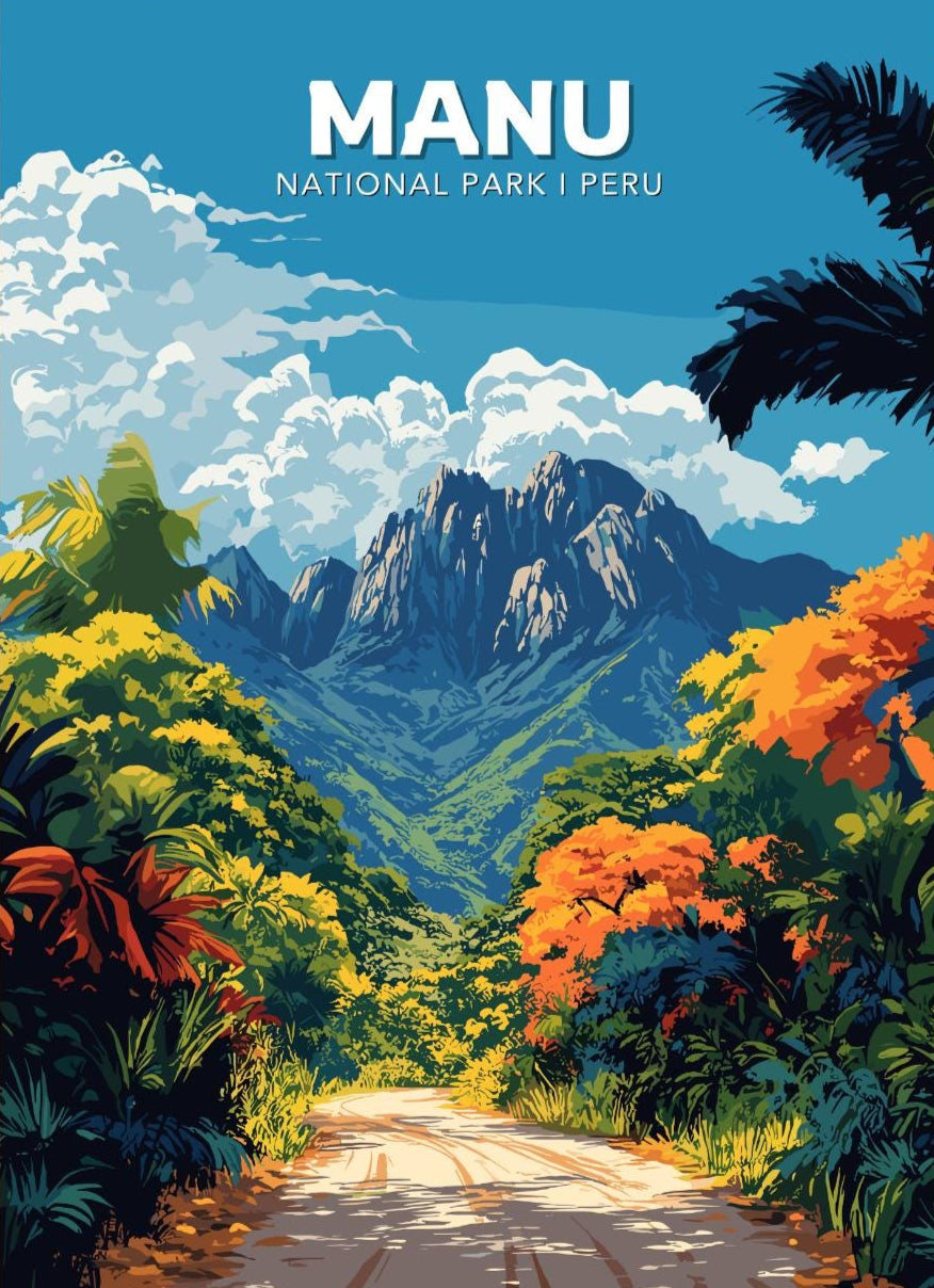 Notre affiche Manu vous plonge dans les profondeurs luxuriantes de l'Amazonie péruvienne grâce à son design vibrant. Parfaite pour les amoureux de la nature et de la faune, elle met en valeur les denses forêts tropicales, les rivières sinueuses et la biodiversité exotique du parc national de Manu. Que vous ayez arpenté ses sentiers ou rêvé de merveilles de la jungle, cette affiche Manu Pérou sera un ajout saisissant à votre décoration.