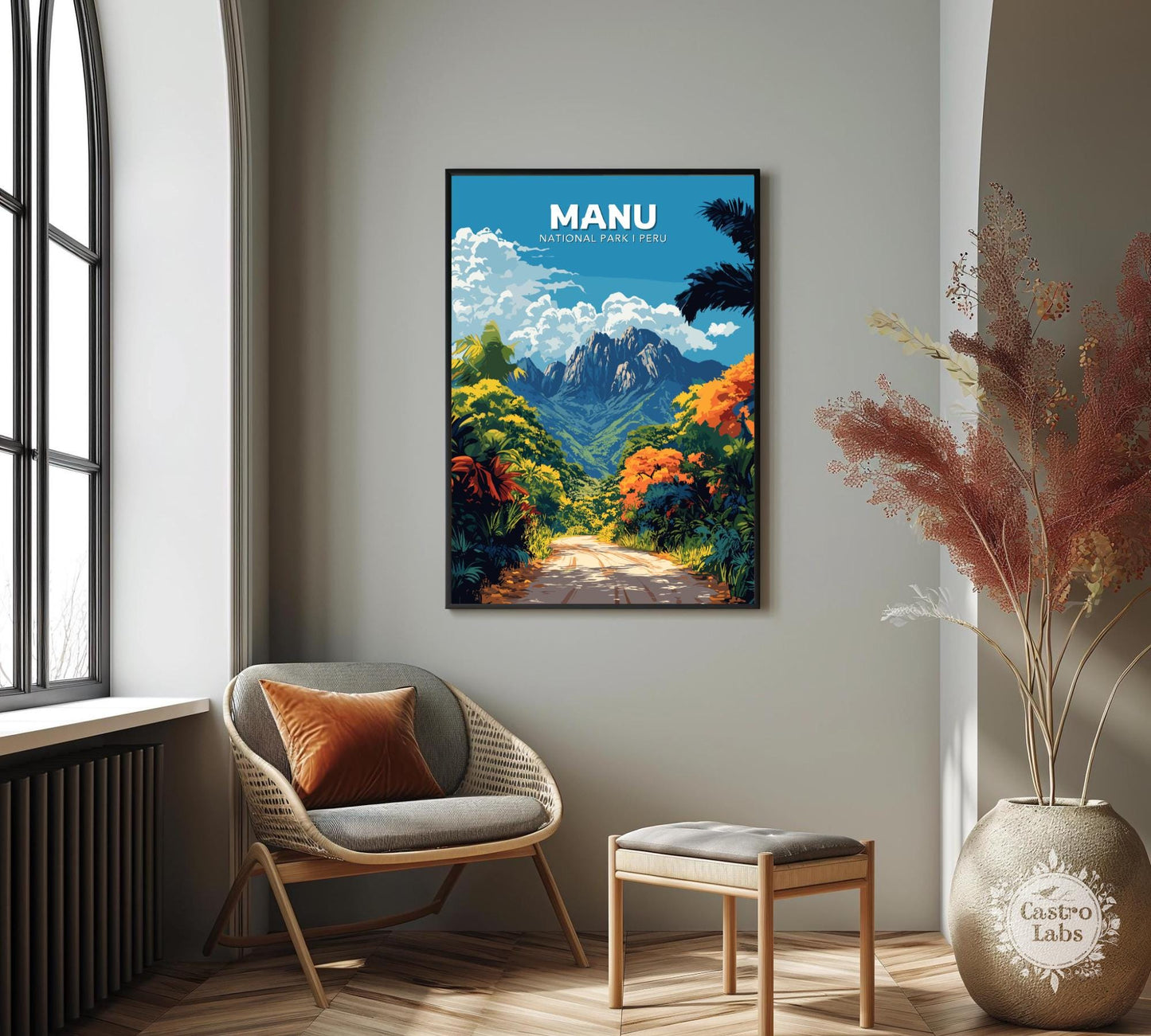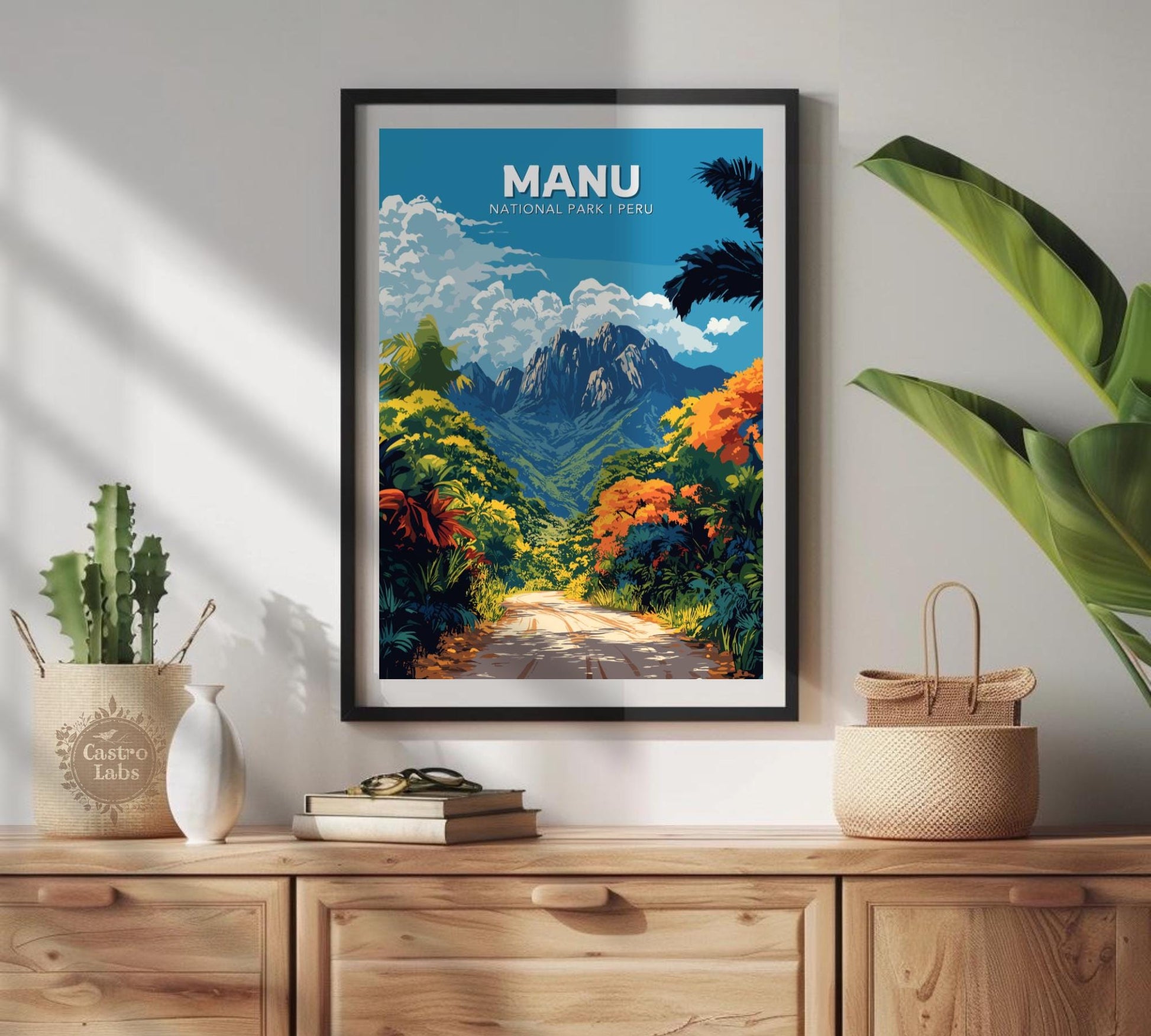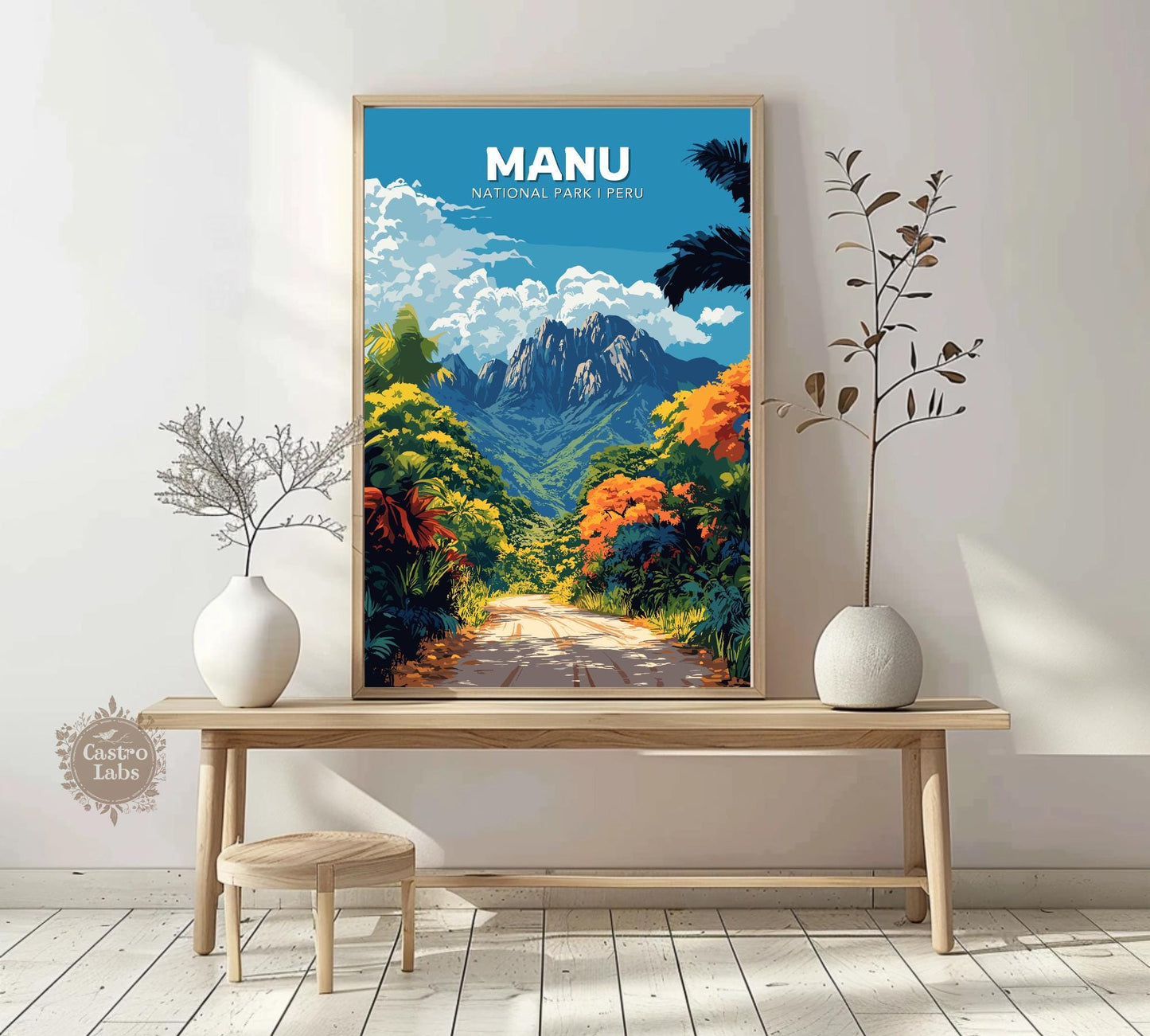Cette œuvre mêle des verts riches à l'attrait intemporel du Manu, capturant son essence de trésor amazonien intact. Imprimée sur un papier de qualité supérieure, elle offre une vivacité durable et un rendu impeccable, ce qui en fait un cadeau idéal pour les éco-voyageurs ou les amoureux des parcs. Cette affiche Manu apporte une touche de nature sauvage péruvienne à tous les espaces.