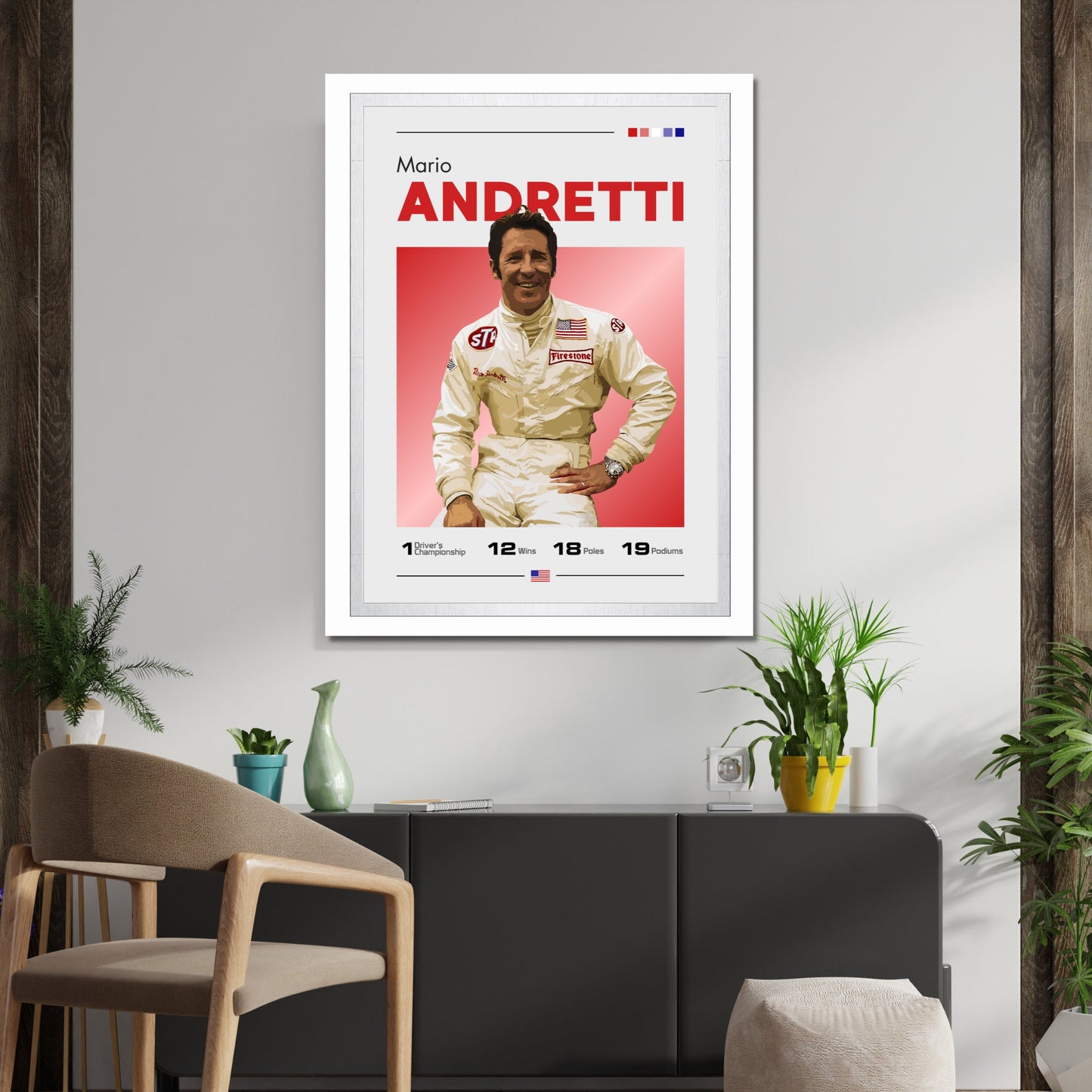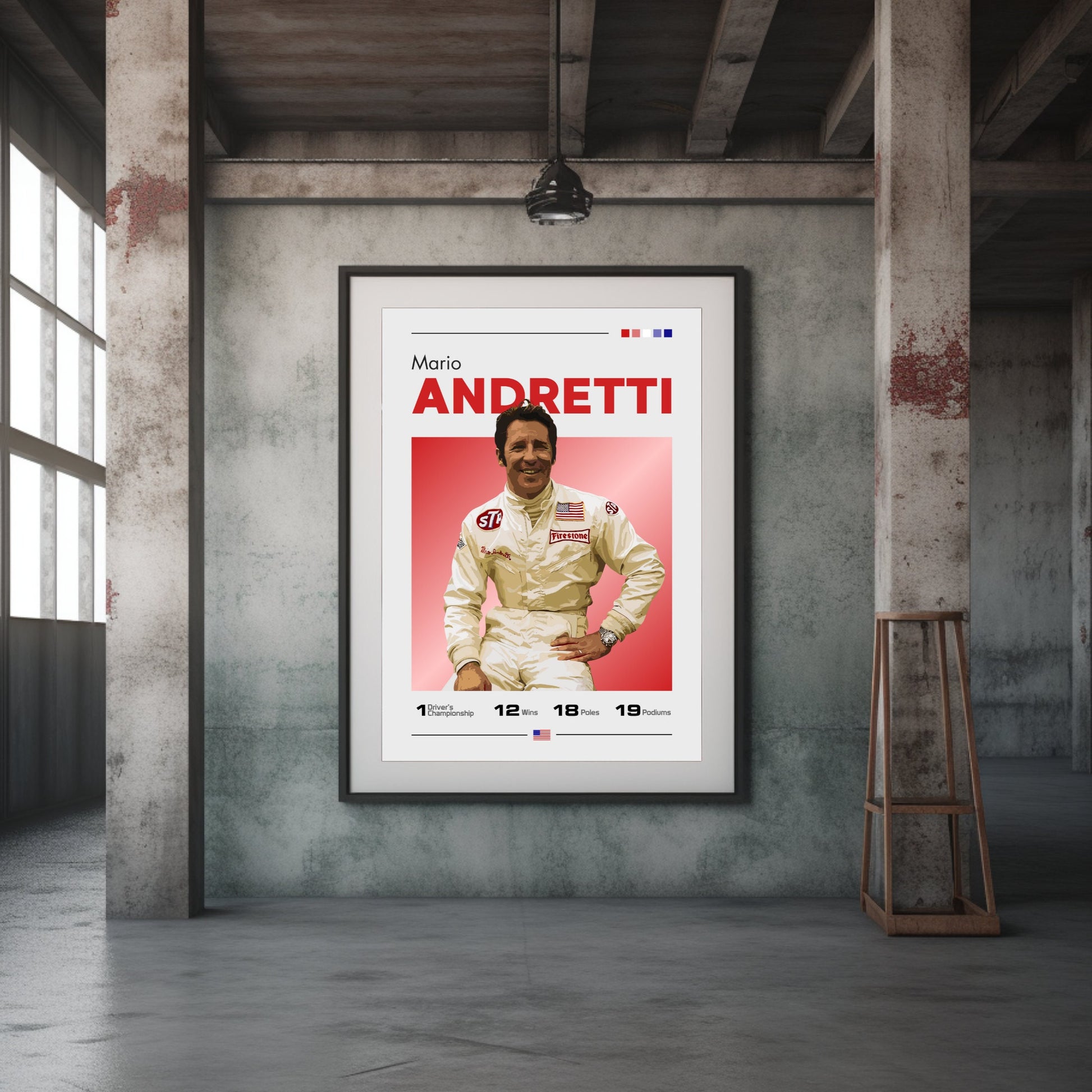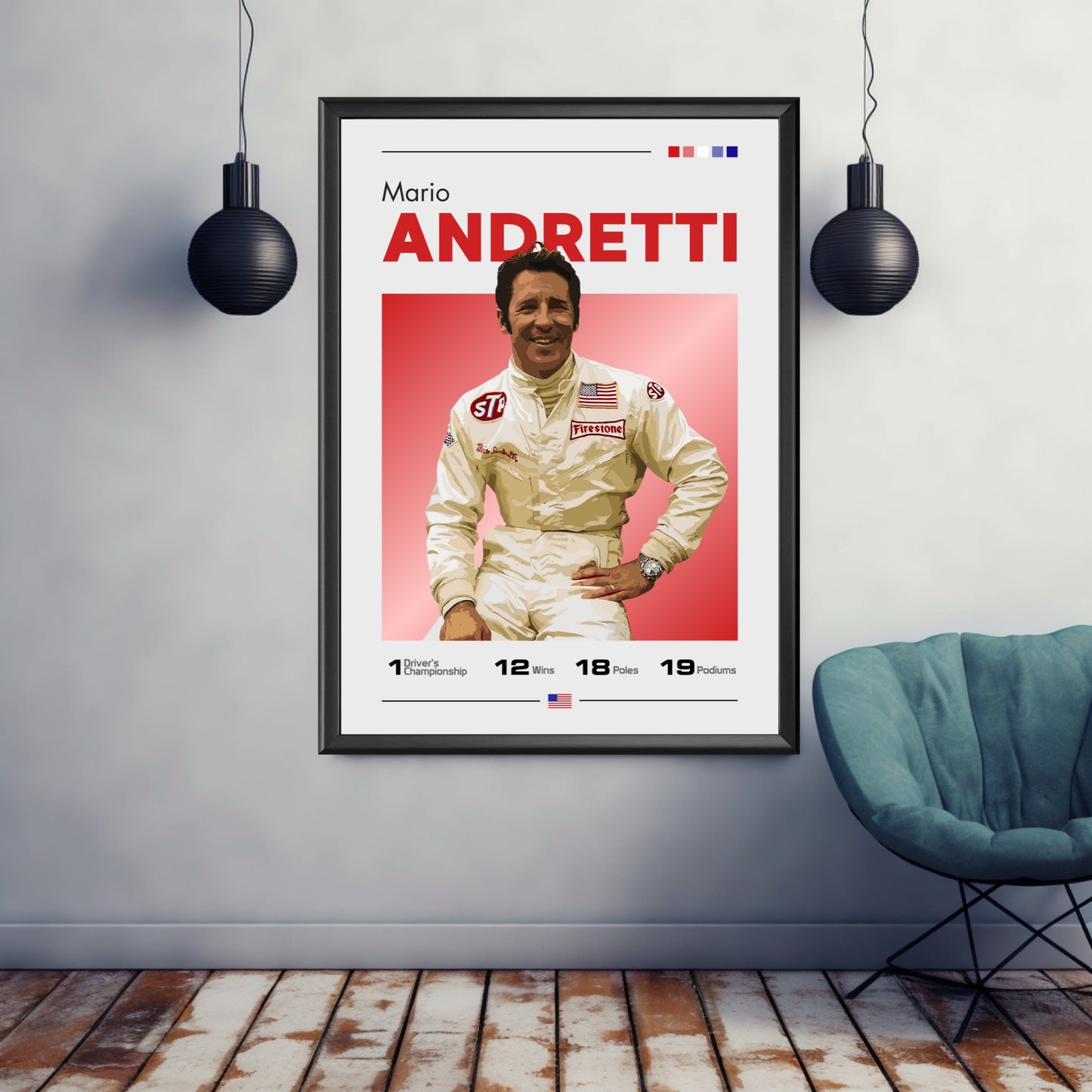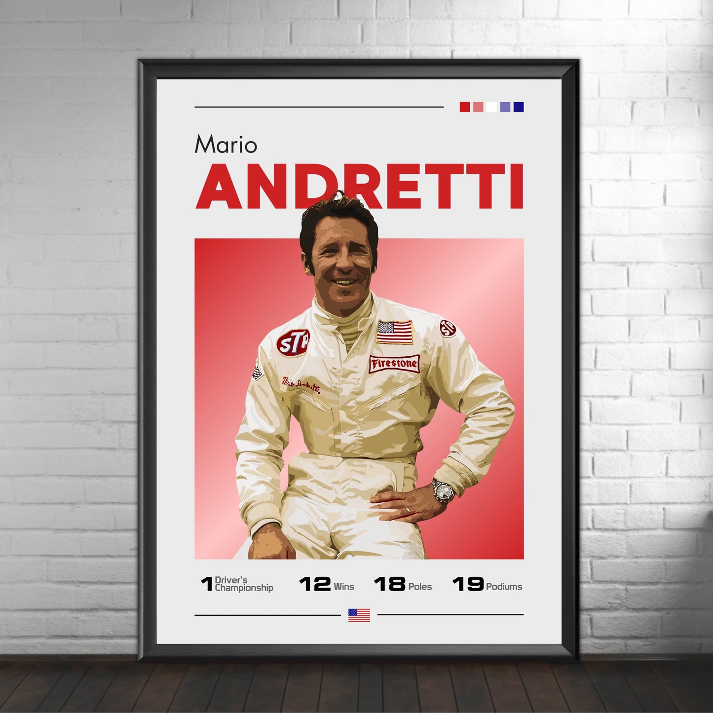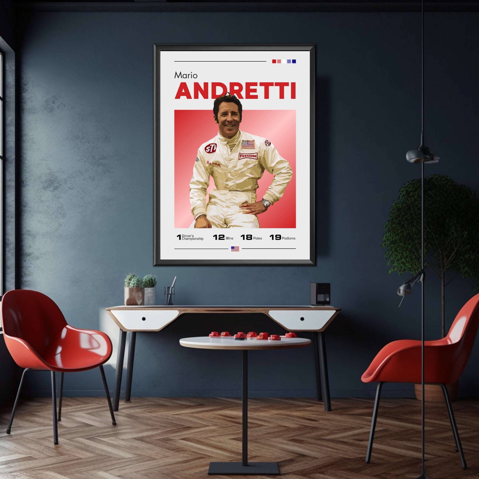 Célébrez la carrière légendaire de Mario Andretti, icône de la Formule 1, avec l' affiche Mario Andretti F1 – Champion du monde 1978. Idéale pour les fans de F1, les passionnés de sport automobile et les collectionneurs de souvenirs de course classique, cette affiche de haute qualité immortalise Andretti en action lors de sa saison 1978, victorieuse du championnat. Insufflez la vitesse, la précision et l'émotion historique de la Formule 1 à votre maison, votre bureau ou tout autre espace dédié à la course automobile grâce à cette superbe décoration murale.