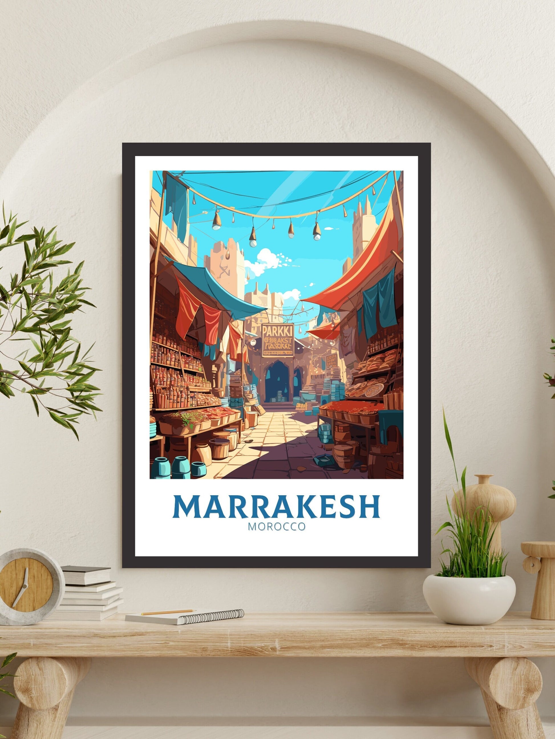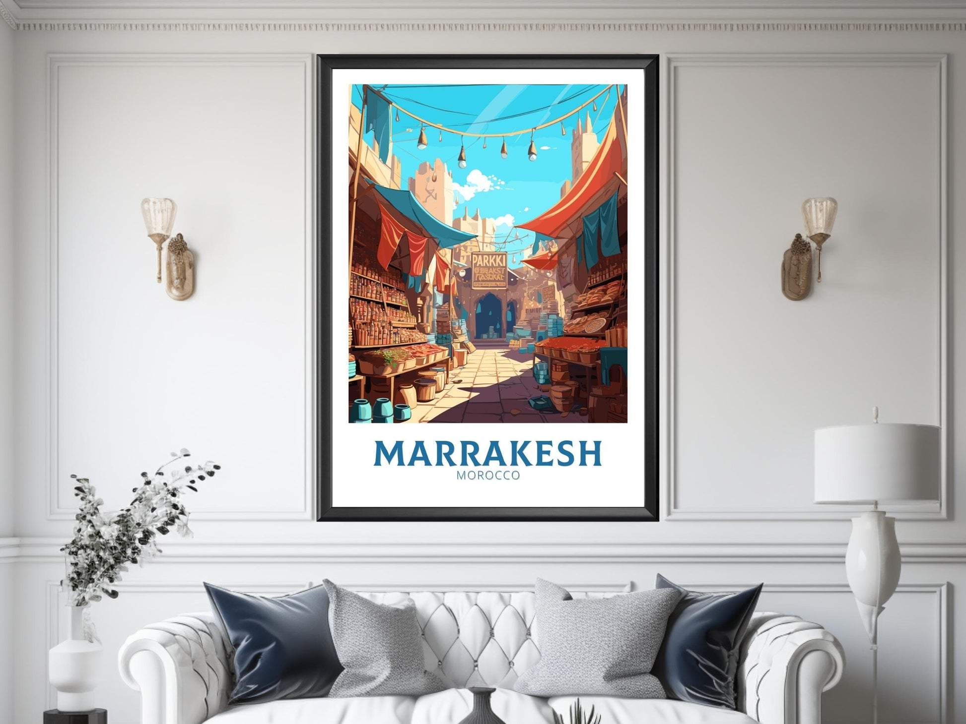 Notre affiche rétro Marrakech – Motif Médina marocaine – plonge votre intérieur dans le cœur vibrant de Marrakech, au Maroc, grâce à son design nostalgique. Parfaite pour les passionnés de voyages et d'art rétro, elle capture l'animation des souks et de la place Jemaa el-Fnaa dans un style intemporel. Que vous ayez flâné dans ses ruelles ou rêvé de sa magie, cette affiche rétro Marrakech sera un ajout magnifique à votre décoration.