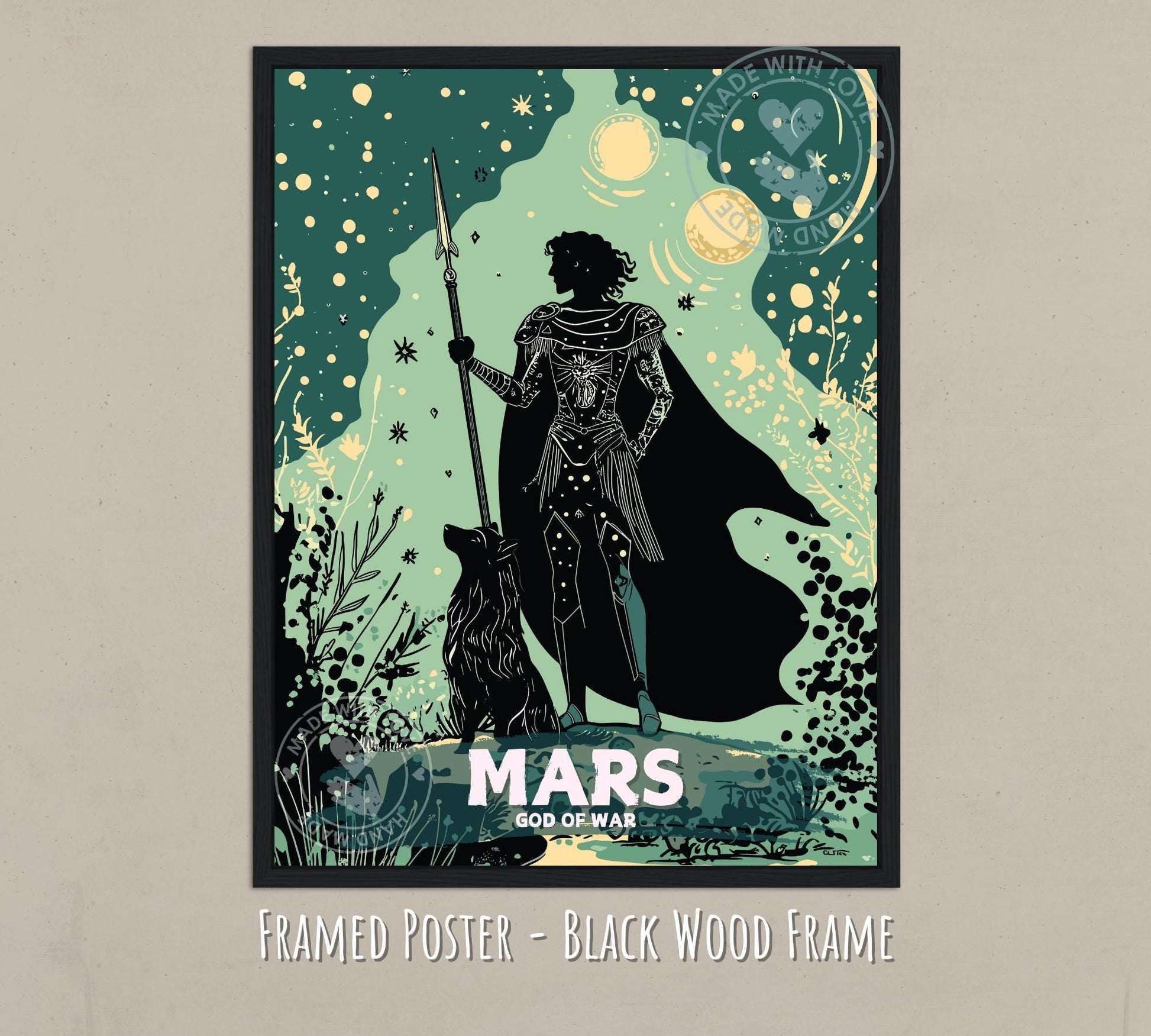 Célébrez l'esprit guerrier et la bravoure avec cette affiche du dieu Mars – Œuvre d'art mythologique romaine . Connu comme le dieu romain de la guerre et gardien de Rome, Mars symbolise la force, le courage et la détermination. Cette œuvre saisissante capture son essence guerrière, ce qui en fait l'œuvre idéale pour les amateurs de mythologie, d'histoire ancienne ou d'art symbolique.