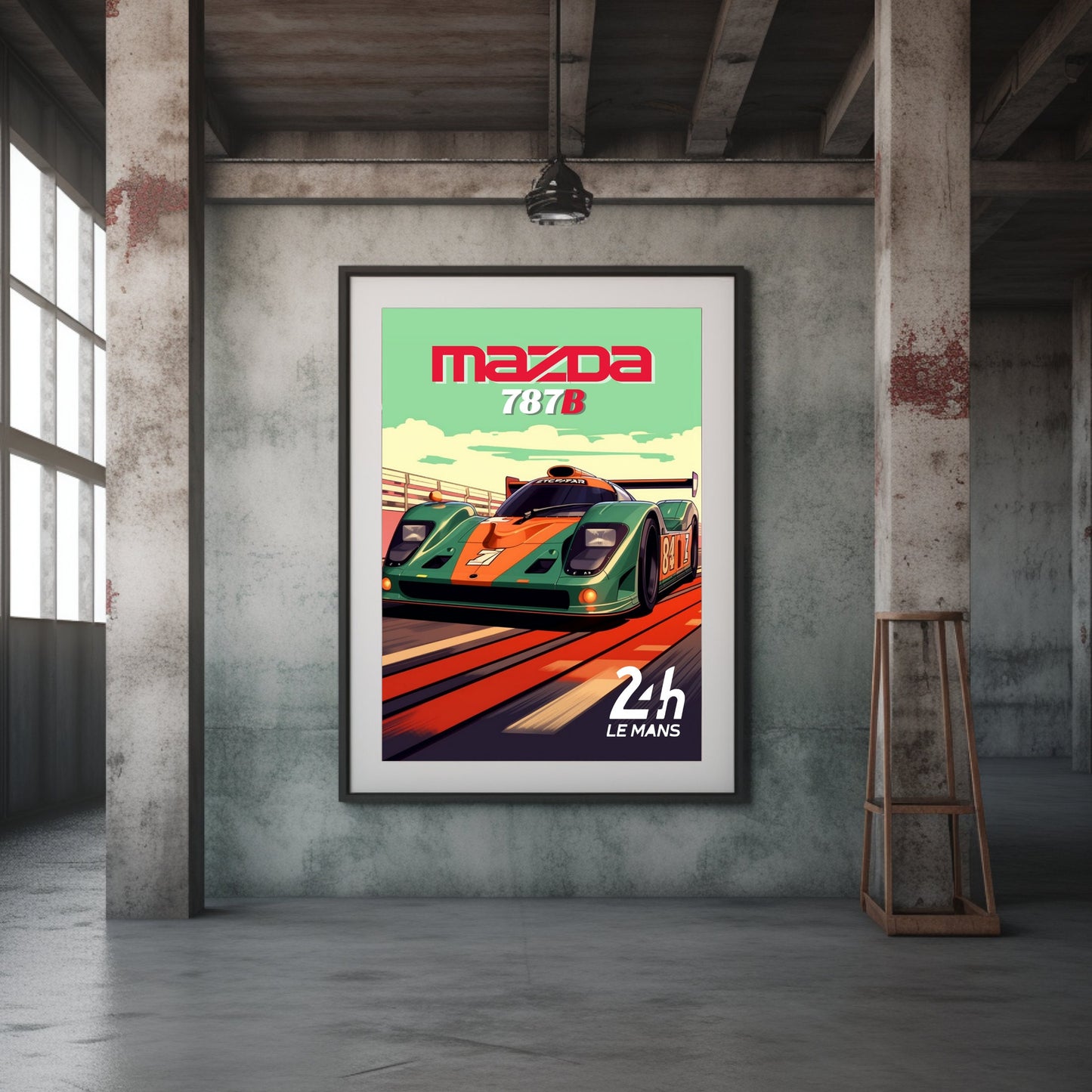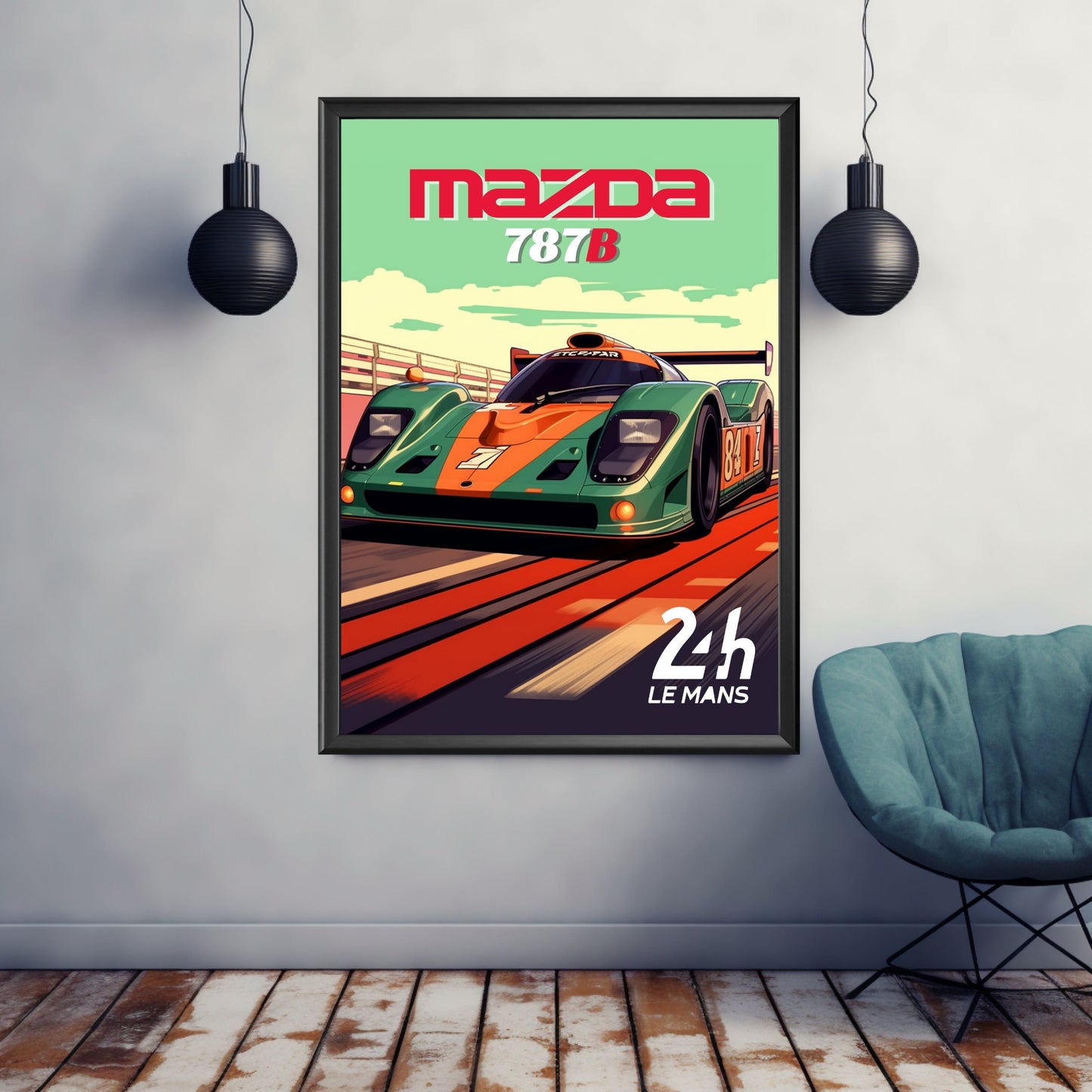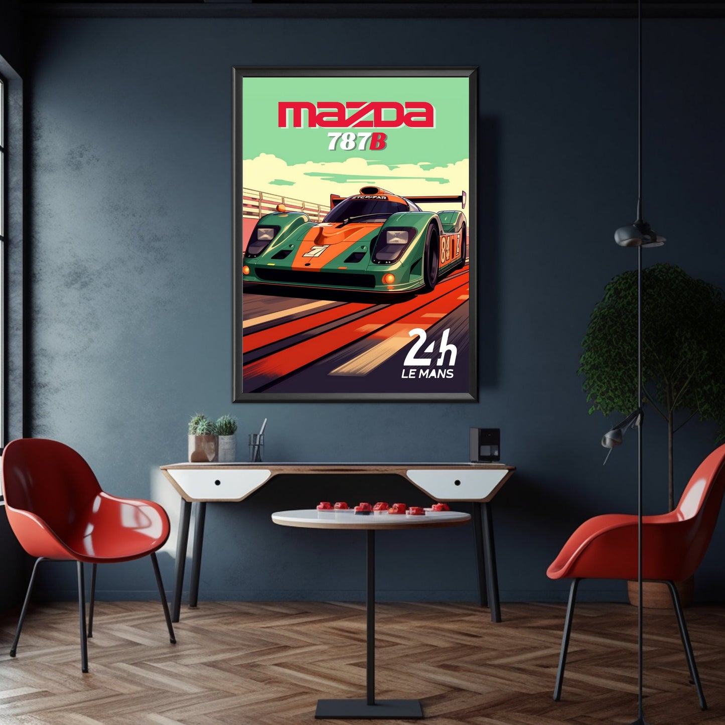 Affiche Mazda 787B – Décoration murale représentant une voiture de course Rotary du Mans pour les fans de sport automobile