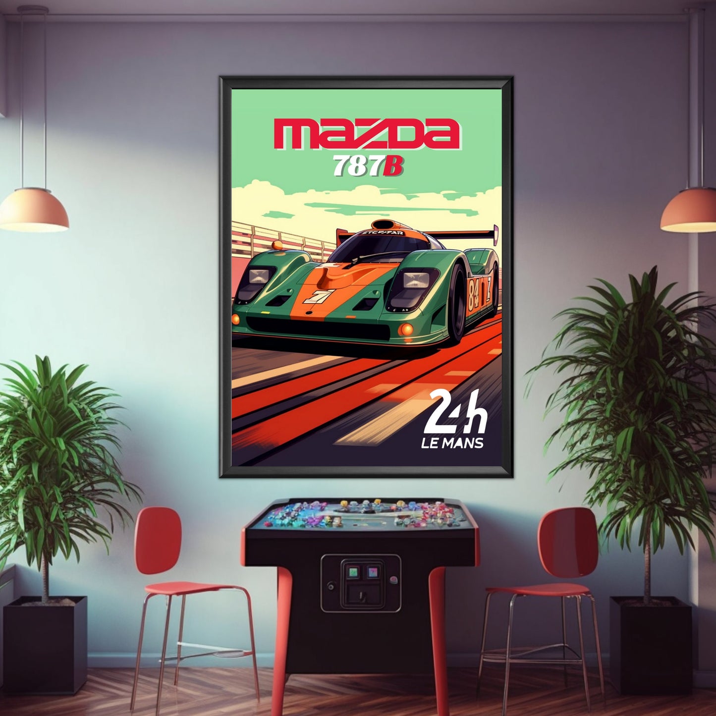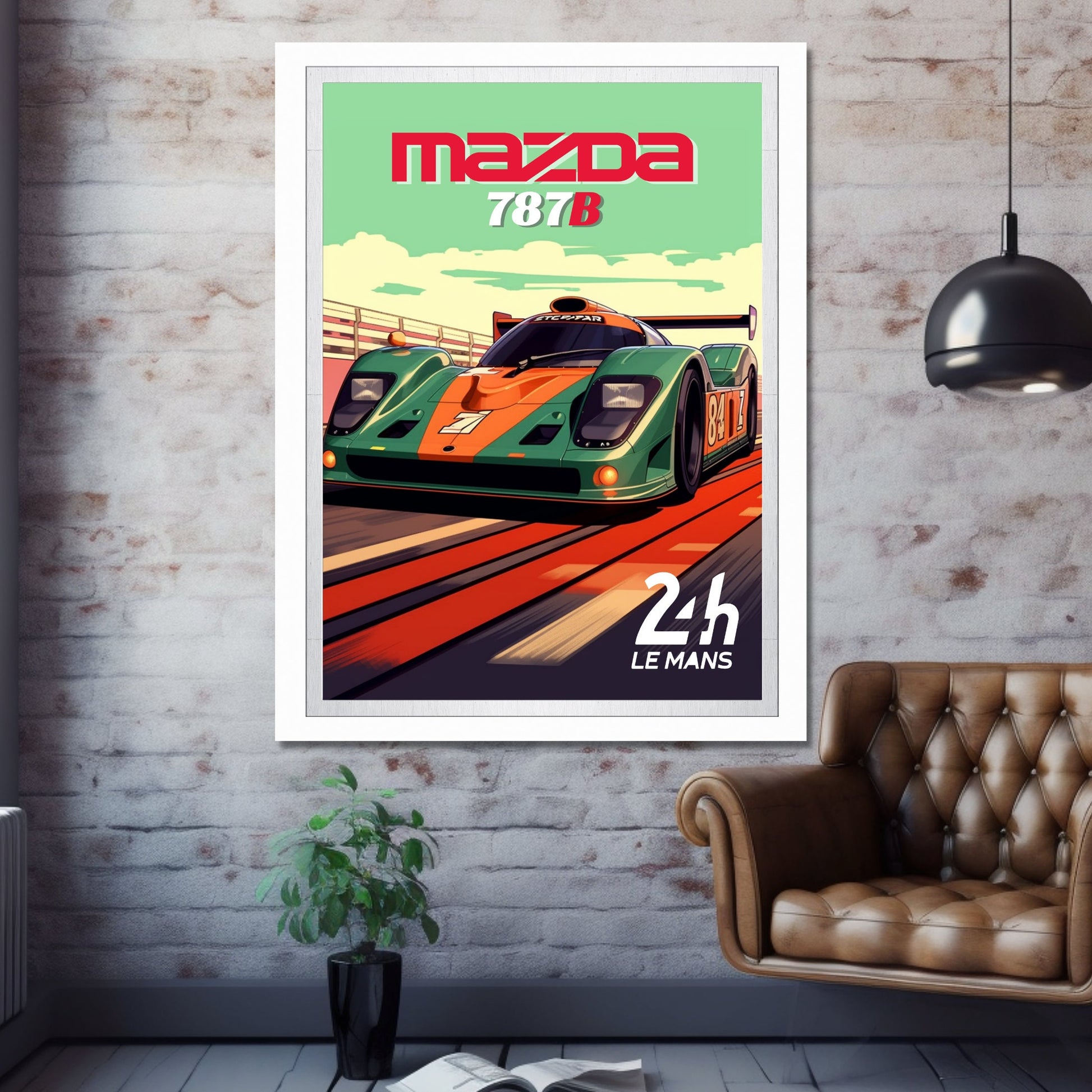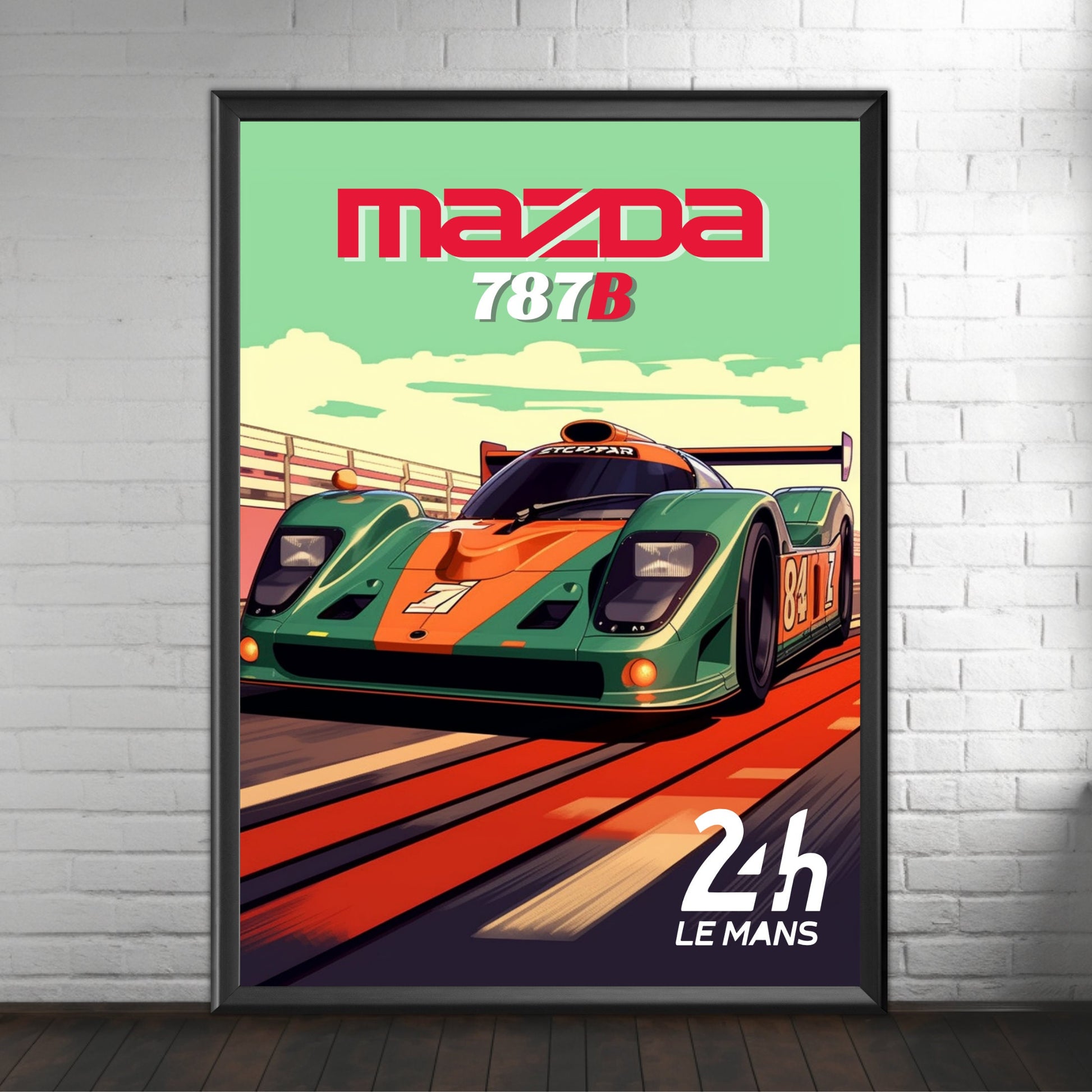 Affiche Mazda 787B – Décoration murale représentant une voiture de course Rotary du Mans pour les fans de sport automobile