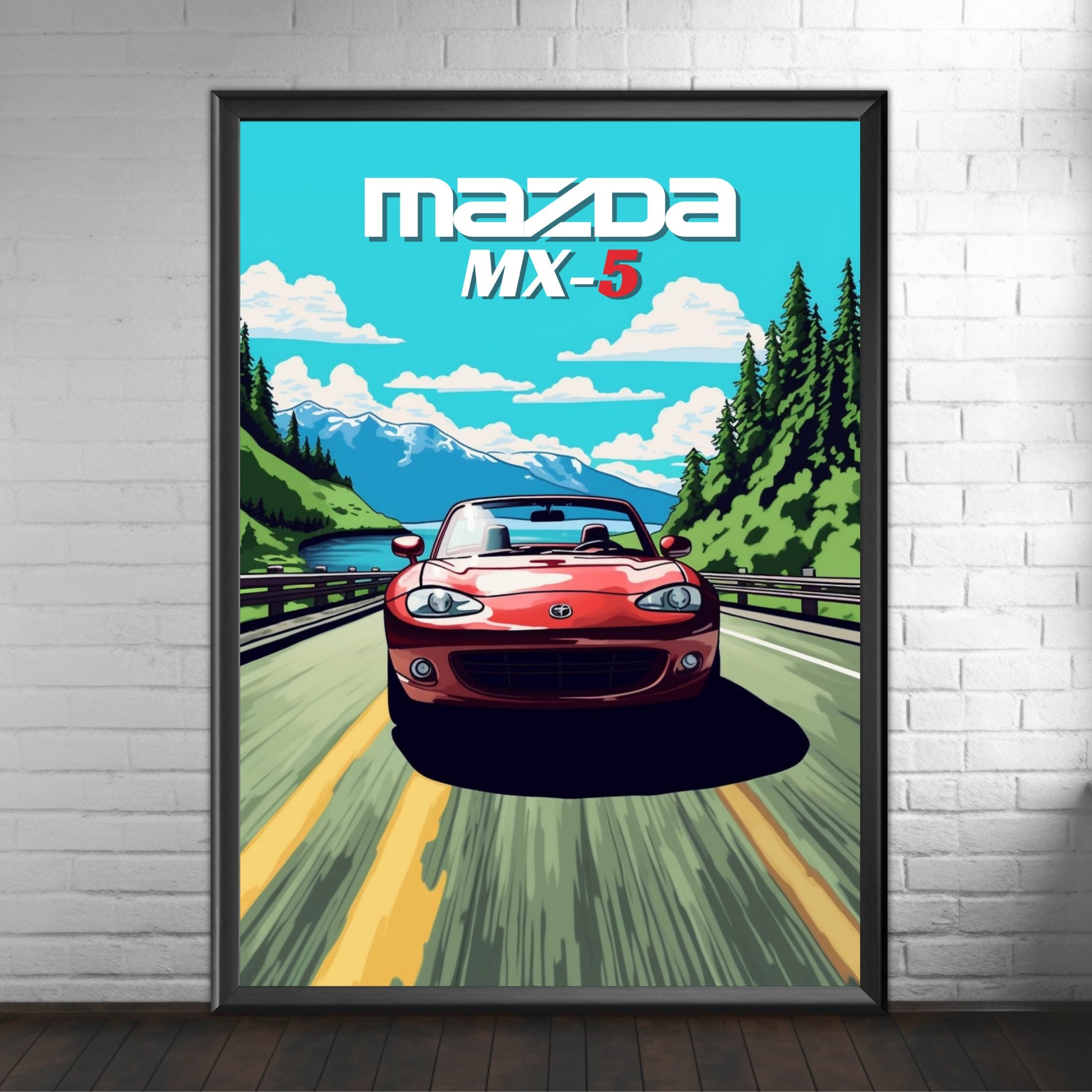 Imprimée sur des matériaux de haute qualité, la décoration murale Mazda MX-5 garantit des couleurs éclatantes et une durabilité exceptionnelle, ce qui en fait une pièce maîtresse de toute collection automobile. Parfaite pour les posters de voitures de sport japonaises , les impressions Mazda MX-5 et les souvenirs de roadsters , cette œuvre célèbre la MX-5 et son héritage, l'un des véhicules de performance les plus appréciés du Japon.