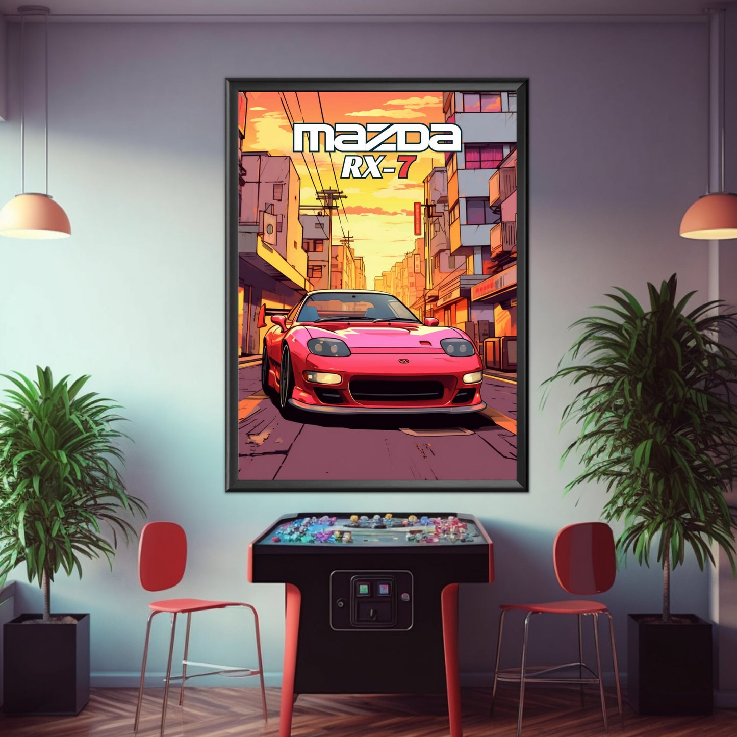 Affiche Mazda RX-7 – Décoration murale emblématique de la voiture de sport japonaise