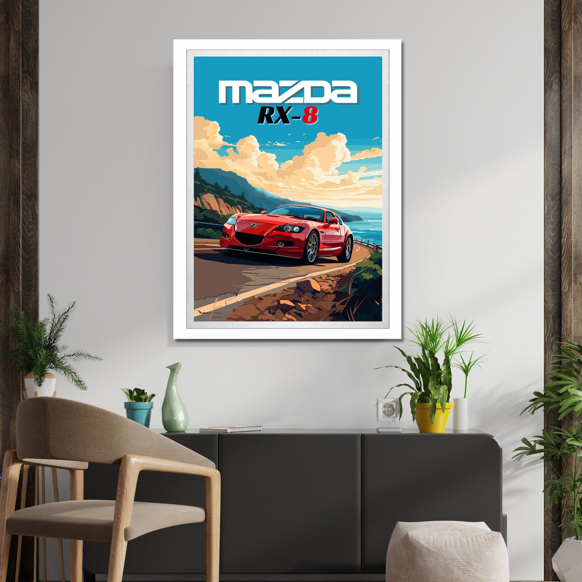 Mettez en valeur l'emblématique Mazda RX-8 avec cette affiche premium, célébrant l'une des voitures de sport japonaises les plus innovantes des années 2000. Idéale pour les passionnés de Mazda , les collectionneurs et les passionnés de véhicules japonais hautes performances , cette œuvre d'art murale illustre le design élégant du moteur rotatif, les courbes sportives et la configuration distinctive du coupé quatre portes de la RX-8. Idéale comme décoration murale de garage , pour le bureau ou comme cadeau unique pour les passionnés d'automobile , cette affiche Mazda RX-8 apporte style, performance et passion automobile à n'importe quel espace.