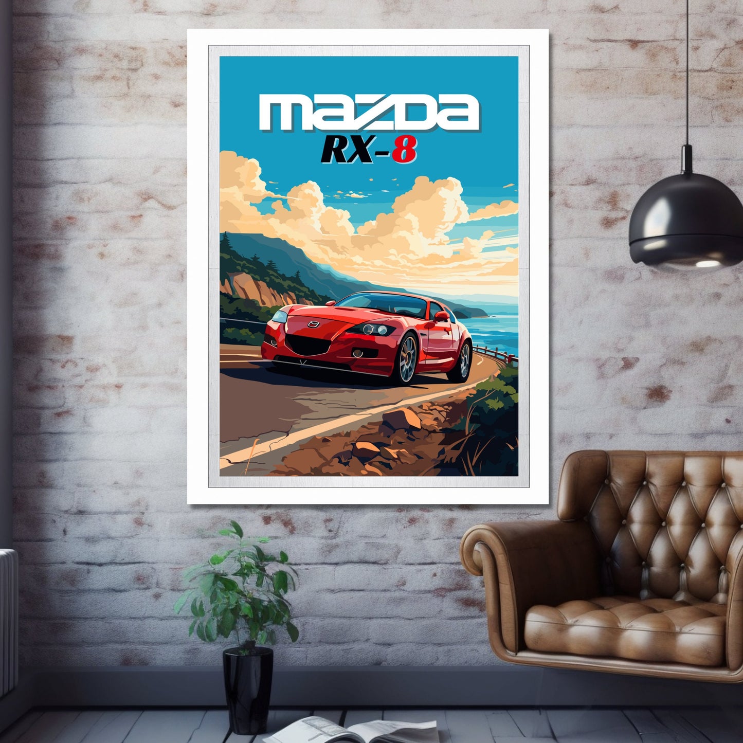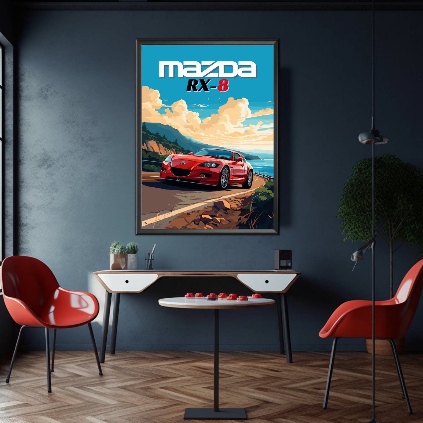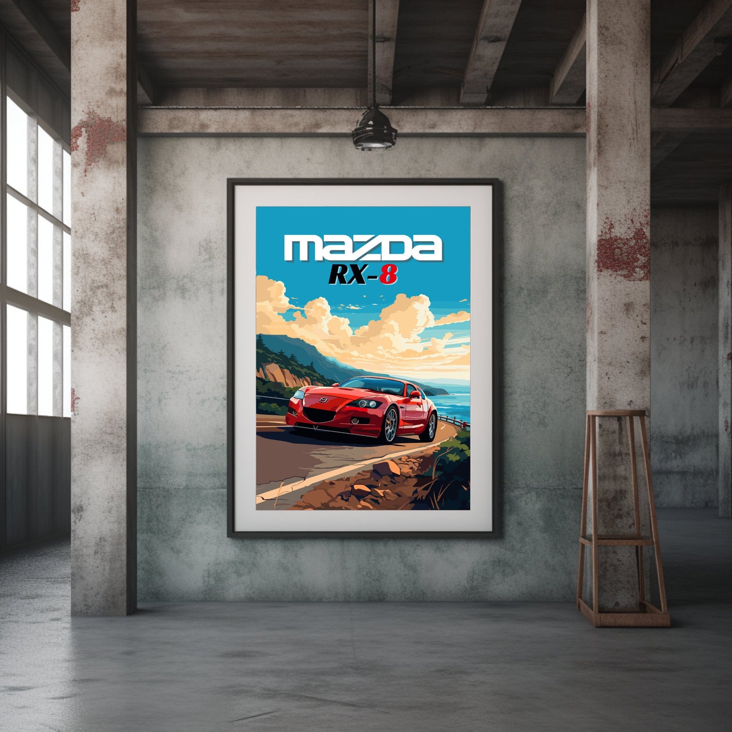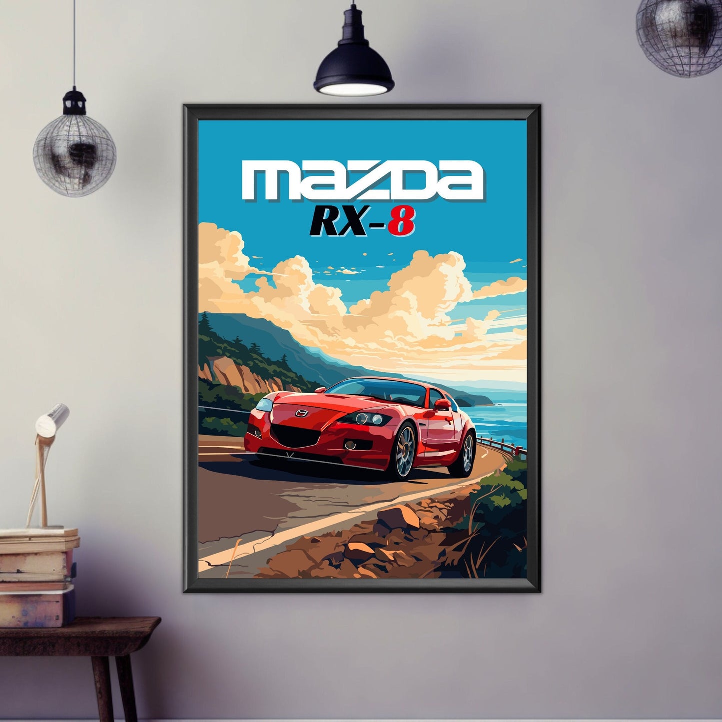 Imprimée sur des matériaux de haute qualité, la décoration murale Mazda RX-8 garantit des couleurs éclatantes et une durabilité exceptionnelle, ce qui en fait une pièce maîtresse de toute collection automobile. Parfaite pour les posters de voitures de sport japonaises , les impressions Mazda RX-8 et les souvenirs de voitures JDM des années 2000 , cette œuvre célèbre la RX-8 et son héritage, l'un des véhicules de performance les plus admirés du Japon des années 2000.