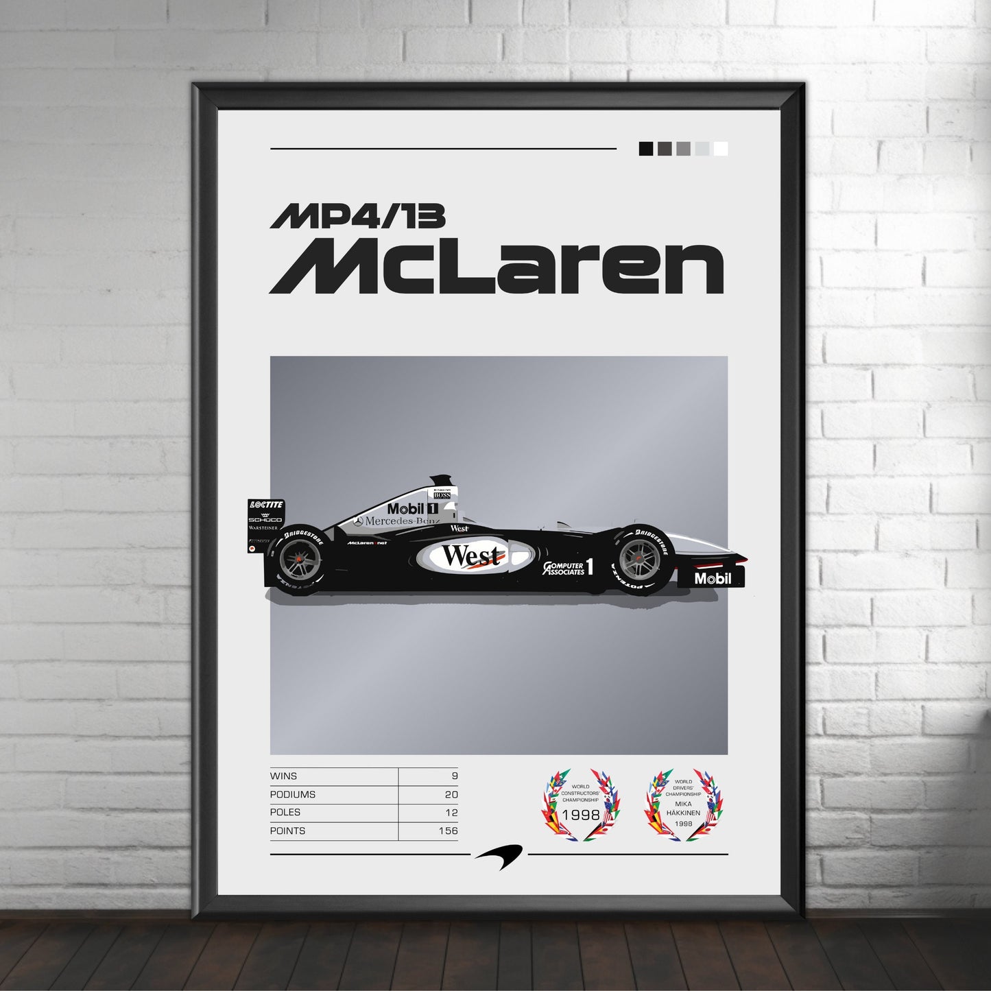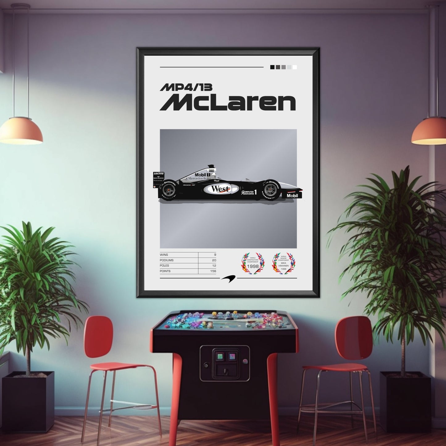 Affiche McLaren MP4/13 F1 – La voiture championne de Häkkinen en 1998