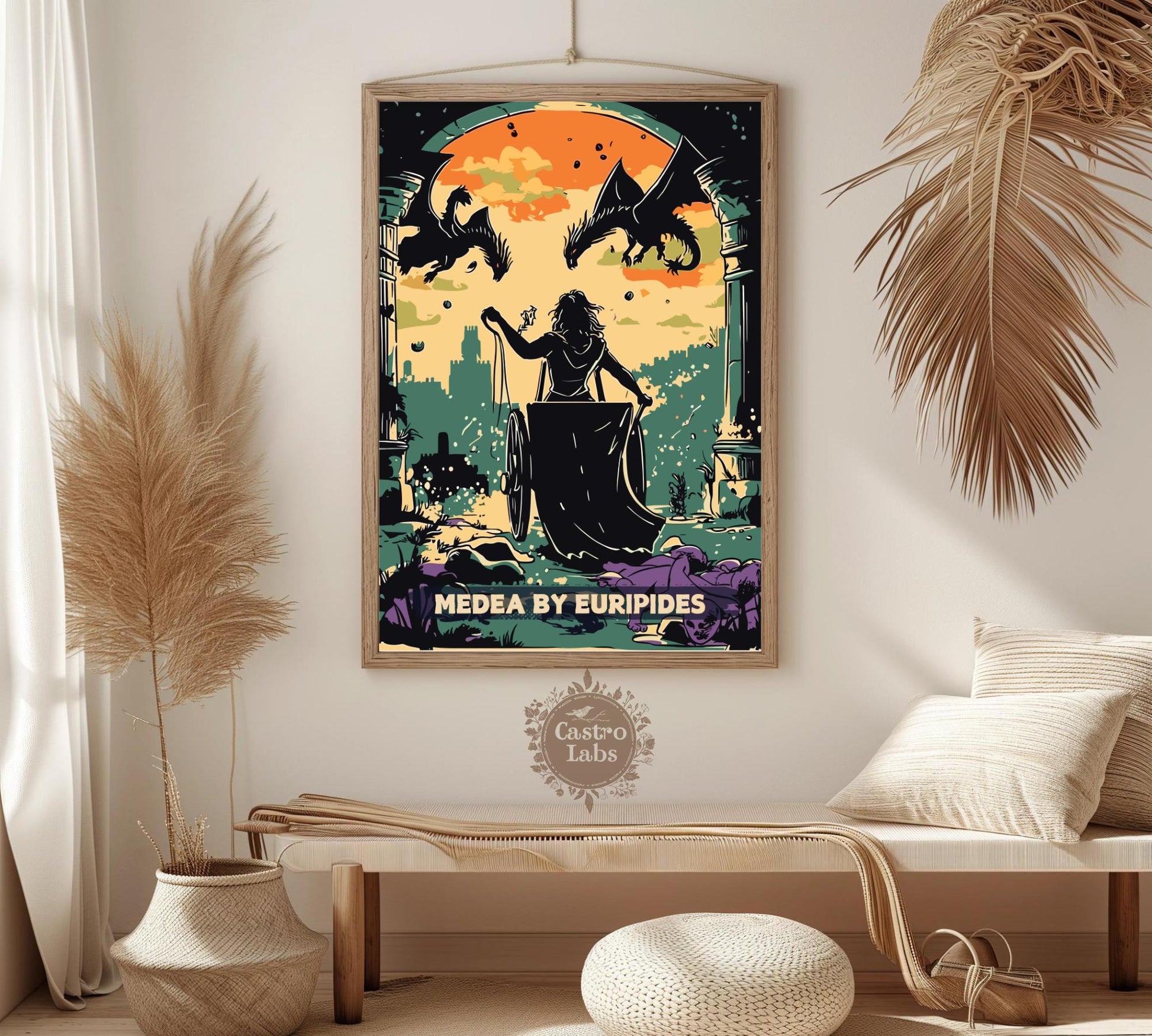 Imprimée sur des matériaux haut de gamme, l' affiche Médée d'Euripide met en valeur ses couleurs vives et ses détails complexes, soulignant la profondeur émotionnelle et la signification mythologique de ce personnage emblématique. Idéale pour la décoration intérieure, les bureaux ou les collections d'inspiration mythologique, elle célèbre l'une des héroïnes les plus puissantes de la Grèce antique.