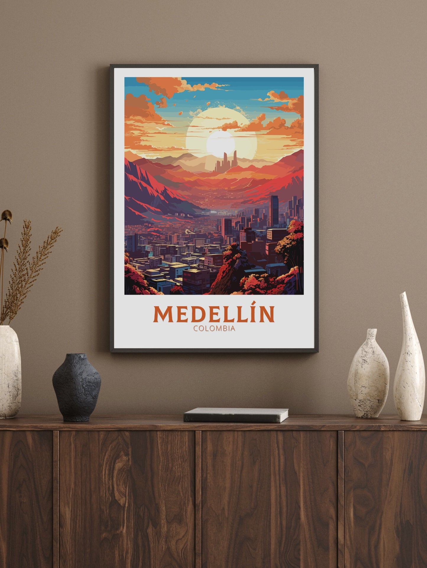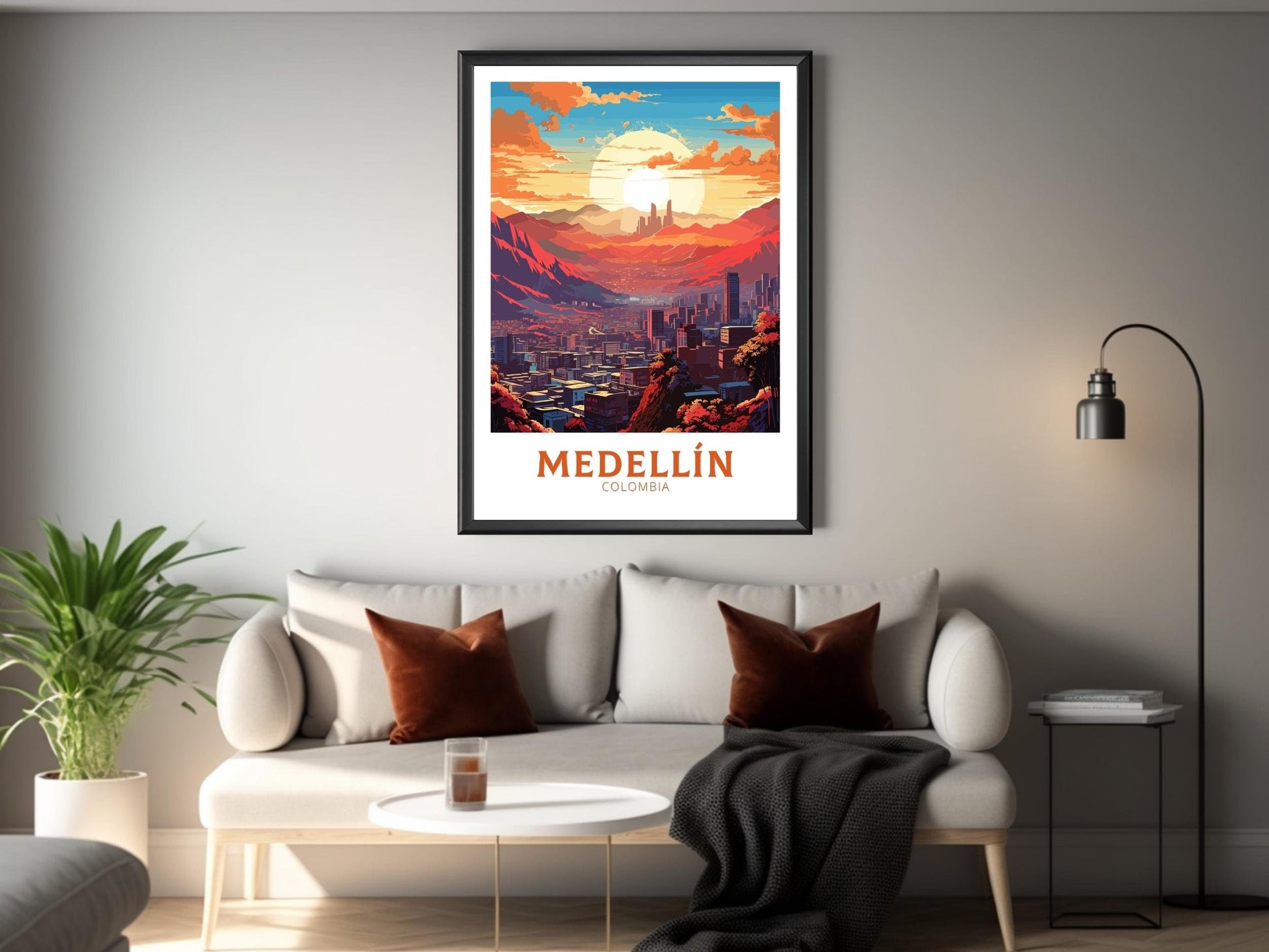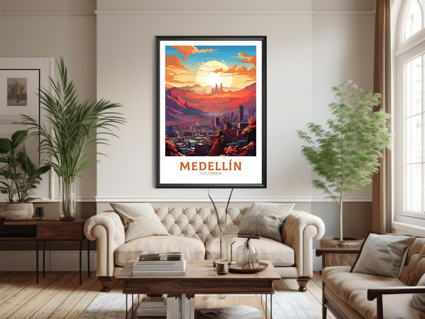 Transformez votre intérieur en un havre de paix et d'énergie grâce à cette œuvre captivante. Idéale pour un salon, un bureau ou un espace inspiré du voyage, elle s'associe parfaitement à d'autres œuvres d'art rétro. Plus qu'un simple objet de décoration, cette affiche rétro est un voyage au cœur de la renaissance culturelle de Medellin.
