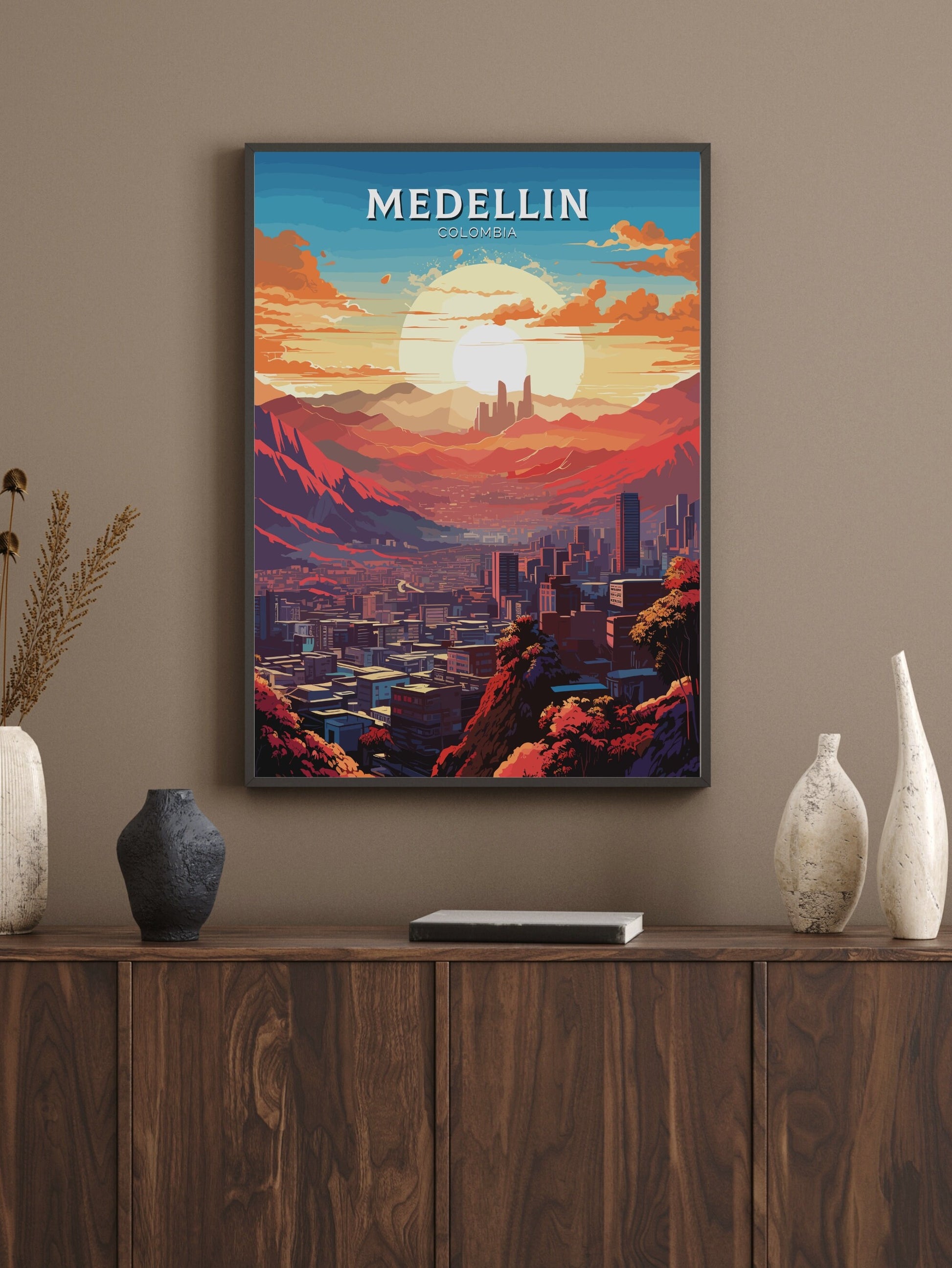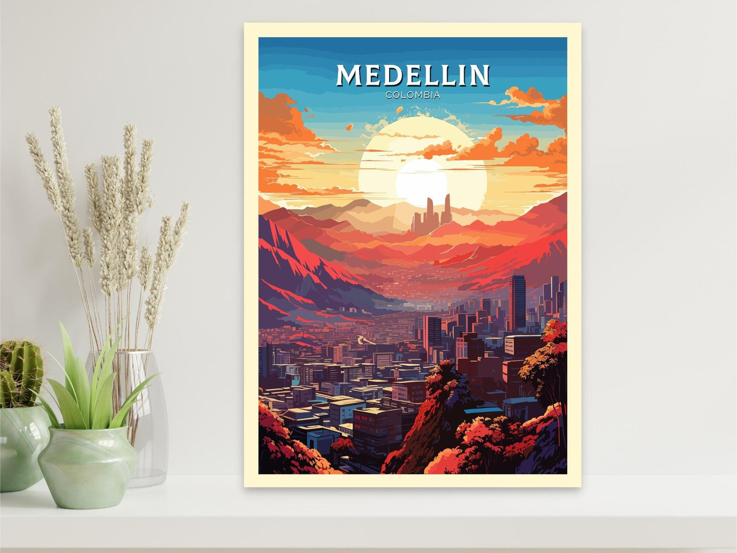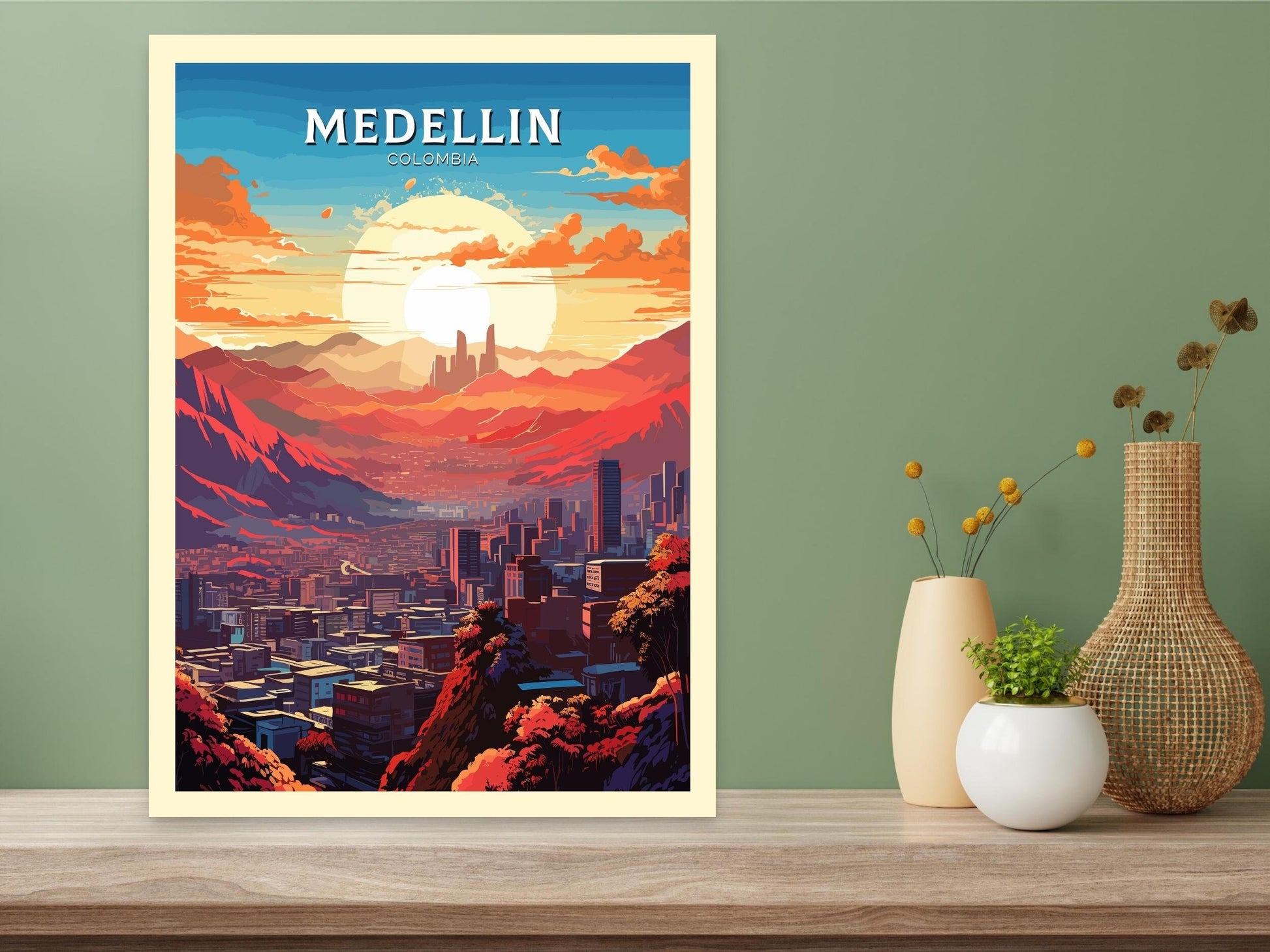 Notre affiche de voyage de Medellin – Art rétro colombien plonge votre intérieur dans le charme vibrant de Medellin, en Colombie, grâce à son design nostalgique. Idéale pour les passionnés de voyages et d'art rétro, elle capture les vallées luxuriantes de la ville et la colorée Comuna 13 avec un style intemporel. Que vous ayez exploré ses rues ou rêvé de son ambiance, cette affiche rétro de Medellin sera un ajout magnifique à votre décoration.