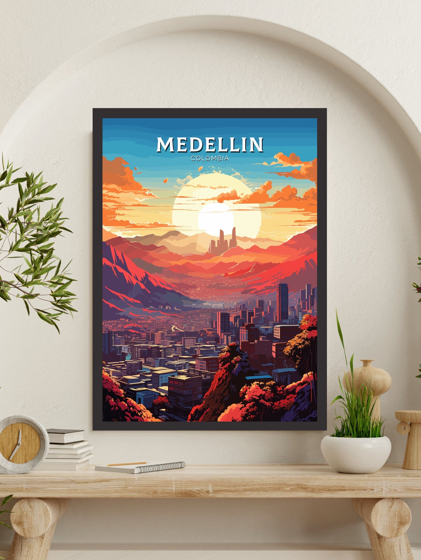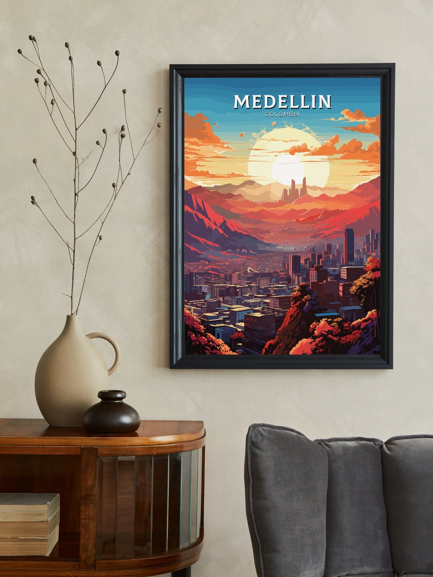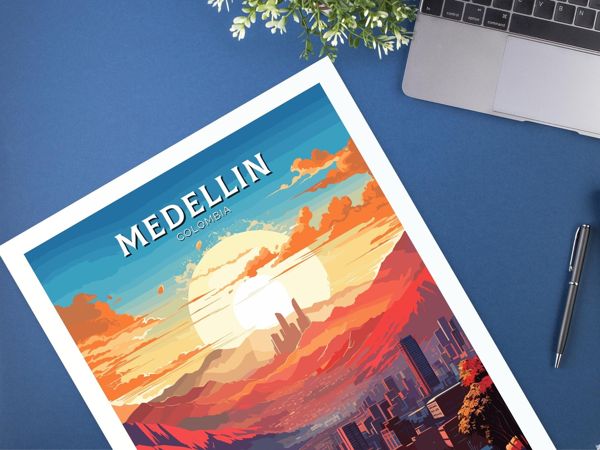 Notre affiche de voyage de Medellin – Art rétro colombien plonge votre intérieur dans le charme vibrant de Medellin, en Colombie, grâce à son design nostalgique. Idéale pour les passionnés de voyages et d'art rétro, elle capture les vallées luxuriantes de la ville et la colorée Comuna 13 avec un style intemporel. Que vous ayez exploré ses rues ou rêvé de son ambiance, cette affiche rétro de Medellin sera un ajout magnifique à votre décoration.