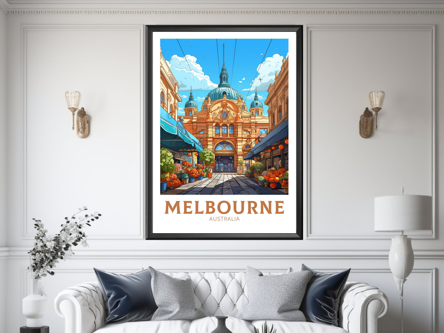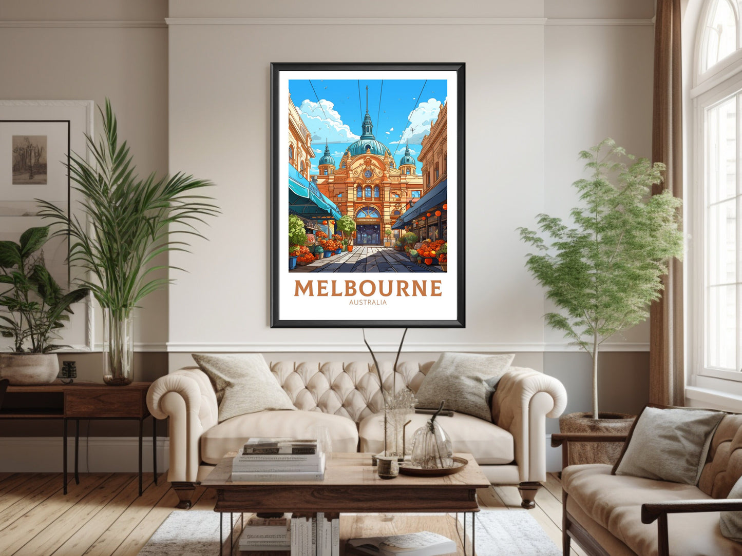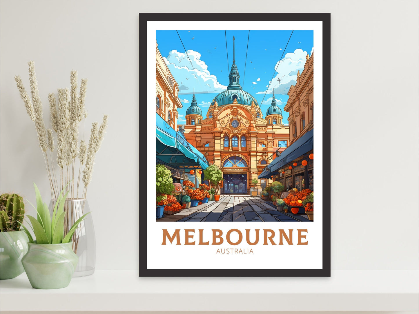 Célébrez le charme et la créativité uniques de Melbourne avec cette impression d'art de voyage magnifiquement conçue.