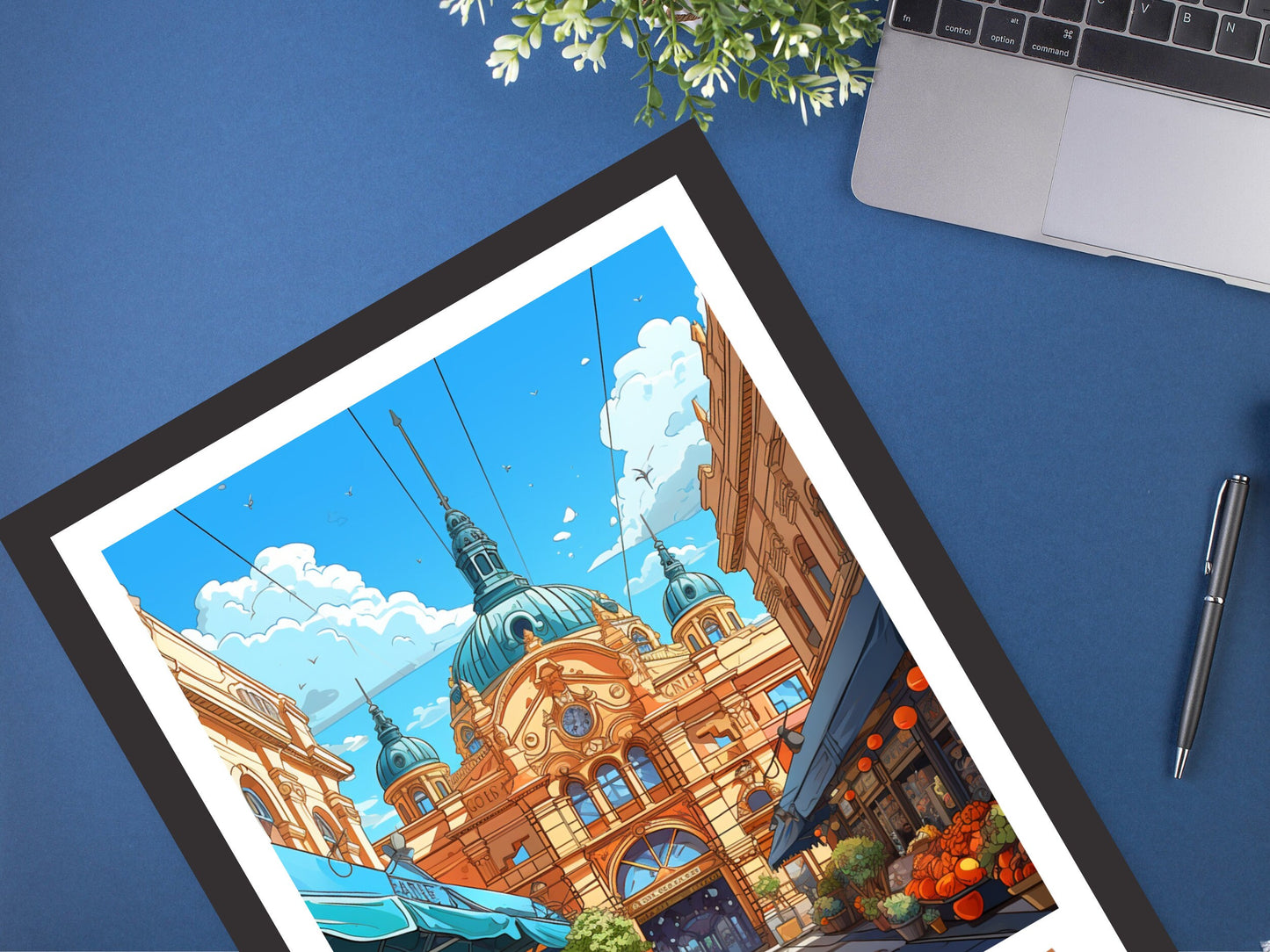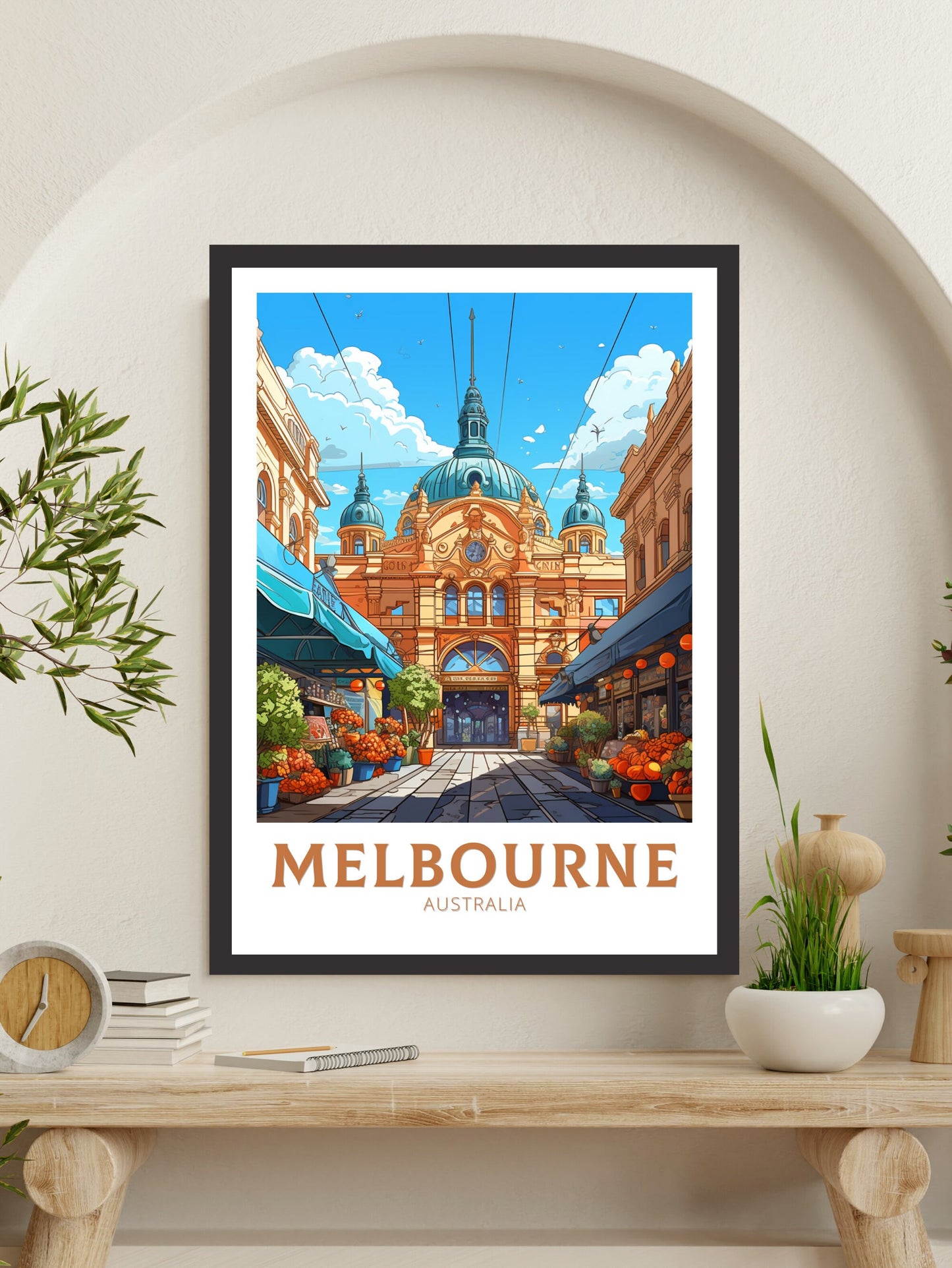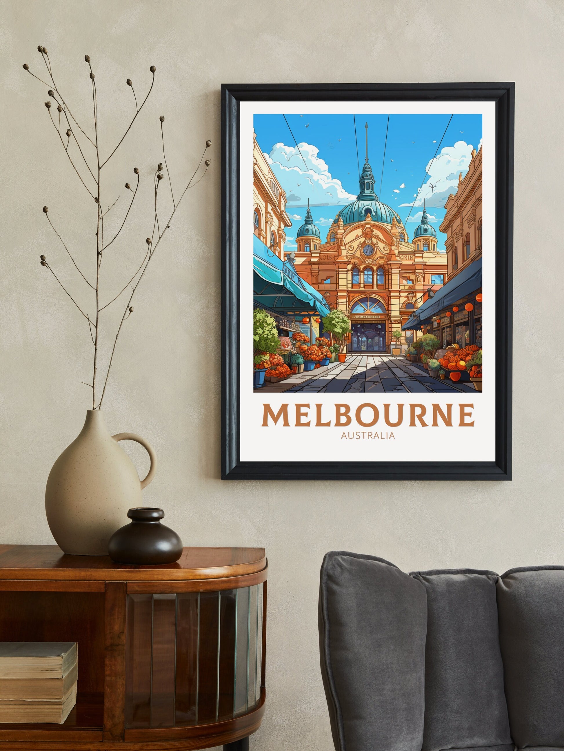 Célébrez le charme et la créativité uniques de Melbourne avec cette impression d'art de voyage magnifiquement conçue.