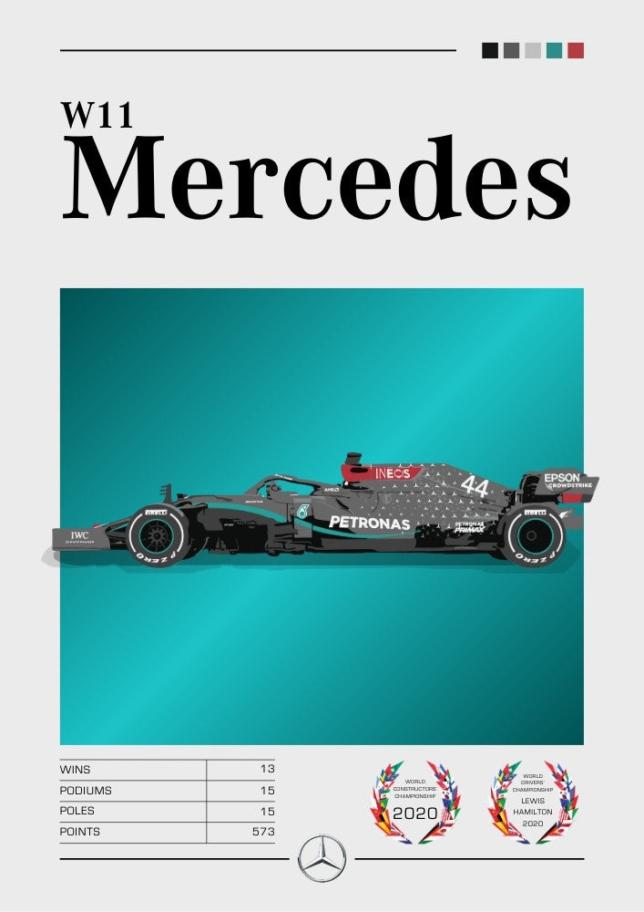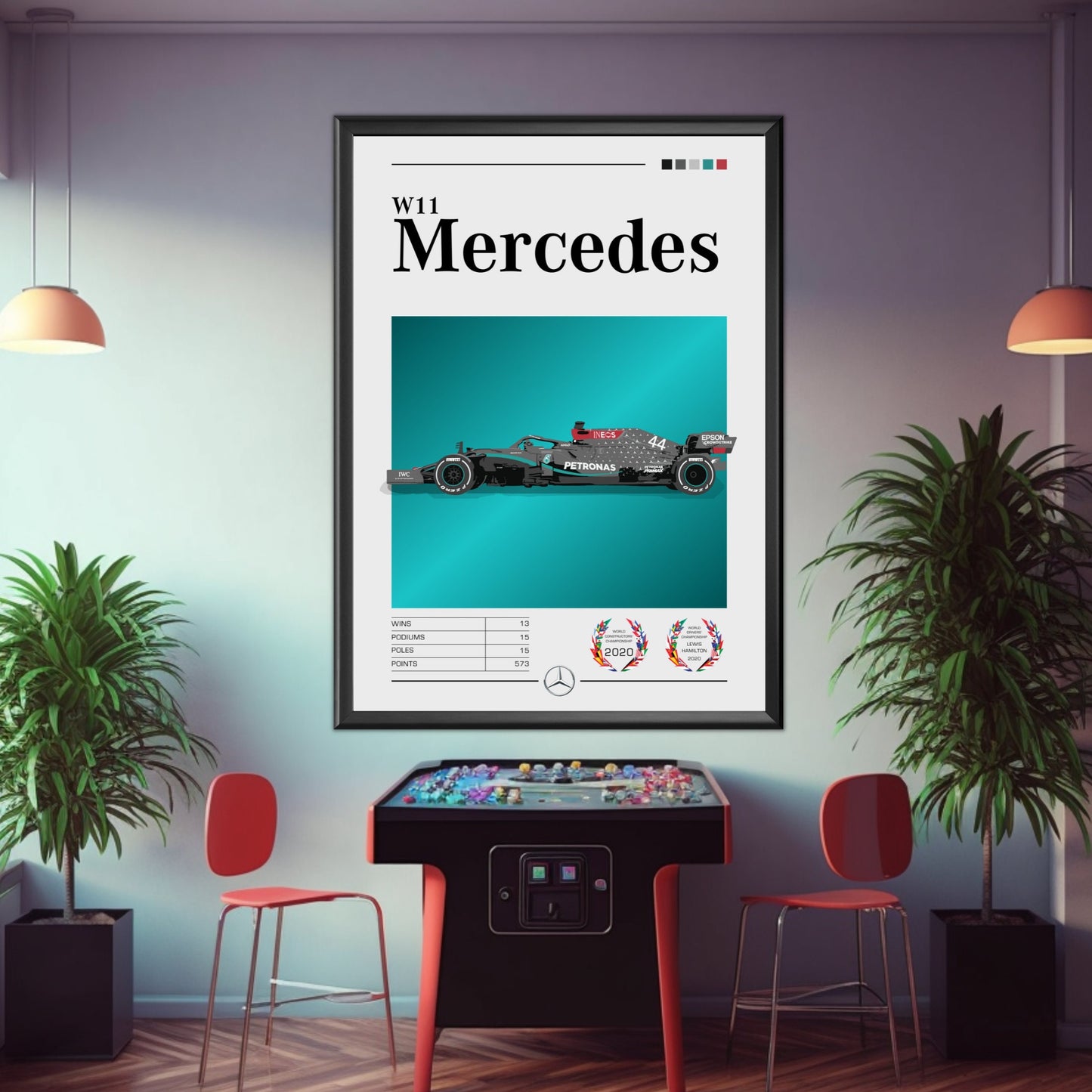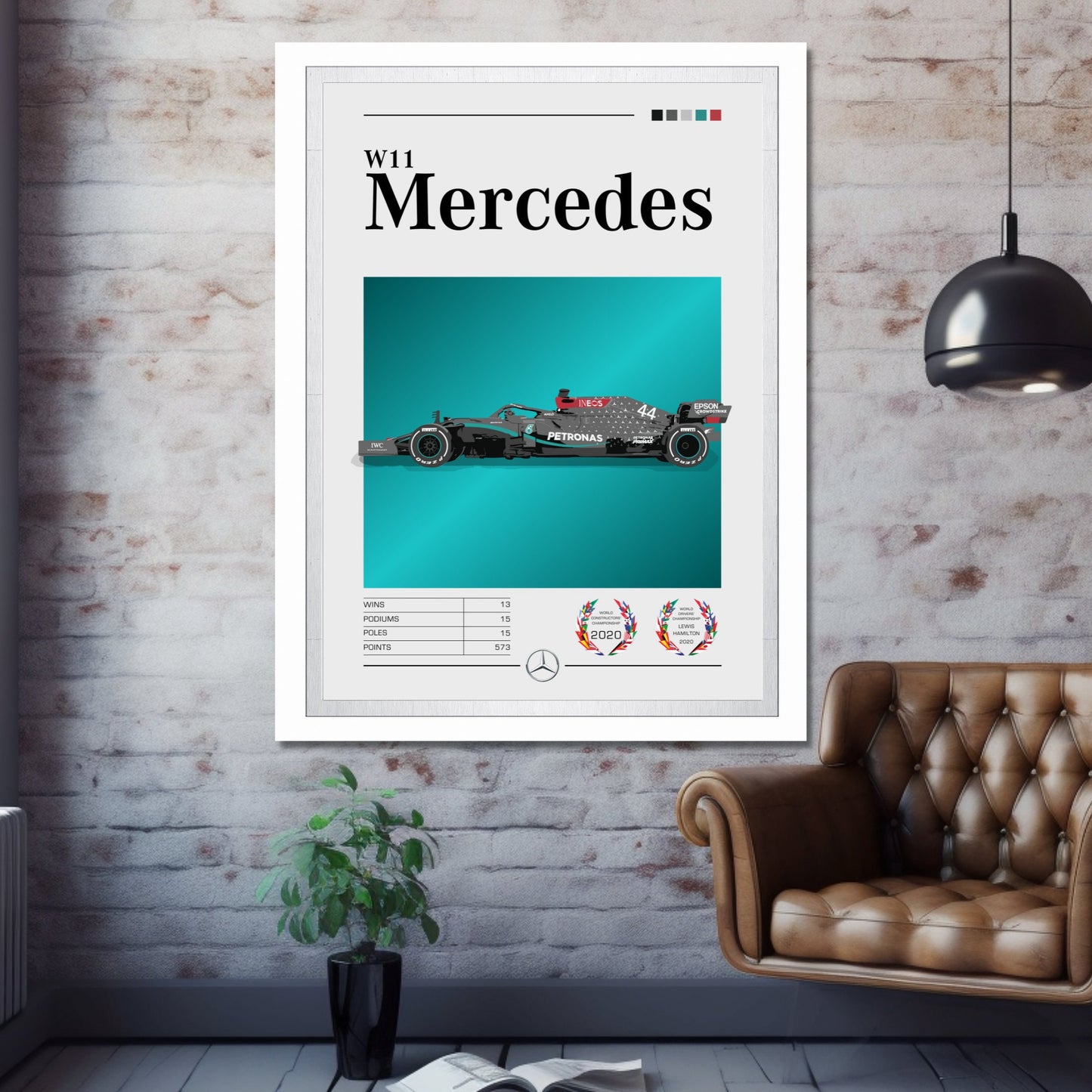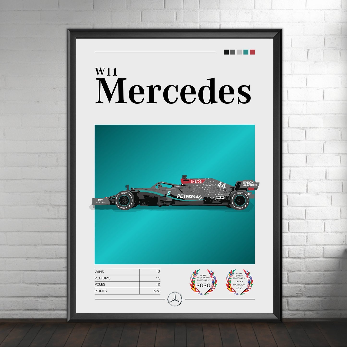 Affiche Mercedes-AMG W11 F1 – La voiture championne d'Hamilton en 2020