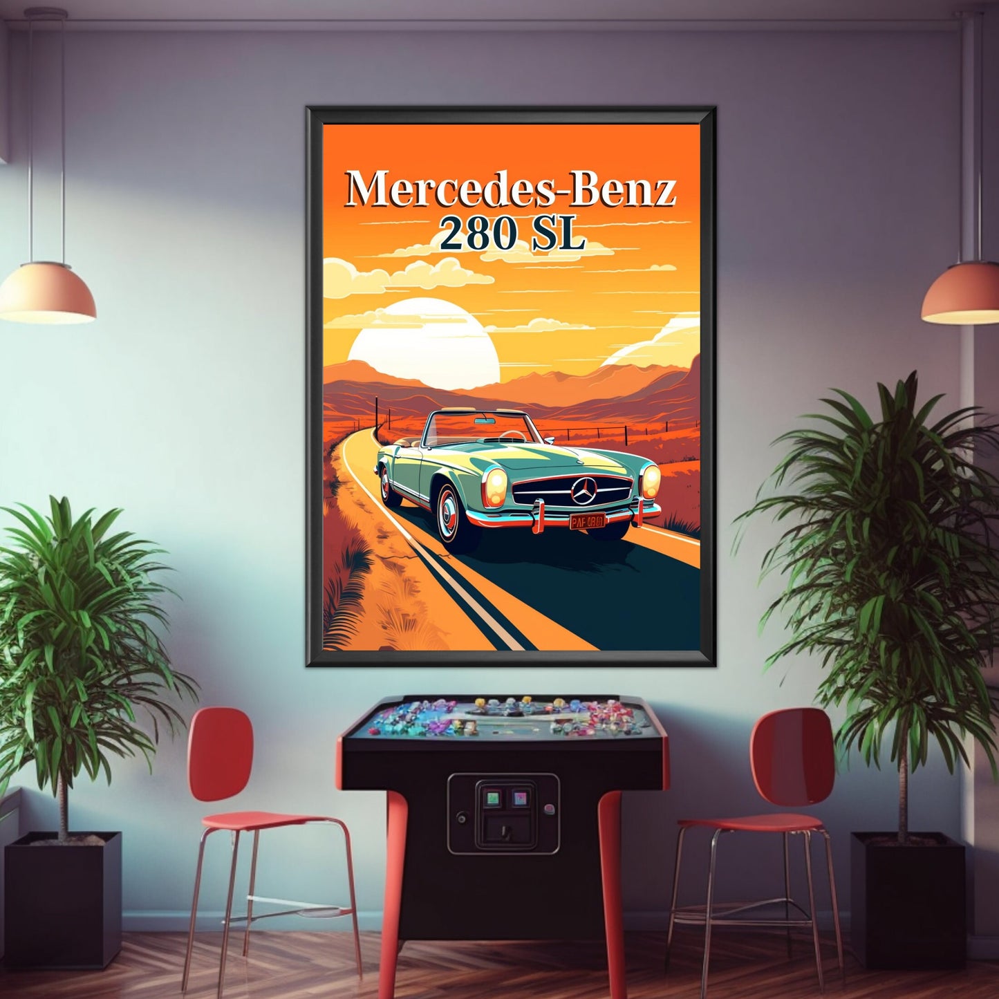 Affiche Mercedes-Benz 280SL – Décoration murale classique du roadster allemand