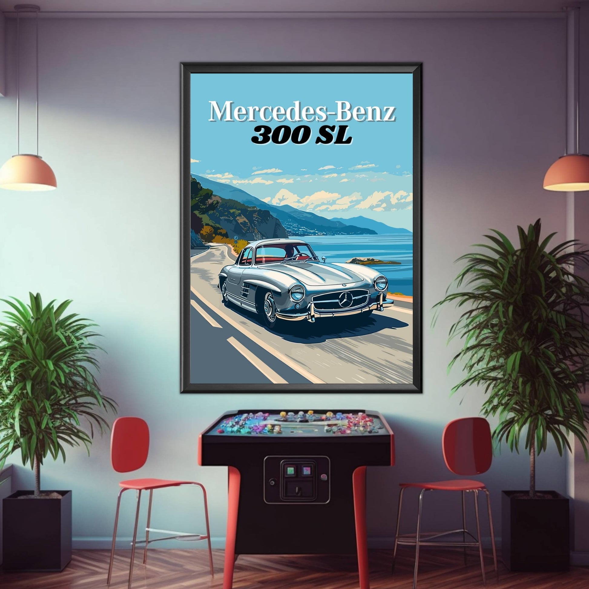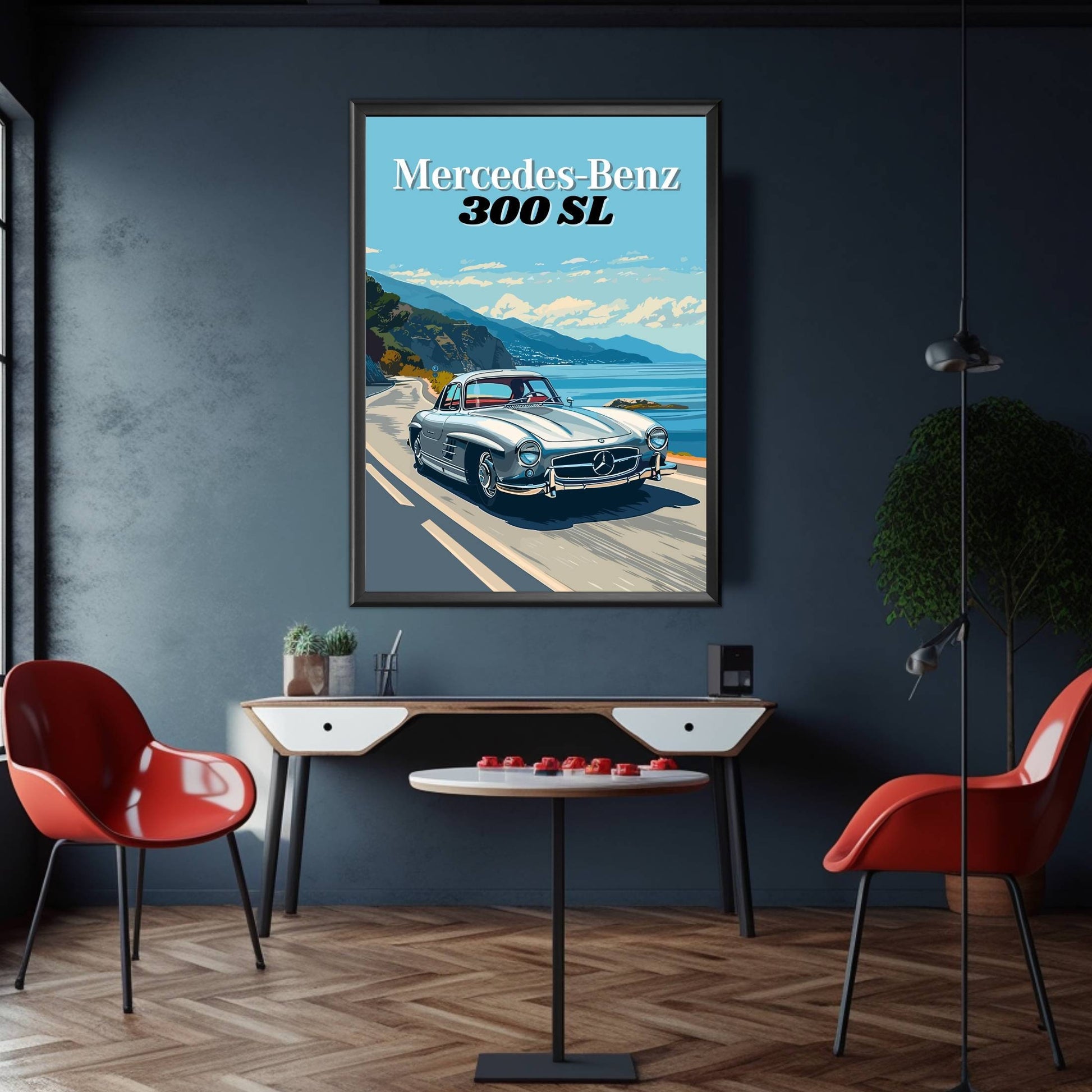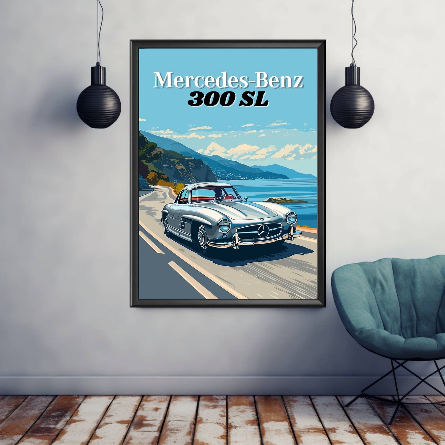 Affiche Mercedes-Benz 300SL – Décoration murale représentant une voiture de sport allemande classique