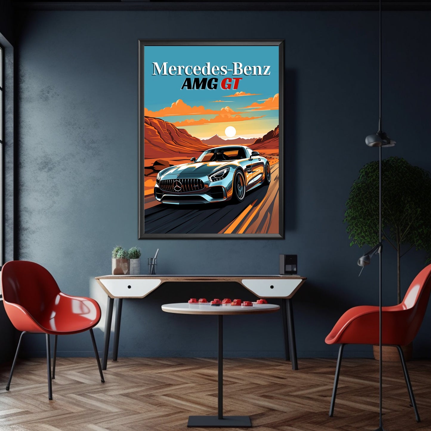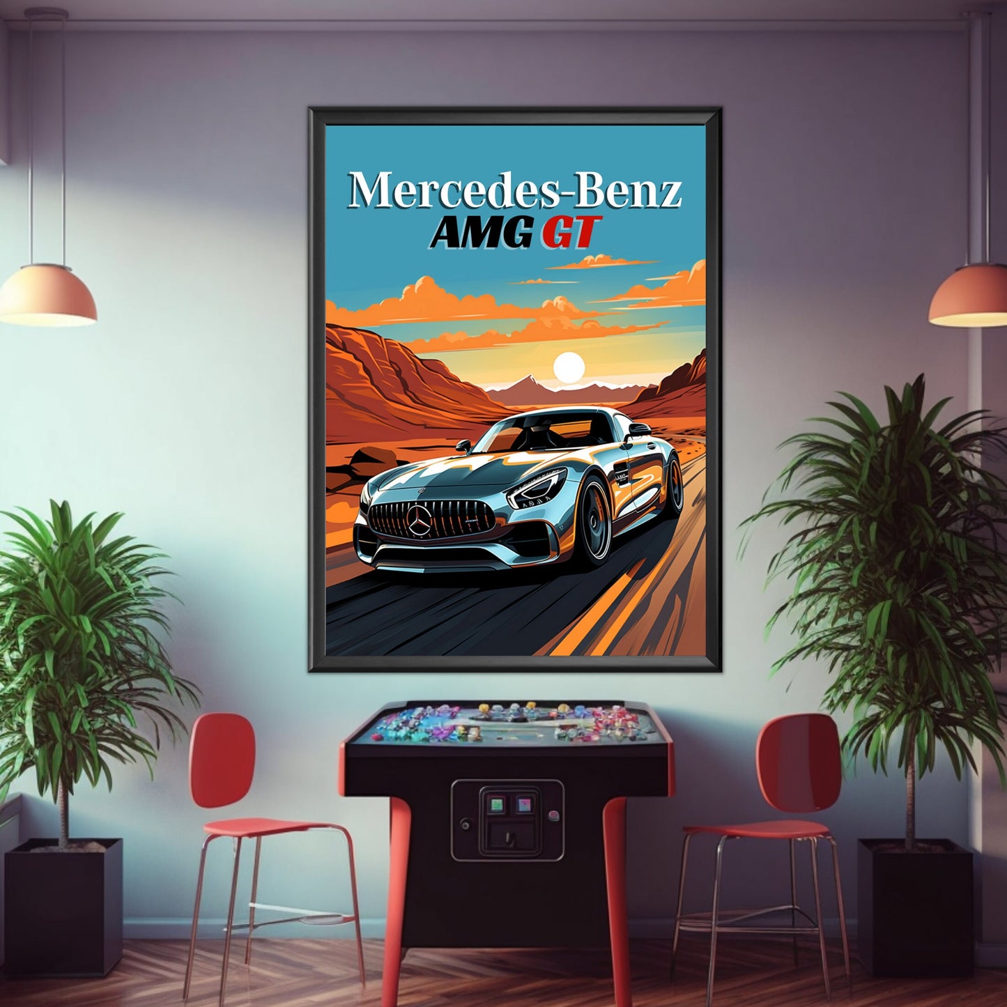 Affiche Mercedes-Benz AMG GT – Décoration murale moderne de supercar allemande