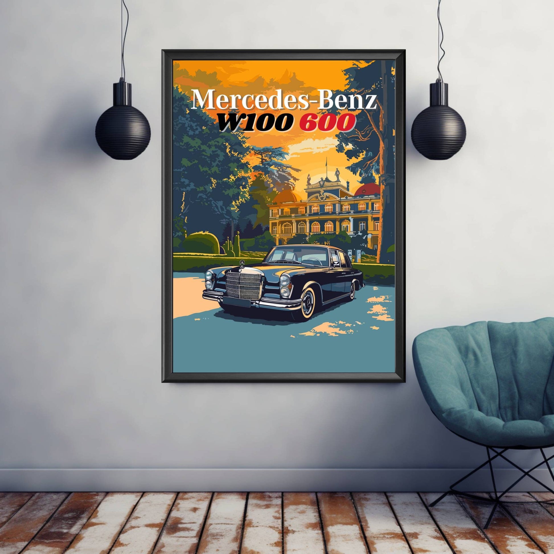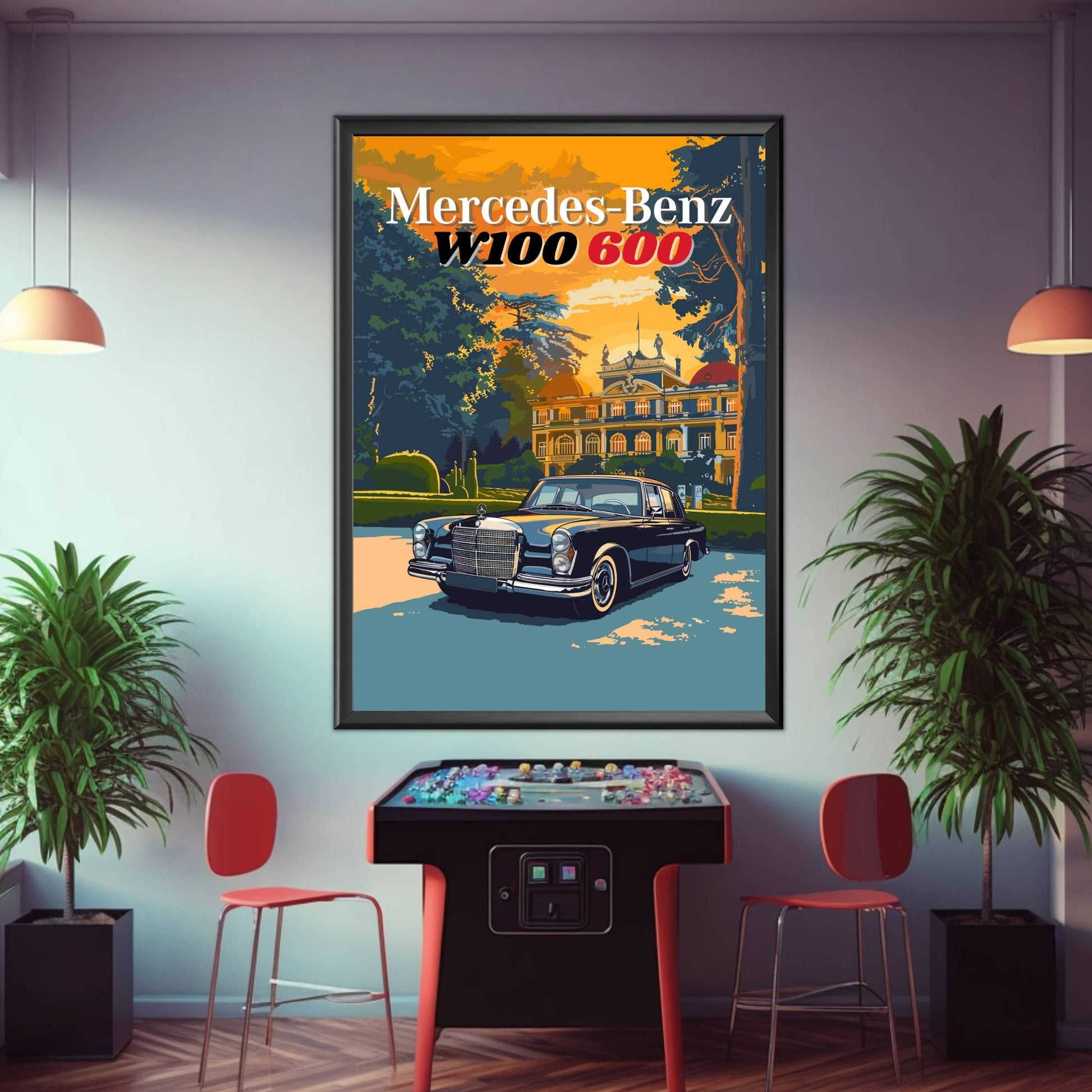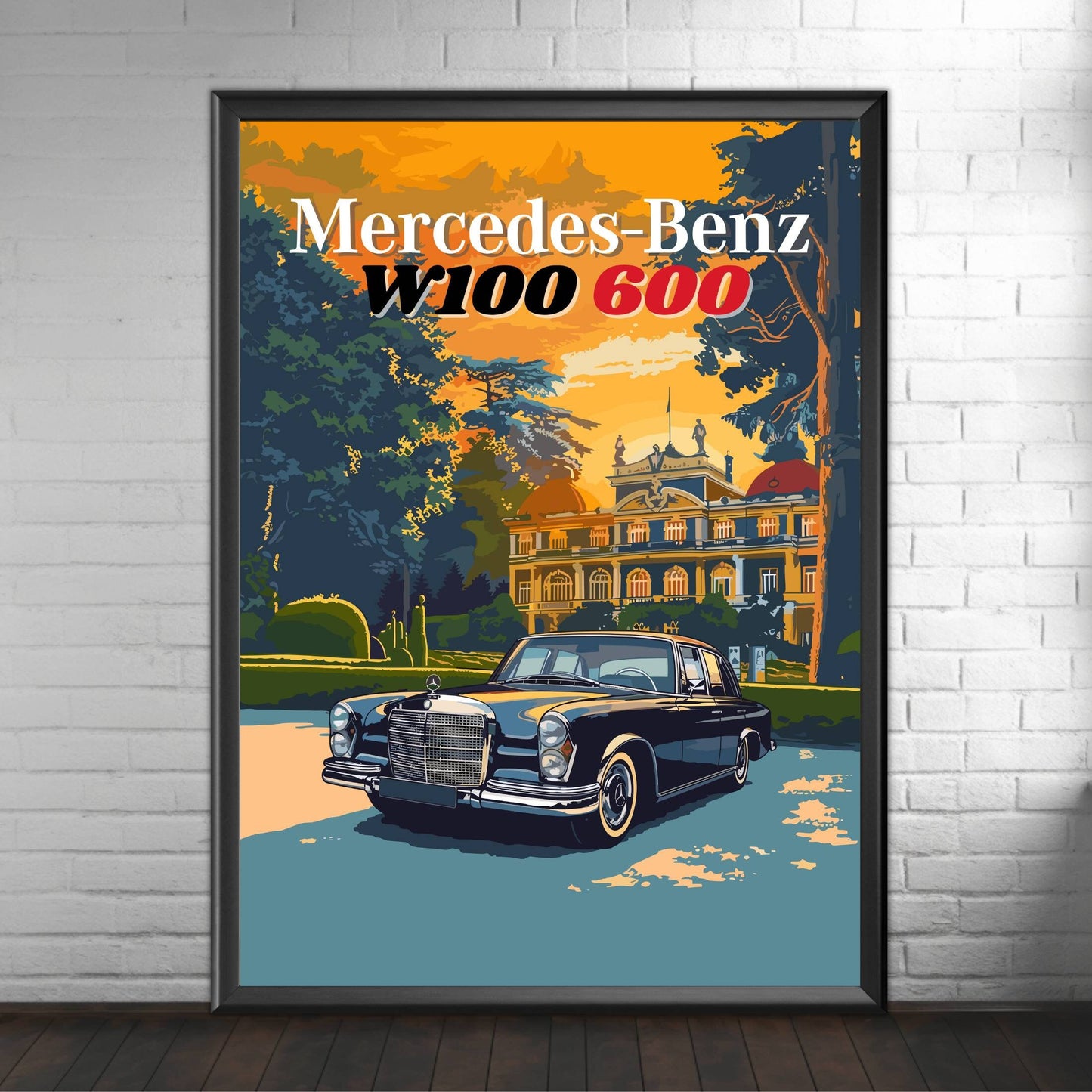 Affiche Mercedes-Benz W100 600 – Décoration murale de voiture de luxe allemande classique