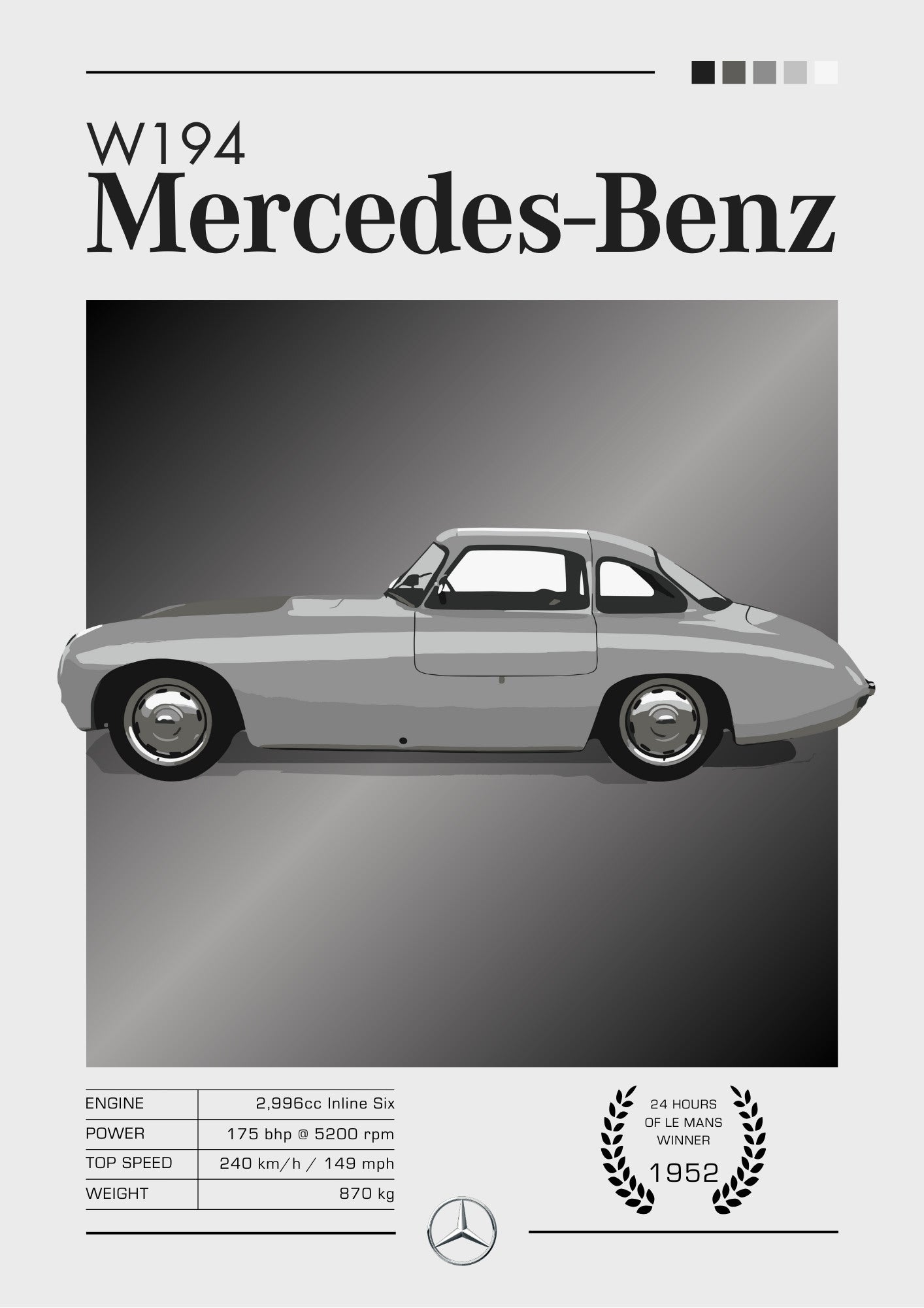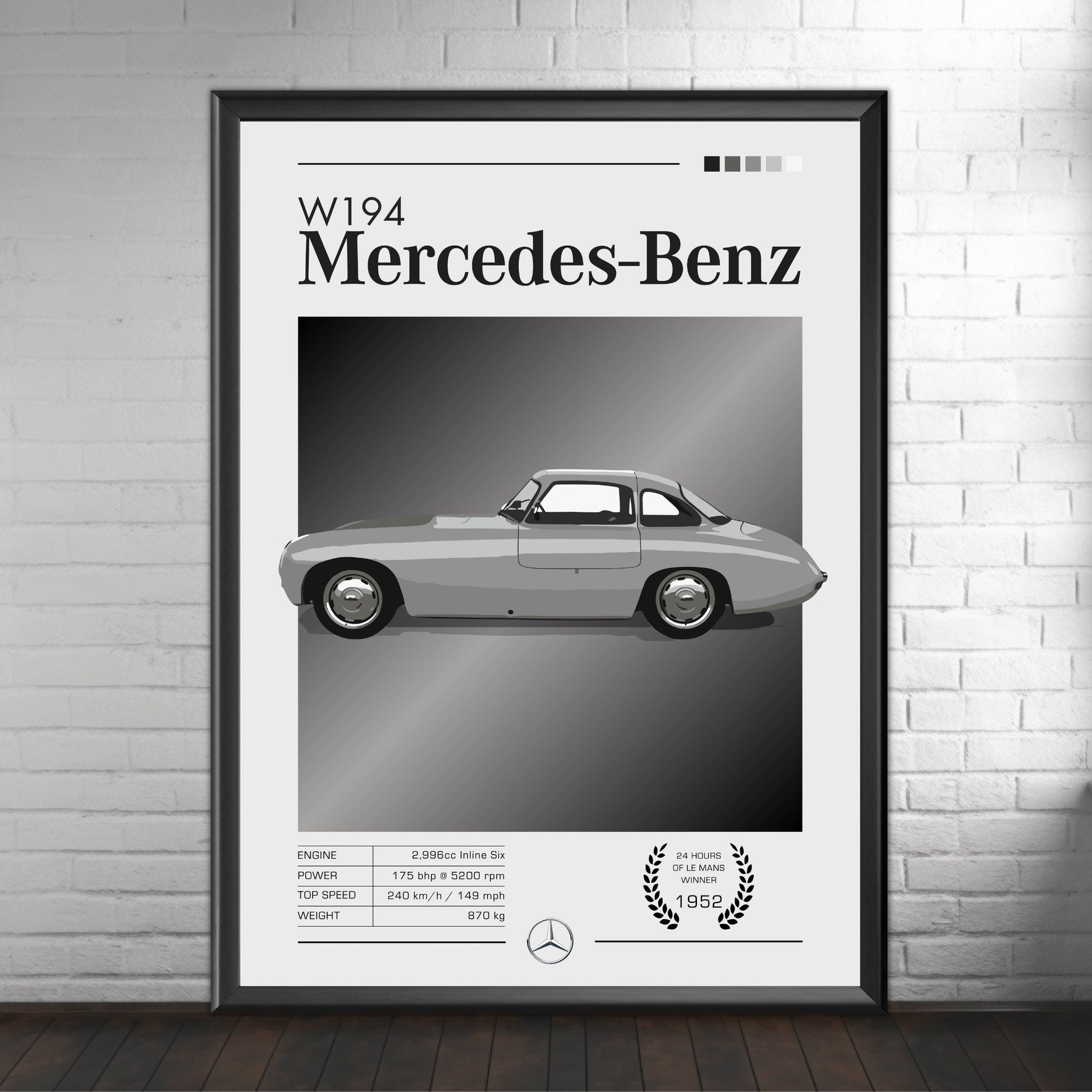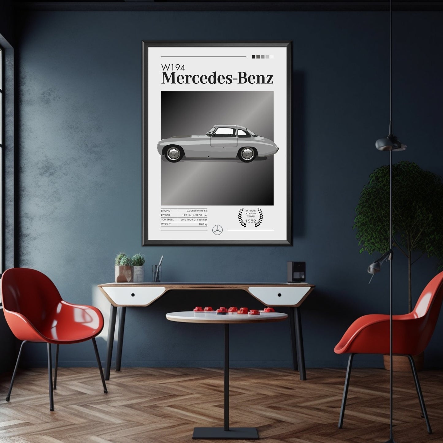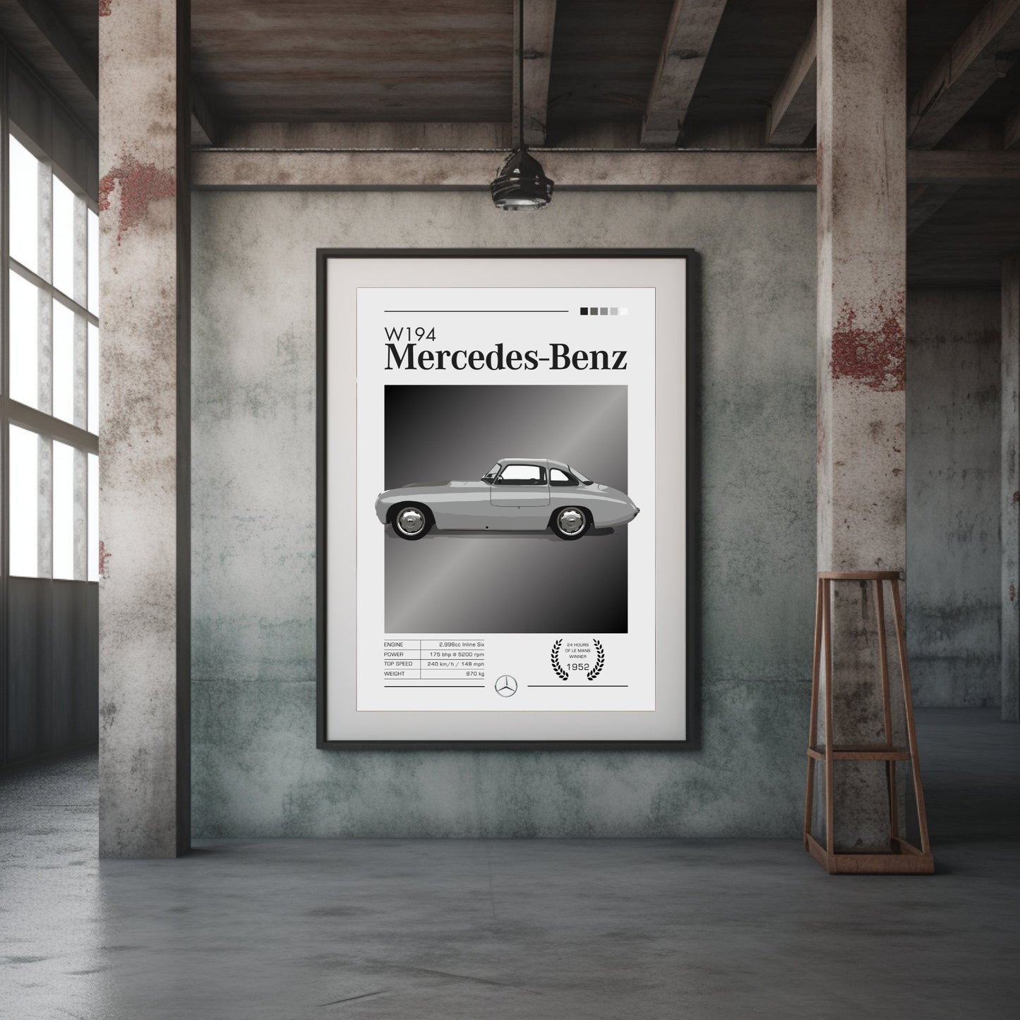 Célébrez l'une des voitures de course les plus emblématiques de Mercedes-Benz avec l' affiche Mercedes-Benz W194 – Décoration murale des 24 Heures du Mans des années 1950. Connue pour sa technologie révolutionnaire et ses victoires historiques au Mans, la W194 incarne l'esprit des courses d'endurance classiques, l'excellence automobile allemande et l'héritage du sport automobile . Cette affiche est idéale pour les amateurs de courses vintage, les passionnés de Mercedes et les collectionneurs d'art automobile classique .