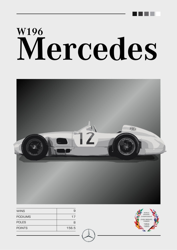 Affiche Mercedes-Benz W196 F1 – La voiture légendaire de Fangio des années 1950