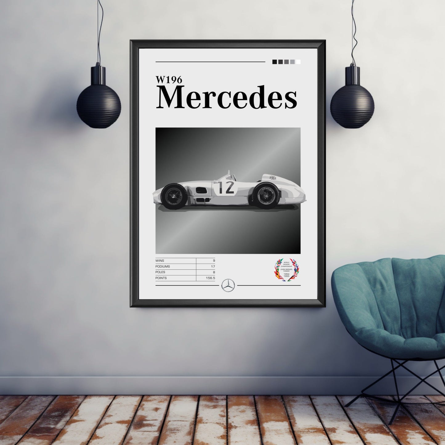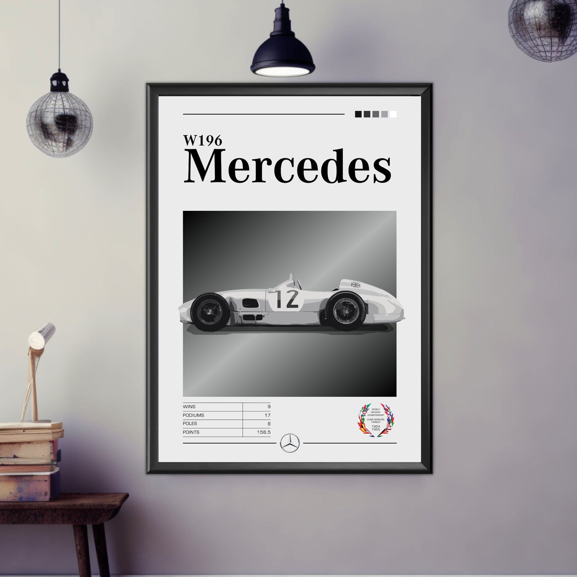 Un cadeau parfait pour les passionnés de course, les affiches classiques de F1 capturent le frisson, l'héritage et le prestige de la Formule 1. Améliorez votre décoration murale avec l' affiche Mercedes-Benz W196 F1 - La voiture légendaire des années 1950 de Fangio et revivez la gloire de l'une des périodes les plus emblématiques du sport automobile.